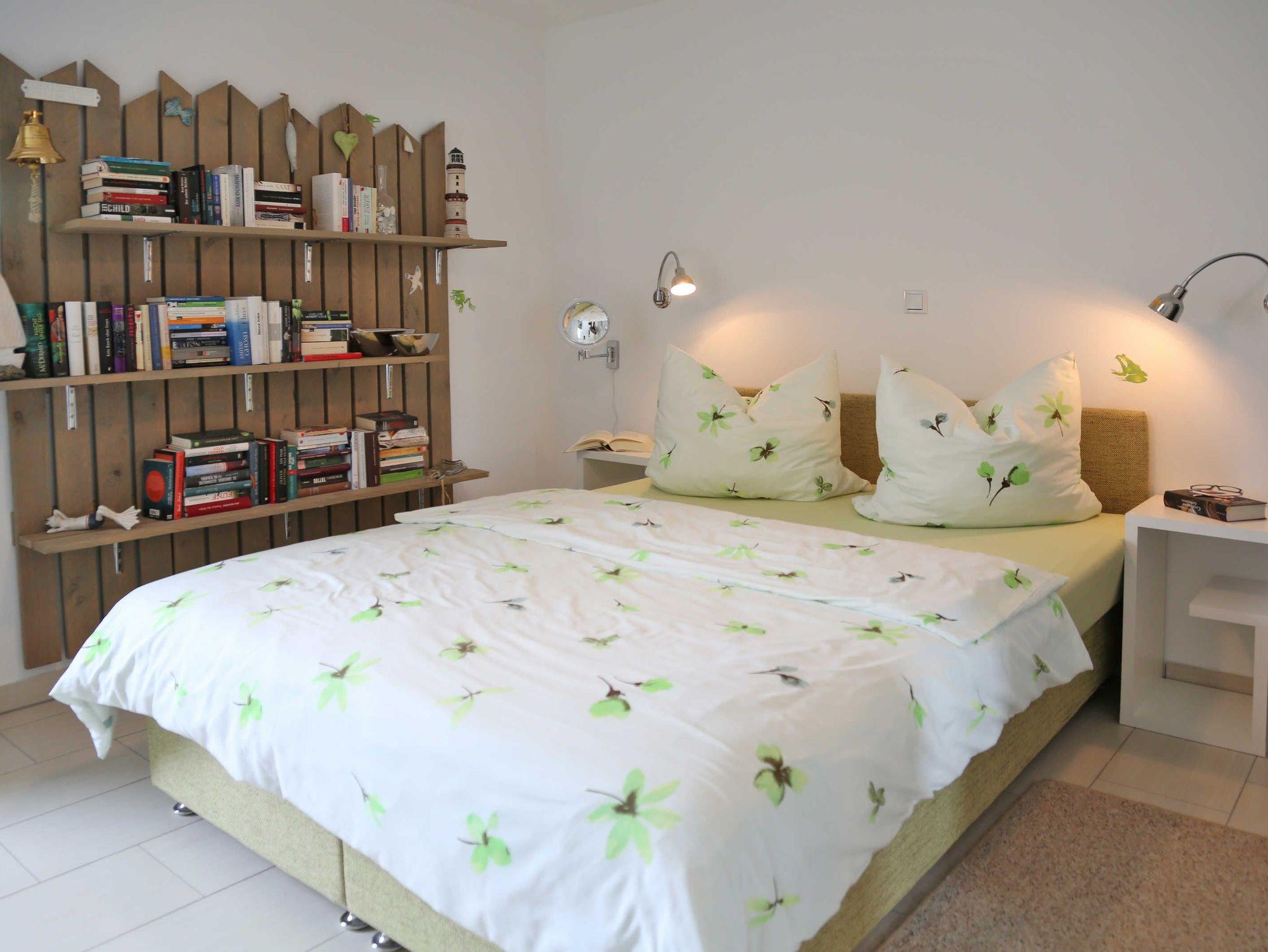Das großzügige Schlafzimmer verfügt über ein komfortables Doppelbett (160 x 220 cm), eine auserlesene Bücherwand zum Schmökern sowie einen TV inklusive Radio. Das zweite Schlafzimmer ist mit einem Einzelbett (80 x 200 cm) sowie einer zusätzlichen Schlafmatratze (Notaufbettung) ausgestattet. In beiden Schlafzimmern stehen Ihnen jeweils ein Kleiderschrank und eine Kommode zur Verfügung.