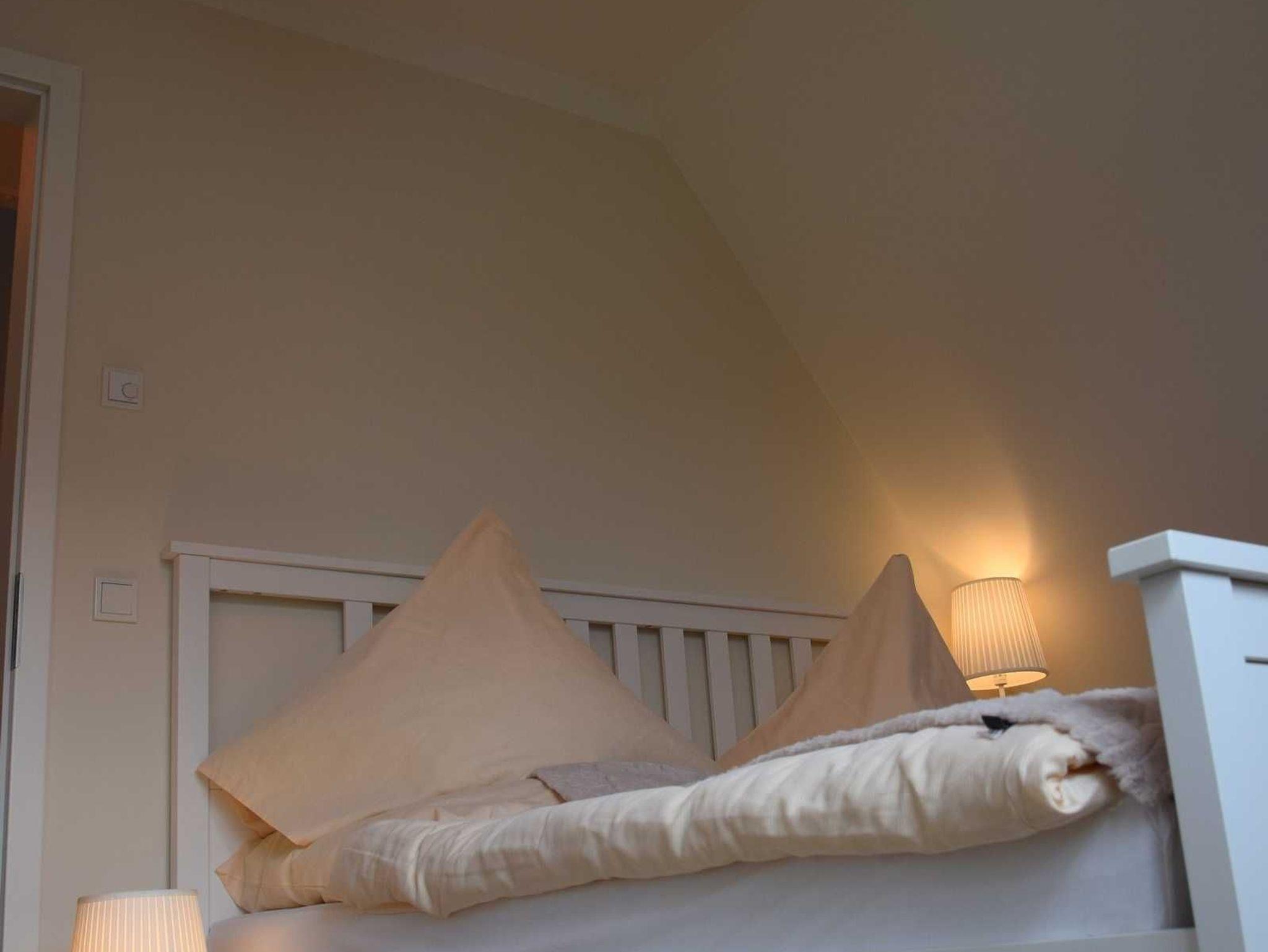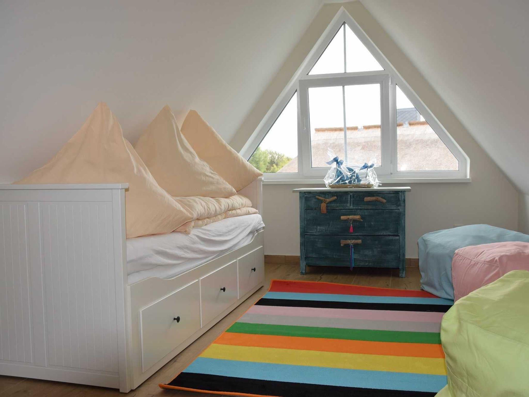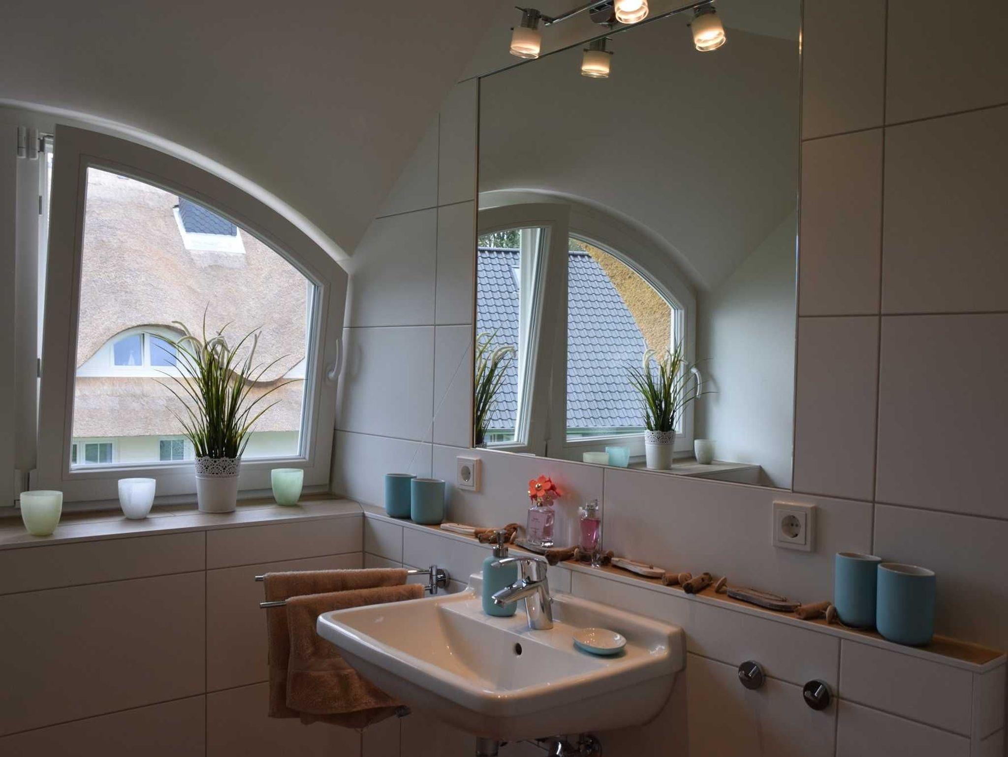 Über das Treppenhaus im Landhausstil gelangen Sie ins erste Geschoss. In den zwei Schlafzimmern finden Sie eine Kombination aus modernen Schränken mit ausreichend Stauraum sowie antiken Möbeln im Shabby Chic Design. Ein Sichtschutz ist in beiden Schlafzimmern vorhanden. Die Betten mit einer Größe von 1,80 m x 2,00 m lassen keine Wünsche offen. Das Badezimmer mit der gemütlichen Gaube und ebenerdiger Dusche und Handtuchheizkörper ist ebenso im maritimen Stil, wie das Badezimmer im Erdgeschoss eingerichtet. Hier verlässt garantiert kein Morgenmuffel das Bad. Unsere ?kleinen? großen Seeräuber finden ihr Zuhause im Spitzboden mit Piratenkoje (Einzelbett ausziehbar für einen zweiten Schlafplatz) und Muschelvorhängen. Zwei Kinderreisebetten und ein Hochstuhl steht natürlich bereit. Verdunklungsmöglichkeit vorhanden. Weitere Kinderreisebetten und Hochstühle sind kostenpflichtig zu buchbar.
