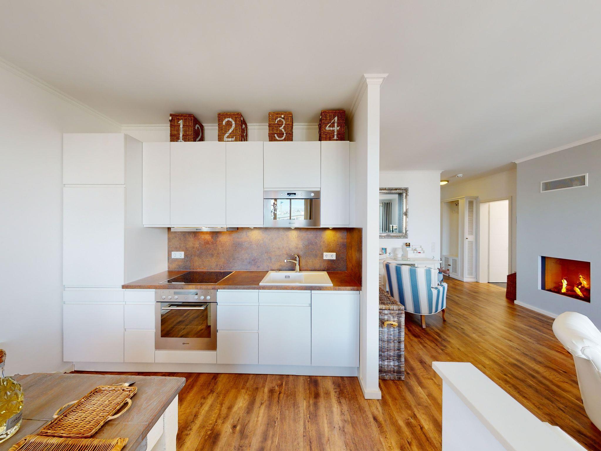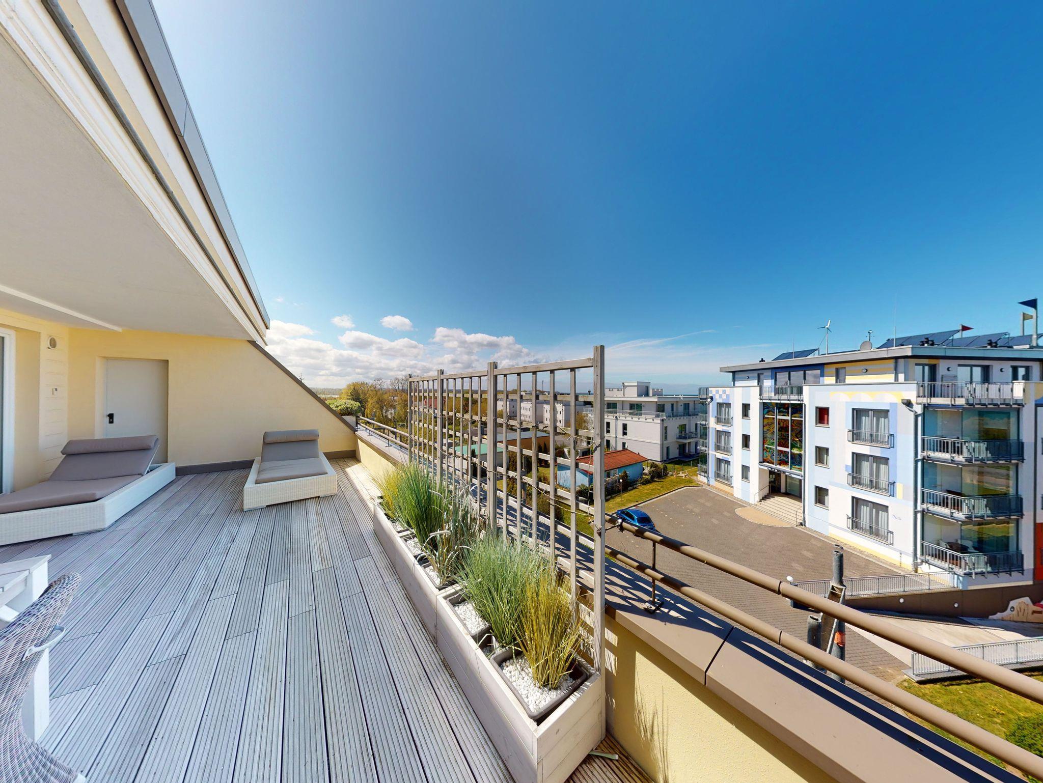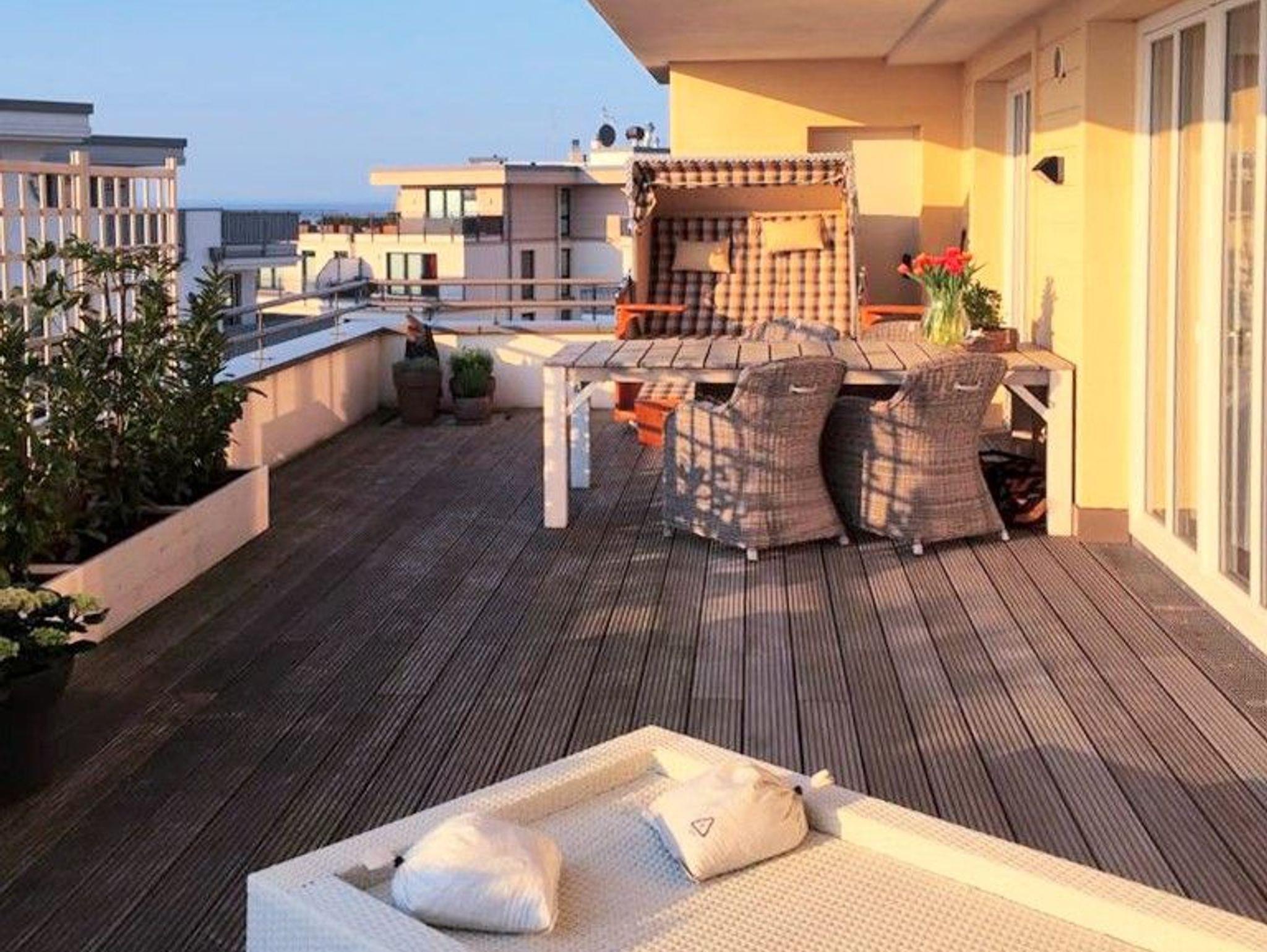 Genießen Sie Ihren Aufenthalt in der exklusiven Wellness-Penthouse-Wohnung nur 50 Meter vom Strand entfernt, mit Meerblick, großer Dachterrasse, Gaskaminofen und eigener Sauna.