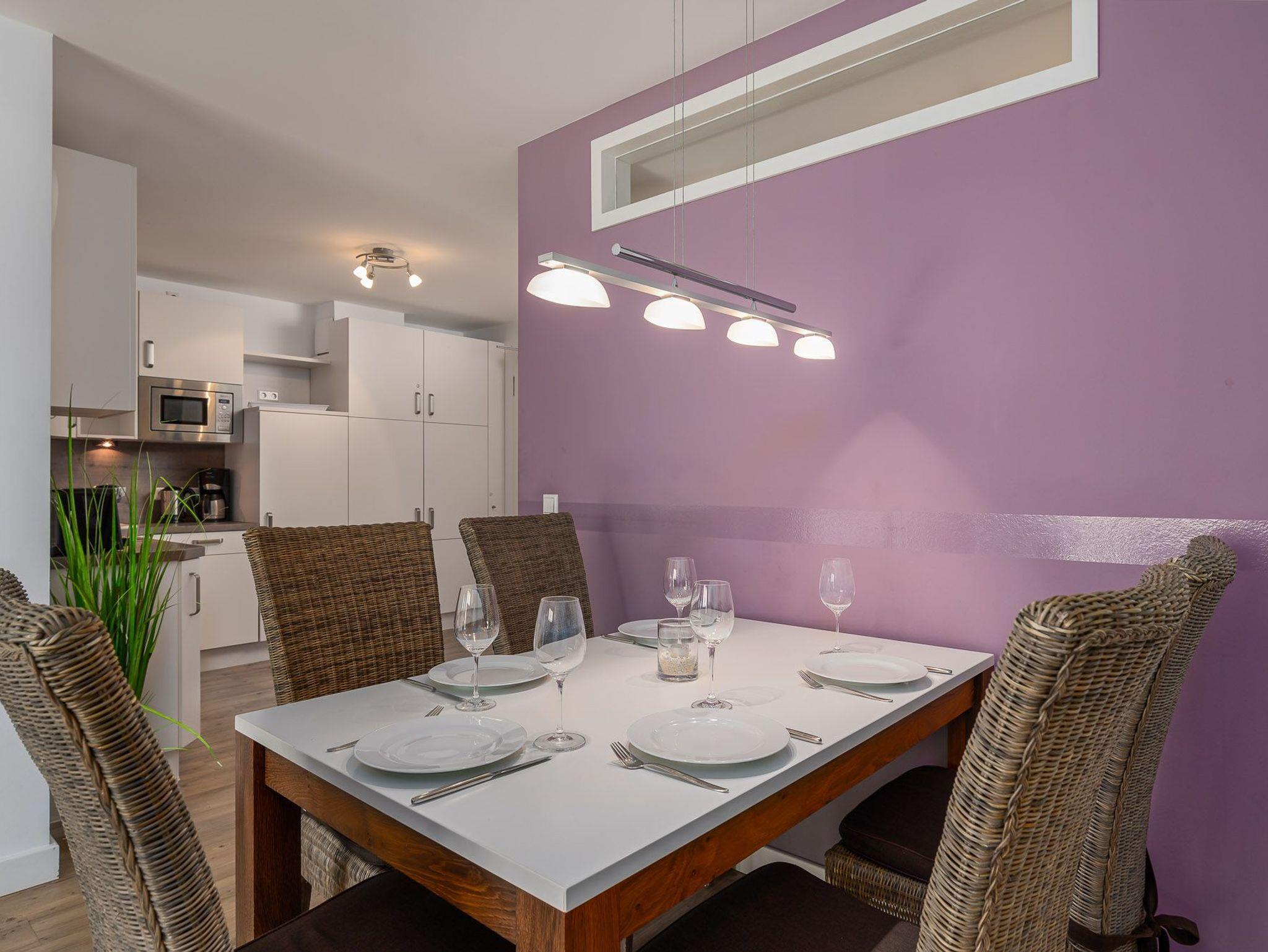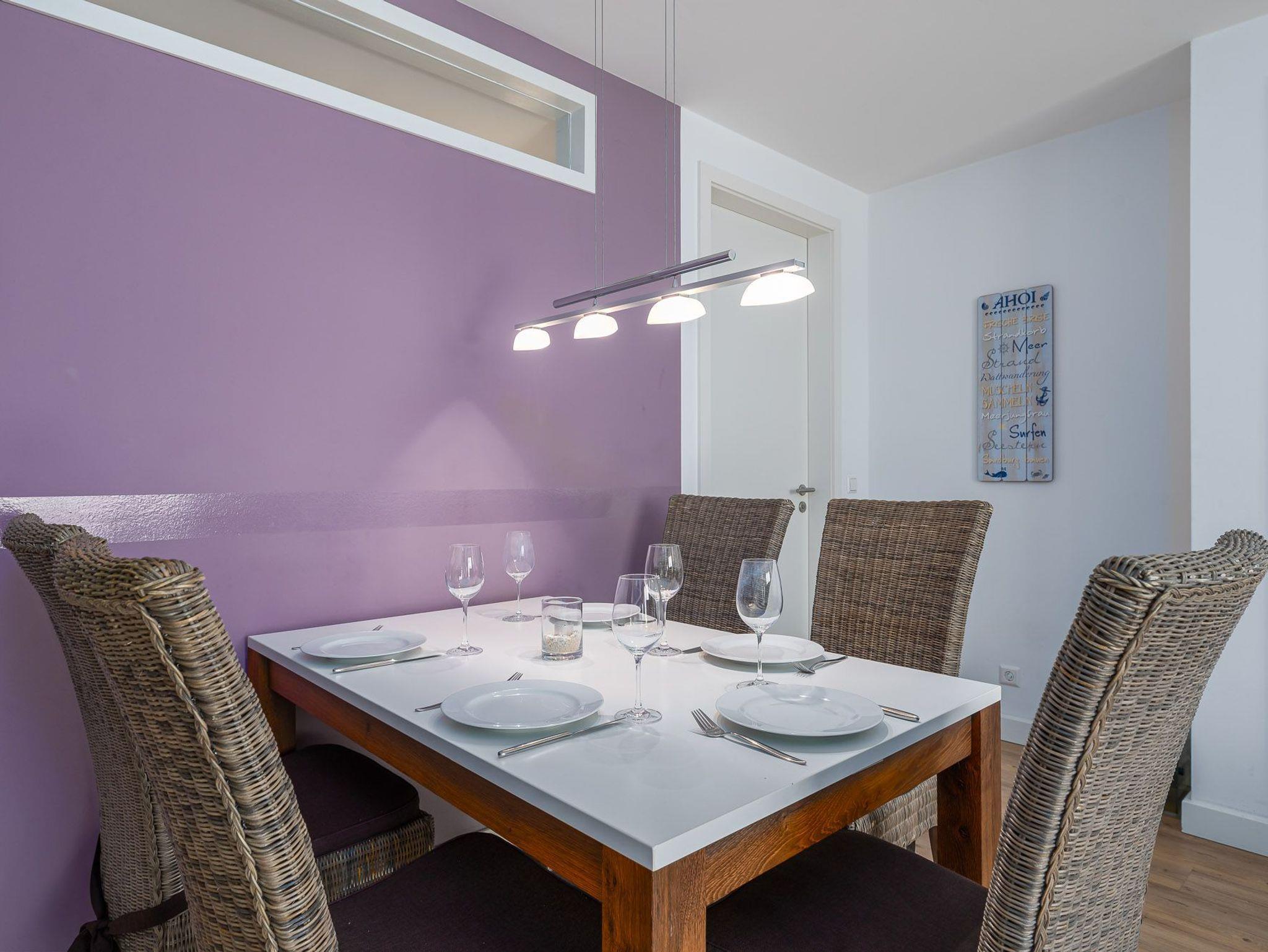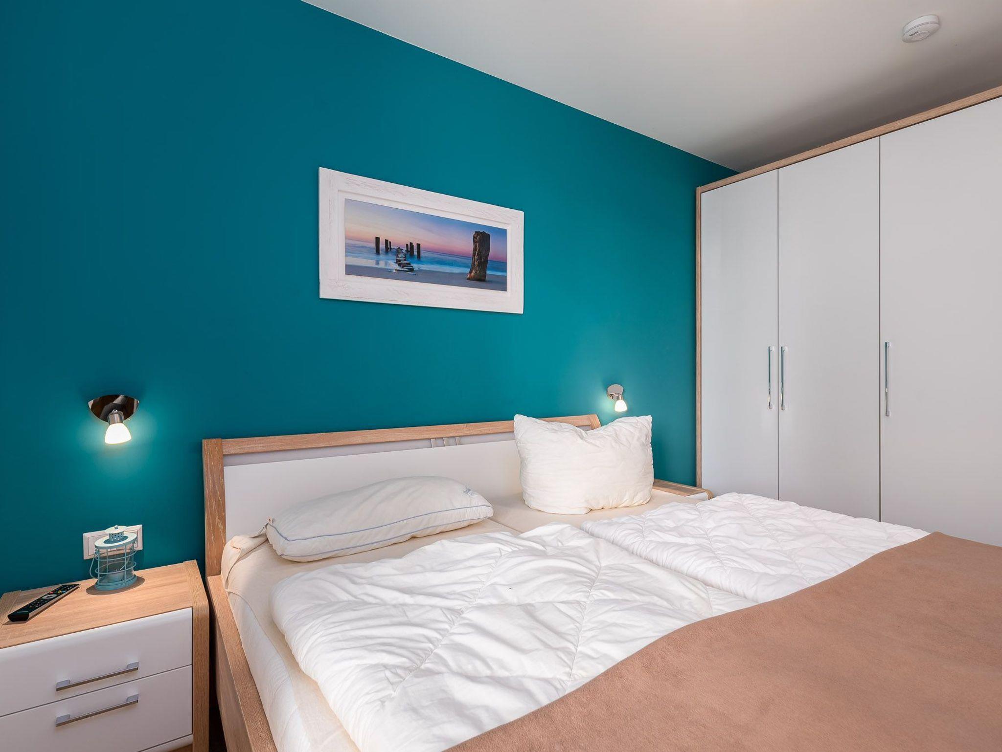 Diese moderne Ferienwohnung ist für max. fünf Erwachsene (ab dritter Person Aufpreis) und ein Kind (bis 14 Jahre) eingerichtet. Es stehen Ihnen zwei Schlafzimmer mit großen, bequemen Doppelbetten zur Verfügung. Beide Boxspringbetten sind mit angenehm weichen Matratzen belegt worden. In beiden Schlafräumen haben Sie jeweils einen Flatscreen-TV, ein CD-Radio und einen geräumigen Kleiderschrank. Auch ein tragbares Ausziehbett (Liege) ist bei Bedarf vorhanden. Im Wohnraum können Sie zusätzlich noch eine L-förmige Schlafcouch nutzen. Zur Unterhaltung gibt es dort einen großen Flatscreen-TV inklusive Blu-ray-Player sowie eine separate Stereoanlage. Die Terrasse können Sie direkt von beiden Schlafzimmern und dem Wohnbereich aus betreten. Sie liegt in Süd-West- Richtung. Natürlich inklusive moderner Gartenmöbel. Im offenen Küchen -und Wohnbereich finden Sie einen ausziehbaren Esstisch mit sechs Rattanstühlen. Die Küche ist, neben der Standardausstattung, mit Mikrowelle, Backofen, Cerankochfeld, Geschirrspüler und Kühlschrank mit eingebautem Gefrierfach ausgestattet. Der Sanitärbereich verfügt über zwei Bäder. Beide ausgestattet mit bodengleichen Duschen, Waschtischen und Spiegel. In einem der Bäder finden Sie eine Sauna. Diese wird über einen Münzautomaten betrieben. An der Wohnung befindet sich ein kostenfreier Pkw-Stellplatz, direkt neben der Terrasse. Für geliehene oder mitgebrachte Fahrräder wurde ein abschließbarer Fahrradraum in der Tiefgarage eingerichtet. Und noch einige Hinweise: Es steht ein Kinderhochstuhl kostenlos bereit. Wäschesets und ein Kinderreisebett können kostenpflichtig dazugebucht werden. Waschmaschine und Trockner sind im Erdgeschoss, Waschraum, des Objekts vorhanden. (Münzautomaten mit 50 Cent Münzen Einwurf). Die Wohnung ist eine Nichtraucherwohnung. Und es sind hier keine Haustiere gestattet. Die kostenfreie WLAN-Verbindung in dieser Unterkunft ist ausschließlich für die Verwendung von Social- Mediakanälen sowie den Austausch von Bildern mit Familie und Freunden gedacht. Eine Nutzung zum Streamen, z.B. von Filmen, ist nicht vorgesehen. Ab der dritten Person und drittem Lebensjahr, wird ein Aufpreis in Höhe von 10,00 €/ ÜN pro Person berechnet. Sichern Sie sich den Anspruch auf einen der begehrten Strandkörbe (Anfang Mai - Ende August) und buchen Sie jetzt zu besonderen Konditionen (12,00 € pro Tag oder 75,00 € pro Woche).