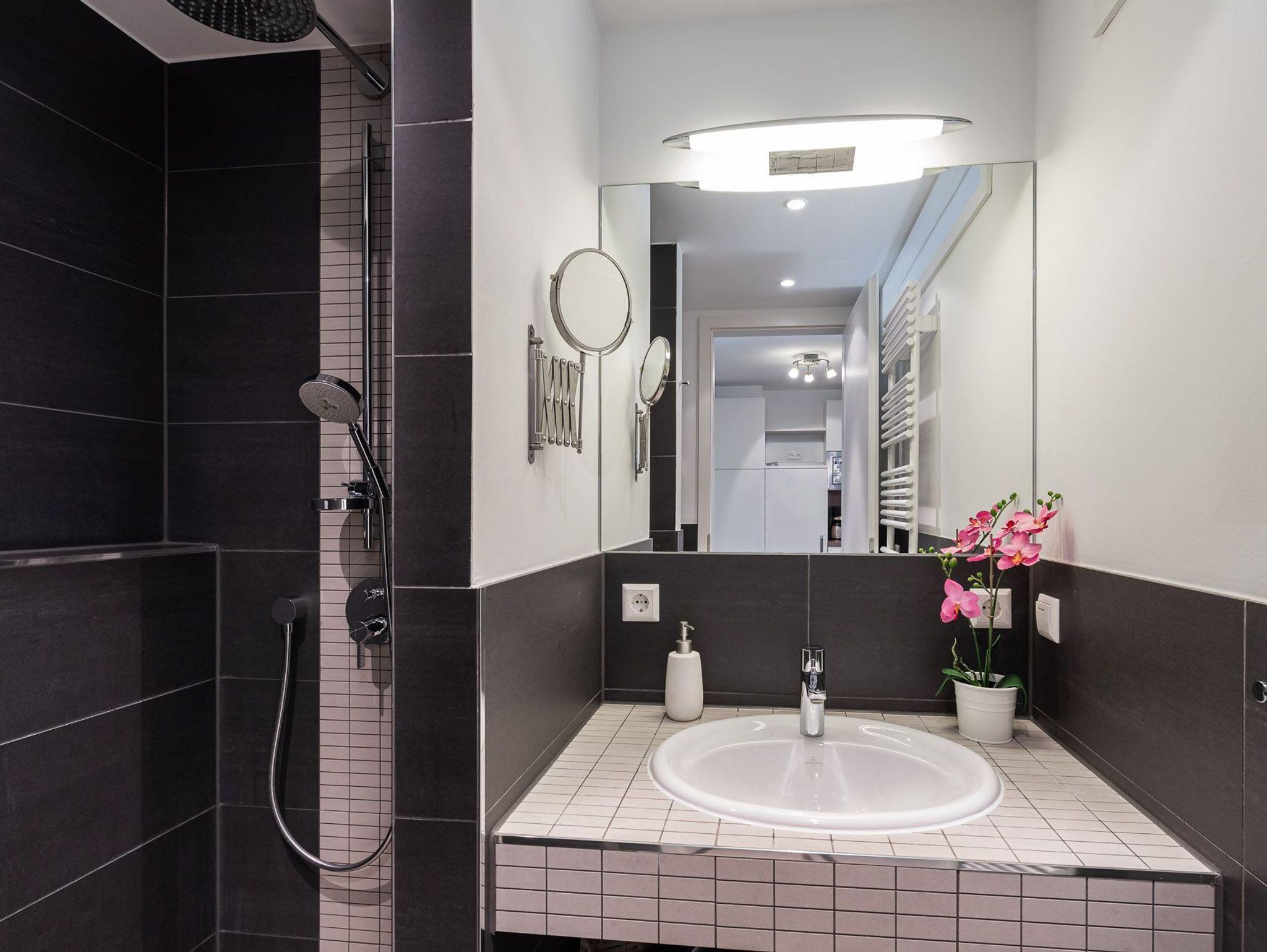 Diese moderne Ferienwohnung ist für max. fünf Erwachsene (ab dritter Person Aufpreis) und ein Kind (bis 14 Jahre) eingerichtet. Es stehen Ihnen zwei Schlafzimmer mit großen, bequemen Doppelbetten zur Verfügung. Beide Boxspringbetten sind mit angenehm weichen Matratzen belegt worden. In beiden Schlafräumen haben Sie jeweils einen Flatscreen-TV, ein CD-Radio und einen geräumigen Kleiderschrank. Auch ein tragbares Ausziehbett (Liege) ist bei Bedarf vorhanden. Im Wohnraum können Sie zusätzlich noch eine L-förmige Schlafcouch nutzen. Zur Unterhaltung gibt es dort einen großen Flatscreen-TV inklusive Blu-ray-Player sowie eine separate Stereoanlage. Die Terrasse können Sie direkt von beiden Schlafzimmern und dem Wohnbereich aus betreten. Sie liegt in Süd-West- Richtung. Natürlich inklusive moderner Gartenmöbel. Im offenen Küchen -und Wohnbereich finden Sie einen ausziehbaren Esstisch mit sechs Rattanstühlen. Die Küche ist, neben der Standardausstattung, mit Mikrowelle, Backofen, Cerankochfeld, Geschirrspüler und Kühlschrank mit eingebautem Gefrierfach ausgestattet. Der Sanitärbereich verfügt über zwei Bäder. Beide ausgestattet mit bodengleichen Duschen, Waschtischen und Spiegel. In einem der Bäder finden Sie eine Sauna. Diese wird über einen Münzautomaten betrieben. An der Wohnung befindet sich ein kostenfreier Pkw-Stellplatz, direkt neben der Terrasse. Für geliehene oder mitgebrachte Fahrräder wurde ein abschließbarer Fahrradraum in der Tiefgarage eingerichtet. Und noch einige Hinweise: Es steht ein Kinderhochstuhl kostenlos bereit. Wäschesets und ein Kinderreisebett können kostenpflichtig dazugebucht werden. Waschmaschine und Trockner sind im Erdgeschoss, Waschraum, des Objekts vorhanden. (Münzautomaten mit 50 Cent Münzen Einwurf). Die Wohnung ist eine Nichtraucherwohnung. Und es sind hier keine Haustiere gestattet. Die kostenfreie WLAN-Verbindung in dieser Unterkunft ist ausschließlich für die Verwendung von Social- Mediakanälen sowie den Austausch von Bildern mit Familie und Freunden gedacht. Eine Nutzung zum Streamen, z.B. von Filmen, ist nicht vorgesehen. Ab der dritten Person und drittem Lebensjahr, wird ein Aufpreis in Höhe von 10,00 Euro/ ÜN pro Person berechnet. Sichern Sie sich den Anspruch auf einen der begehrten Strandkörbe (Anfang Mai - Ende August) und buchen Sie jetzt zu besonderen Konditionen (12,00 Euro pro Tag oder 75,00 Euro pro Woche).