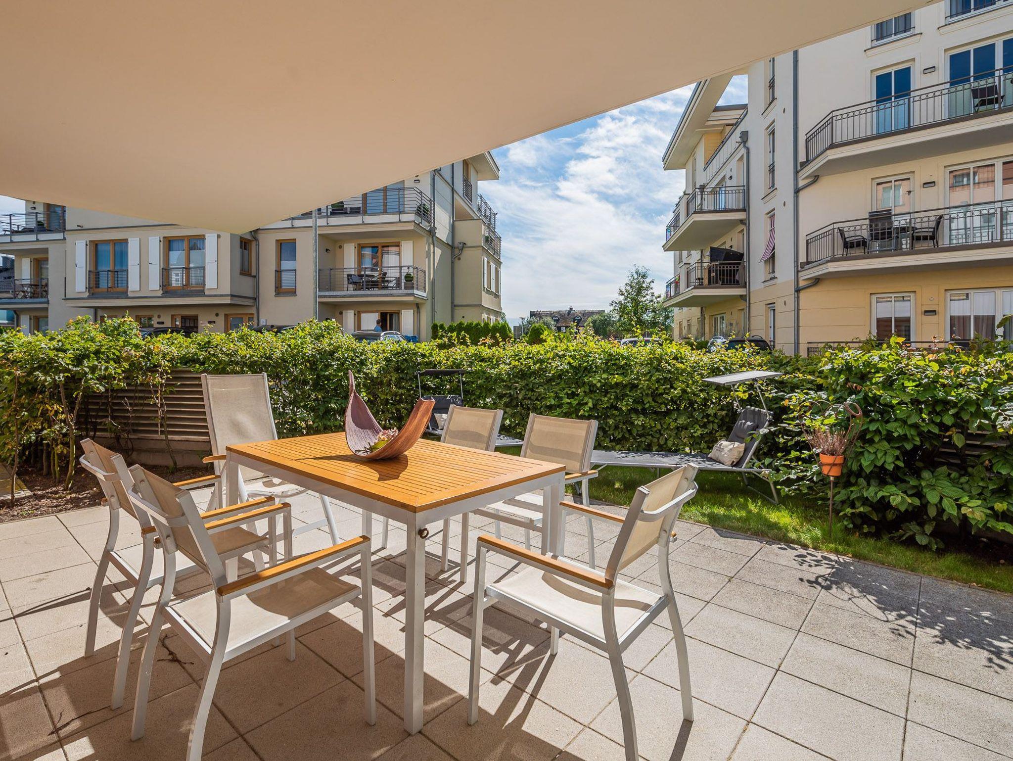 Strandnahe 3-Raumwohnung für max. 5 Personen (4 Erwachsene, ein Kind bis 14 Jahre) mit eigener Sauna und Terrasse im EG.