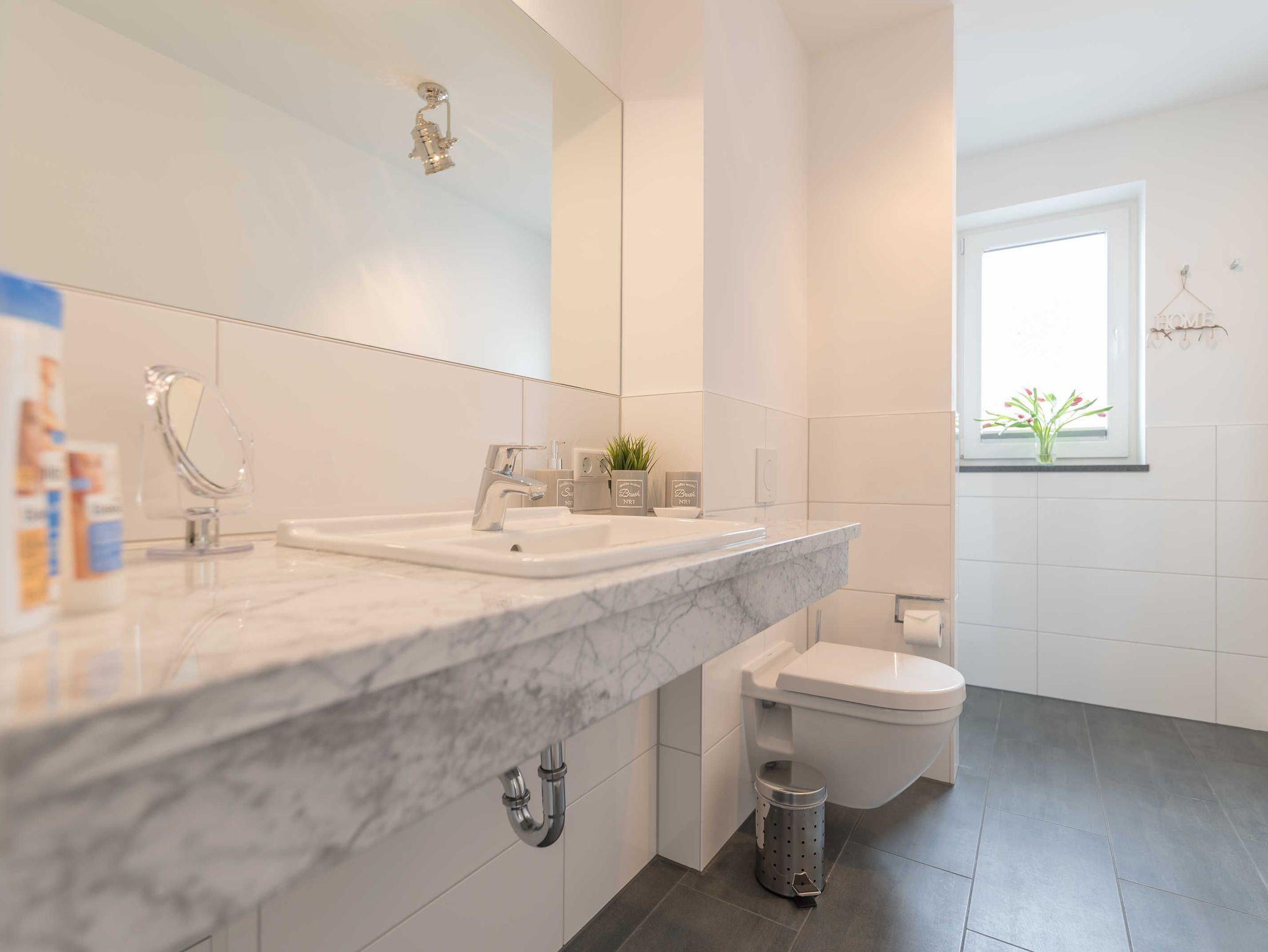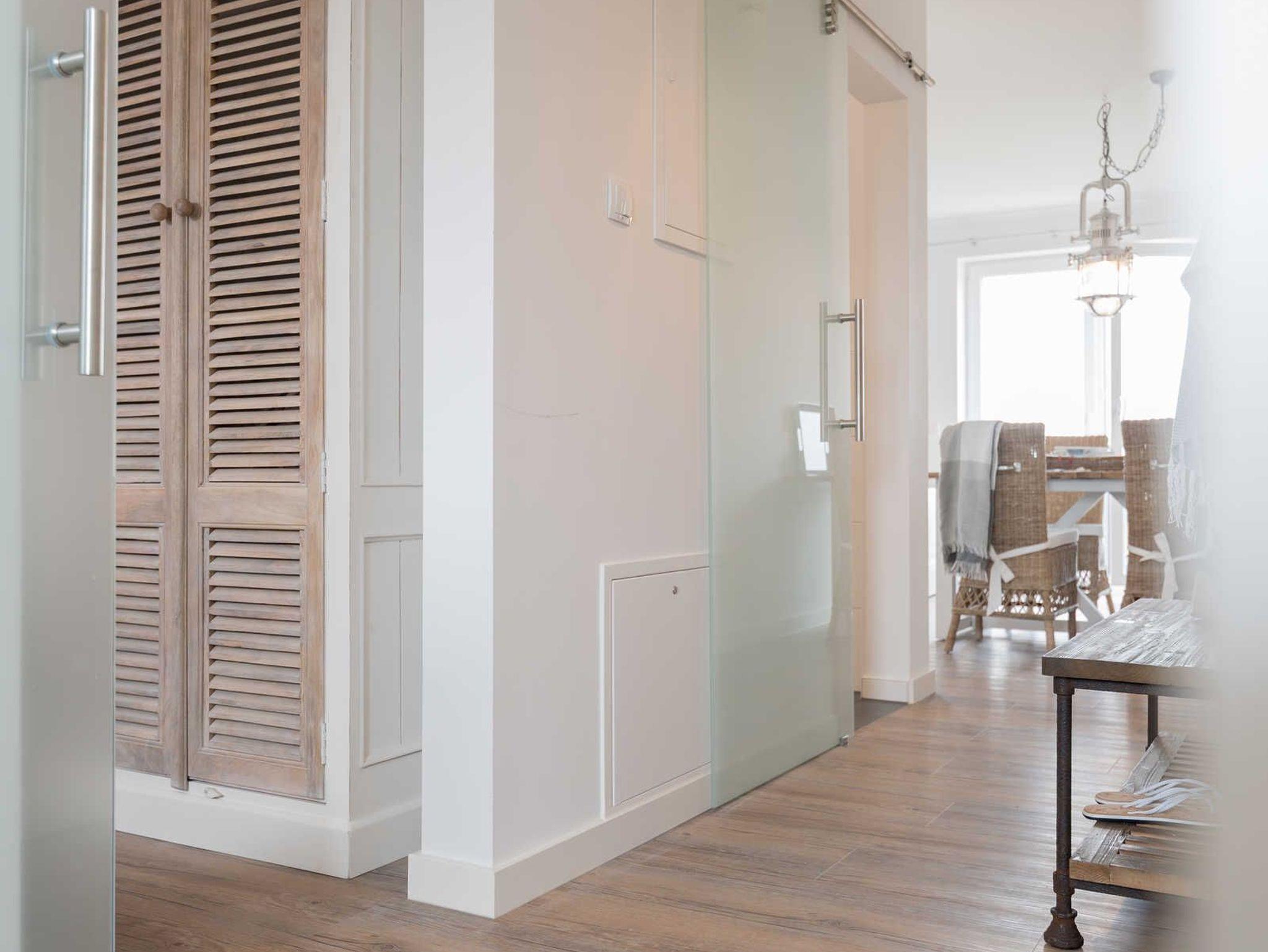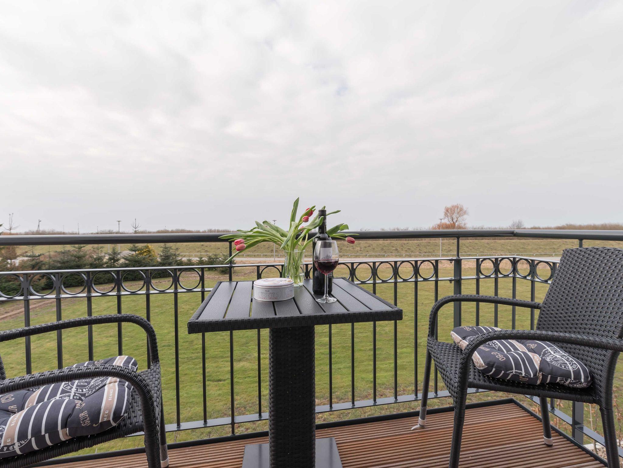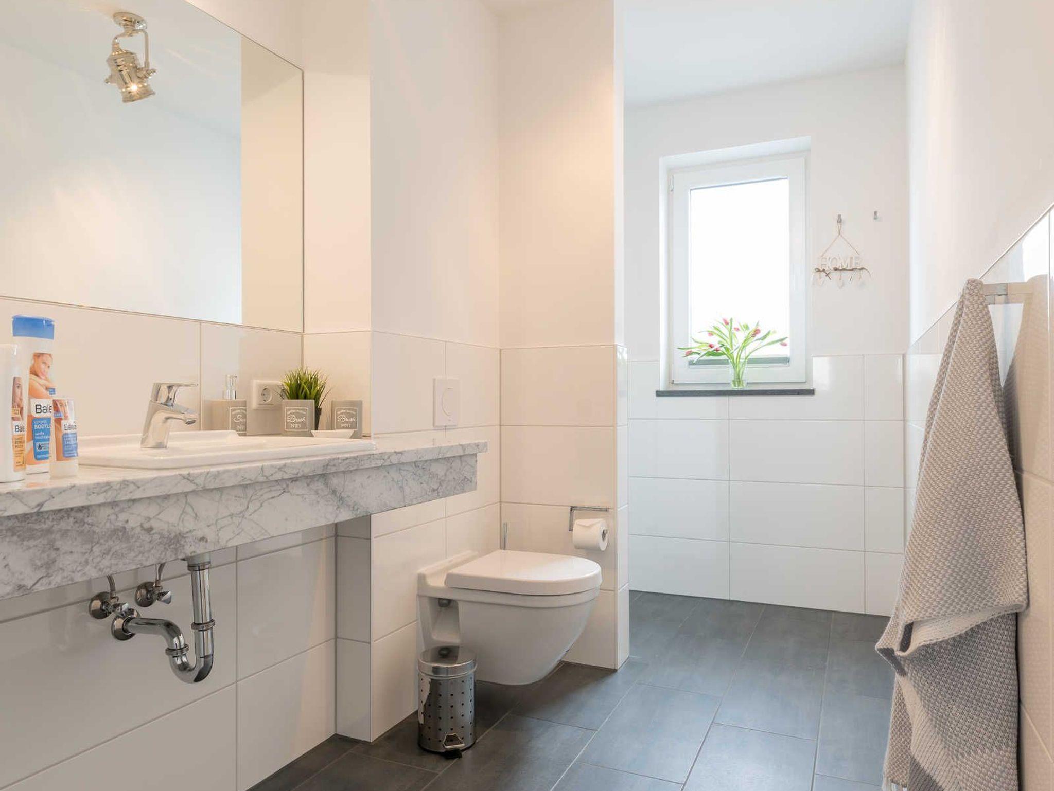 Im hell eingerichteten Wohnzimmer laden eine gemütliche Couch sowie ein großer Esstisch zum Verweilen ein. Die bodentiefen Fensterelemente sorgen für lichtdurchfluteten Wohngenuss und bieten Zugang zum Balkon. Die Fußbodenheizung und die einstellbare Lüftung sorgen in allen Jahreszeiten für ein angenehmes Raumklima und Gemütlichkeit. Flatscreen-TV´s mit Radio Programm im Wohn- und Schlafzimmer gehören zur modernen Ausstattung dieser Ferienwohnung. Die Einbauküche verfügt über einen Geschirrspüler, einen Kühlschrank mit Gefrierfach, einen Backofen mit integrierter Mikrowelle, ein Cerankochfeld, einen Toaster, eine Kaffeemaschine, einen Wasserkocher und vom Kochtopf bis zum Eierbecher über eine komplette Küchenausstattung. Das Badezimmer mit Fenster und ebenerdiger Dusche verfügt über einen Waschtisch mit großem Spiegel, Abstellmöglichkeiten für Ihre Waschutensilien und einen Haartrockner. In dem in der Wohnung befindlichen Abstellraum finden Sie ein Wäschegestell, einen Staubsauger und haben Platz zur Lagerung.
