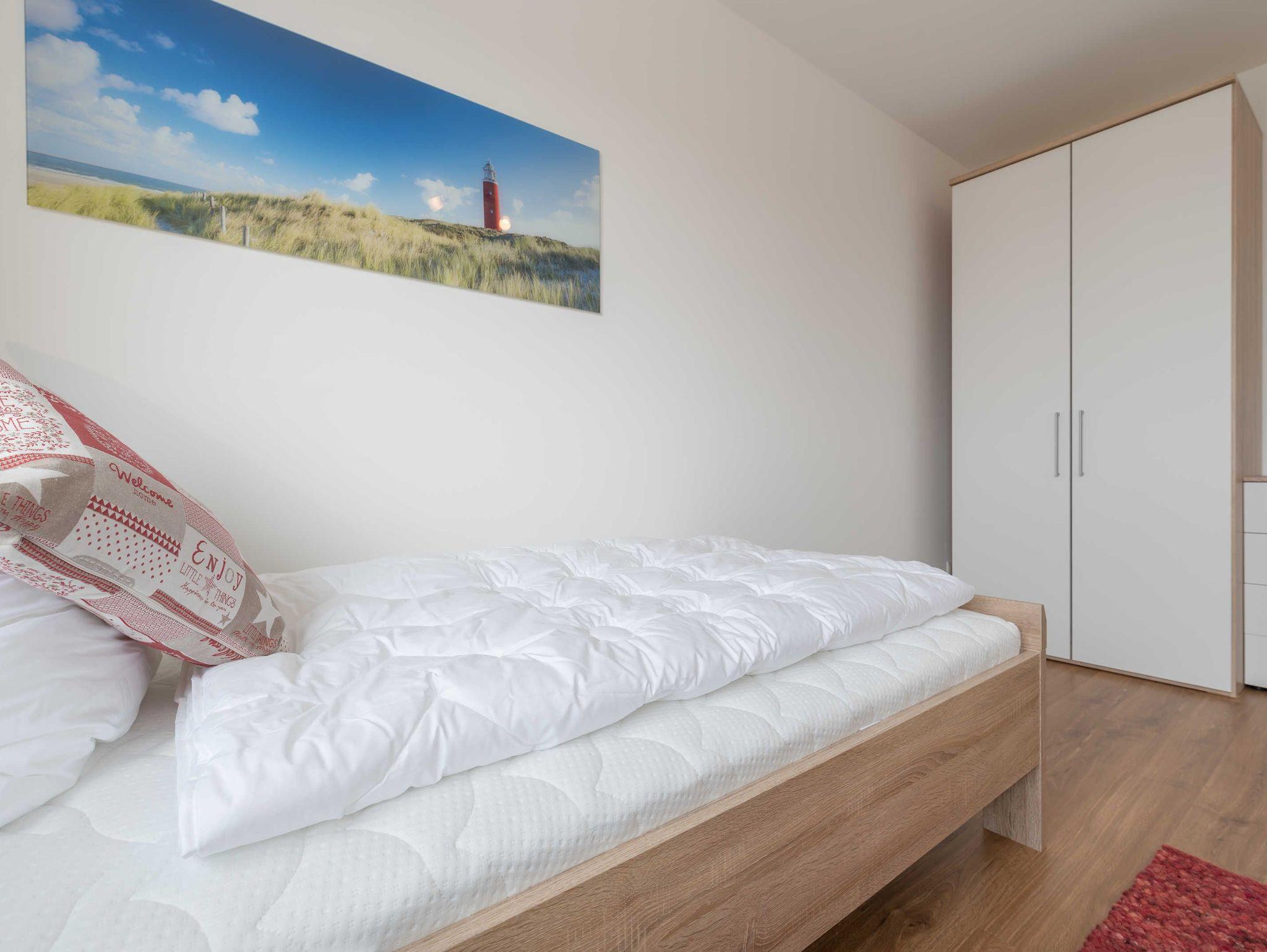 Das erste Schlafzimmer ist mit einem komfortablen Doppelbett (180 x 200 cm), einem geräumigen Kleiderschrank und einem weiteren Flatscreen-TV ausgestattet. Im zweiten Schlafzimmer befinden sich zwei gemütliche Einzelbetten (100 x 200 cm) mit je einem Nachttisch und ein großer Kleiderschrank.