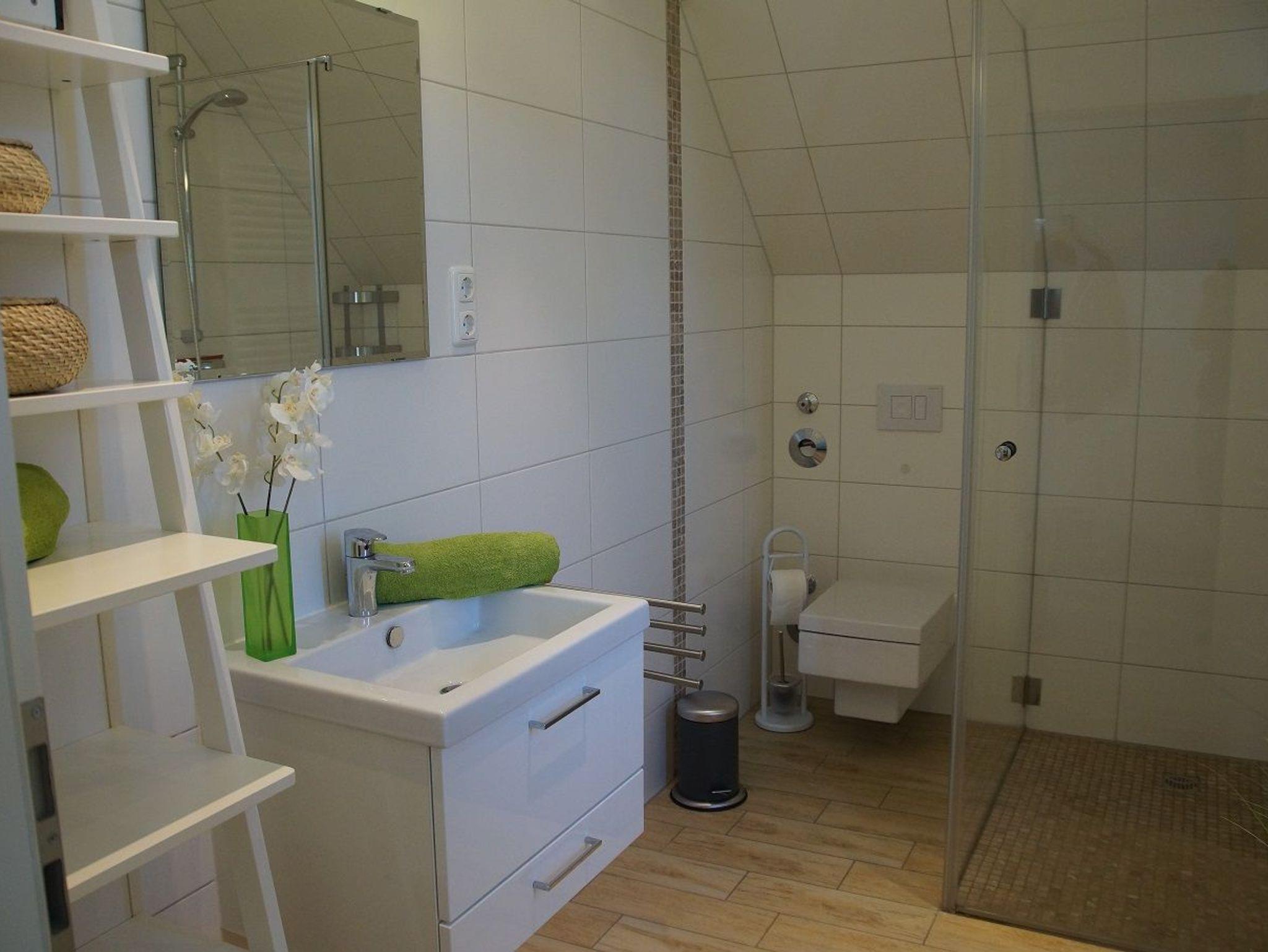Der Wohn-/Essbereich empfängt bis zu vier Gäste mit einer offenen Wohnküche, einem freundlichen Essbereich, einer TV-Lounge mit Plasma TV (106 cm) sowie einem gemütlichen Ecksofa zum Relaxen. Die hochwertige Küche ist umfangreich ausgestattet. Ein Herd mit Cerankochfeld, ein Backofen, ein Kühlschrank mit Gefrierfach und eine Mikrowelle lassen das Herz eines jeden Hobbykochs höher schlagen. Die kleinen Küchenhelfer wie Toaster, Wasserkocher und Kaffeemaschine schaffen einen sorgenfreien Start in den Tag. Das moderne Tageslicht-Bad mit Dusche ist mit einem Handtuchheizkörper und einem Fön ausgestattet. Das Schlafzimmer mit Doppelbett verfügt über einen geräumigen Kleiderschrank sowie einen Fernseher. Außerdem wurden im Schlafbereich Vorhänge zum Abdunkeln angebracht. Von der lichtdurchfluteten, offenen Dachgalerie (ebenfalls mit Doppelbett) haben Sie einen traumhaften Blick auf die Ostsee. Die Fußbodenheizung in der gesamten Wohnung und ein Kaminofen machen Ihren Urlaub auch im Winter traumhaft gemütlich (Kaminholz muss selbst organisiert werden). Egal ob Morgensonne oder Sonnenuntergang - auf den beiden Balkonen in Süd- und Nordausrichtung können Sie diese genießen und dabei das Rauschen der Ostseewellen auf sich wirken lassen.