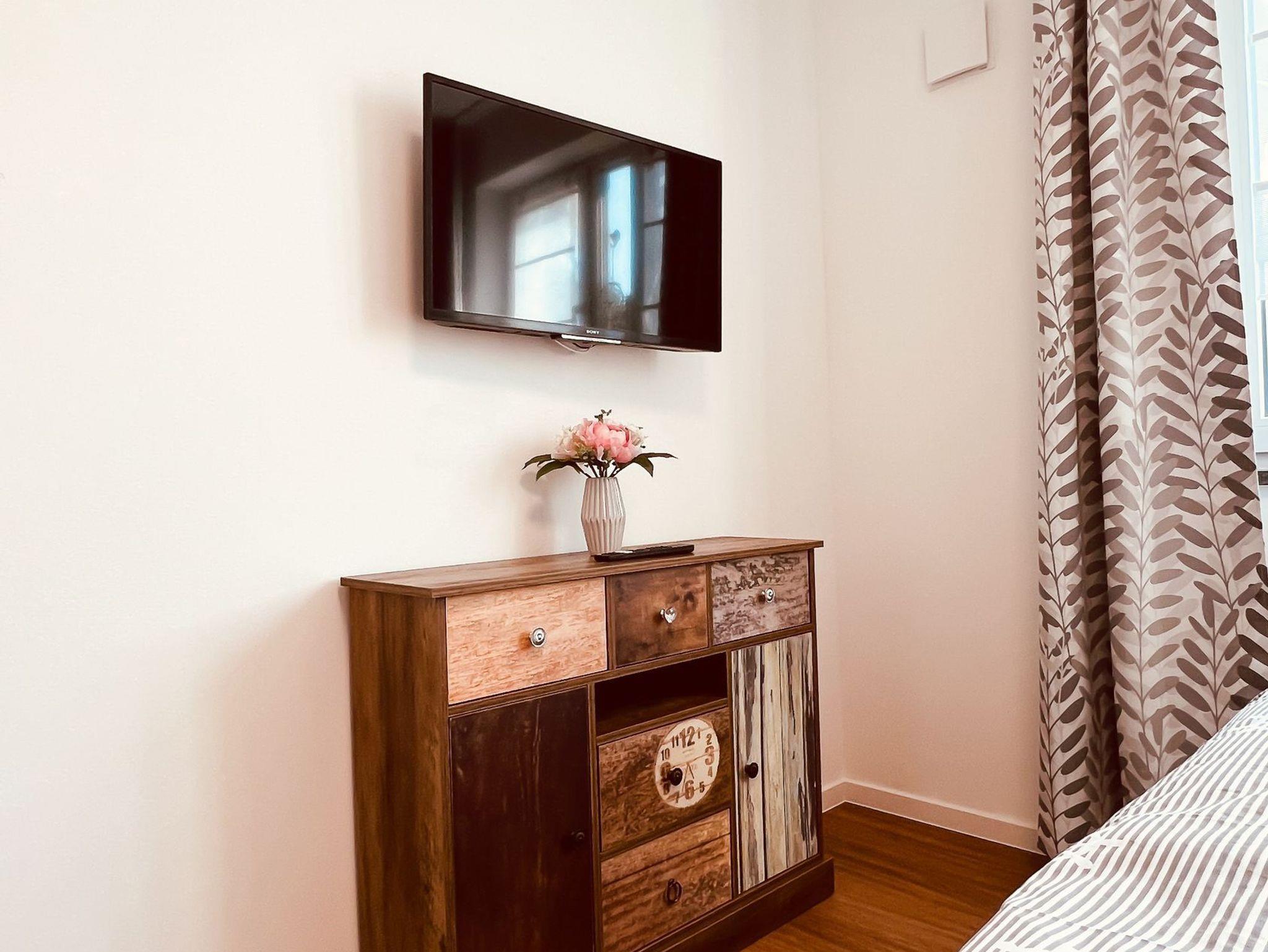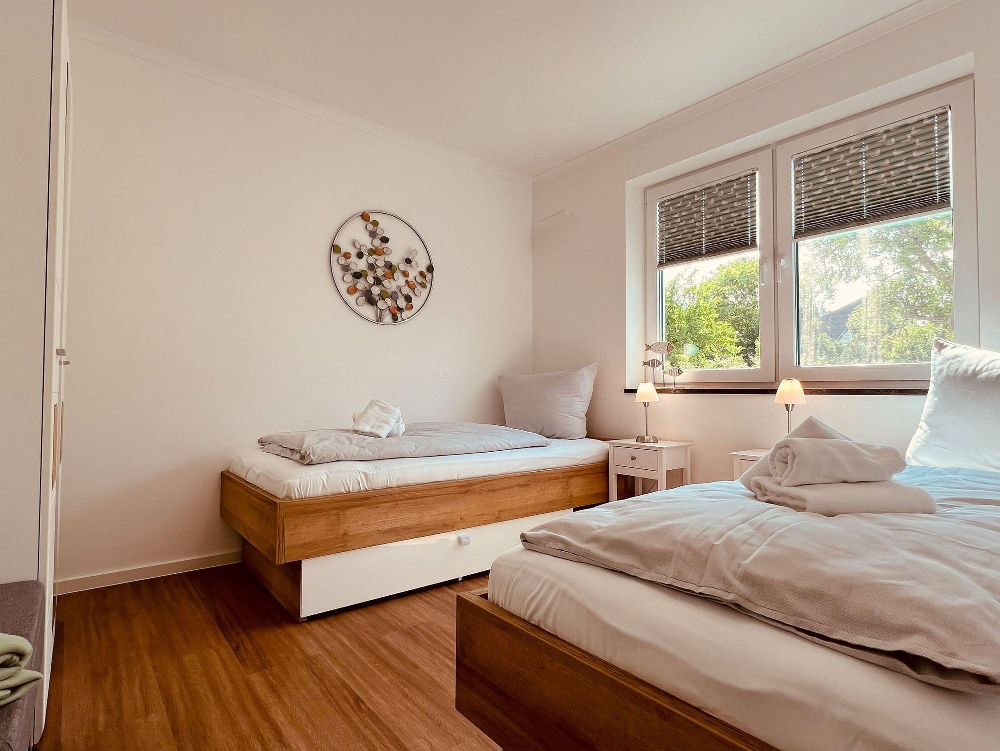 Das erste Schlafzimmer ist mit einem großzügigen Boxspringbett (180 x 200 cm) und einem TV ausgestattet. Das zweite Schlafzimmer verfügt über zwei Einzelbetten (je 90 x 200 cm). In beiden Räumen ist ausreichend Stauraum vorhanden.