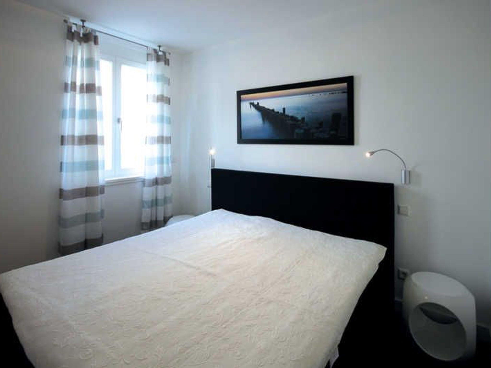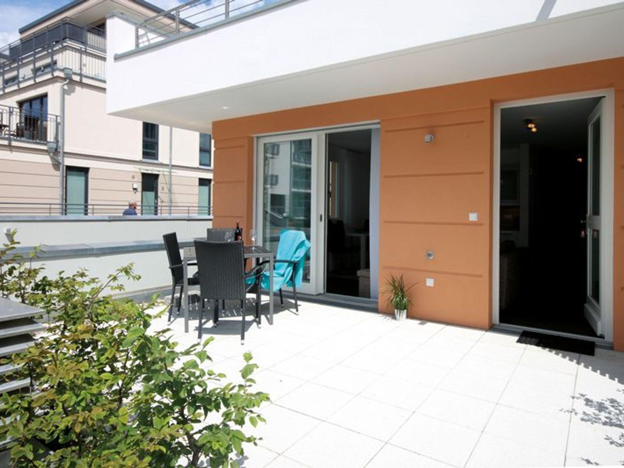 Die modern eingerichtete Zwei-Raumwohnung ist für max. zwei Erwachsene und ein Kind (bis 12 Jahre) ausgestattet. Der zur Küche hin offene Wohnbereich empfängt Sie mit einer großen Schlafcouch. Von dieser aus können Sie Sie sich News, Filme oder andere Sendungen im TV- Gerät anschauen. Oder Sie nutzen den vorhandenen DVD- Player und die Stereoanlage für weitere Unterhaltung. Zum Essen oder einem großen Spieleabend steht ein Esstisch mit vier Swing-Stühlen zur Verfügung. Die Küche selbst bietet, außer den Standardgeräten, ein Cerankochfeld (4 Platten), einen Backofen, eine Mikrowelle und einen Kühlschrank, inklusive Gefrierfach. So lässt sich auch mal das Lieblingsessen im Urlaub zubereiten. Für den erholsamen Urlaubsschlaf steht im Schlafraum ein Boxspringbett (durchgehende Matratze) zur Verfügung. Auch ein weiteres TV- Gerät ist hier vorhanden. Und für genügend Stauraum und knitterfreie Wäsche, sorgt der geräumige Kleiderschrank. Die Morgentoilette können Sie in der Dusche mit fußbodengleichem Einstieg ausgiebig vornehmen. Für die Pflege nach der Dusche steht im Duschbad ein moderner Waschtisch mit breitem Spiegel zur Verfügung. Zum Tagesabschluss geht es dann in die Sauna. Diese befindet sich gleich neben dem Schlafraum. Da die Sauna mit einem Münzautomaten betrieben wird, halten Sie bitte Münzen bereit. Für die Entspannung nach dem Strandtag sorgt eine Terrasse. Diese ist nach Süd-West ausgerichtet. Ein Terrassentisch mit vier entsprechenden Stühlen bietet genug Platz für eine Flasche Wein und etwas zum Naschen. Auf die Terrasse selbst gelangt man aus dem Wohnraum. Die Wohnung ist eine Nichtraucherwohnung. Haustiere sind nicht gestattet. Die kostenfreie WLAN-Verbindung in dieser Unterkunft ist ausschließlich für die Verwendung von Social Mediakanälen sowie den Austausch von Bildern mit Familie und Freunden gedacht. Eine Nutzung zum Streamen, z.B. von Filmen, ist nicht vorgesehen. Wäscheset, Kinderreisebett und Kinderhochstuhl können kostenpflichtig zugebucht werden. Eine Waschmaschine und Trockner stehen im Waschraum, der sich im Erdgeschoss befindet. Beide Geräte sind kostenpflichtig. Hier benötigen Sie 50 Cent Münzen. Zur Ferienwohnung gehört ein kostenfreier Tiefgaragenstellplatz. Bitte beachten Sie die Durchfahrtshöhe von max. 1,90 m. Überschreitet Ihr Fahrzeug die maximale Durchfahrtshöhe, können Sie auf einen kostenpflichtigen Parkplatz in unmittelbarer Nähe ausweichen. Außerdem befindet sich in der Tiefgarage ein abschließbarer Fahrradabstellraum. Und noch einen Hinweis: Sichern Sie sich zusätzlich den Anspruch auf einen der begehrten Strandkörbe nur ein paar Meter entfernt von den rauschenden Wellen der Ostsee (Anfang Mai - Ende August) und buchen Sie jetzt zu besonderen Konditionen (12,00 € pro Tag oder 75,00 € pro Woche.)