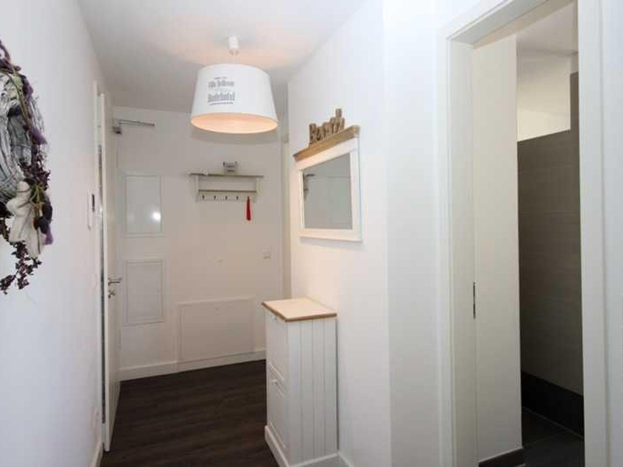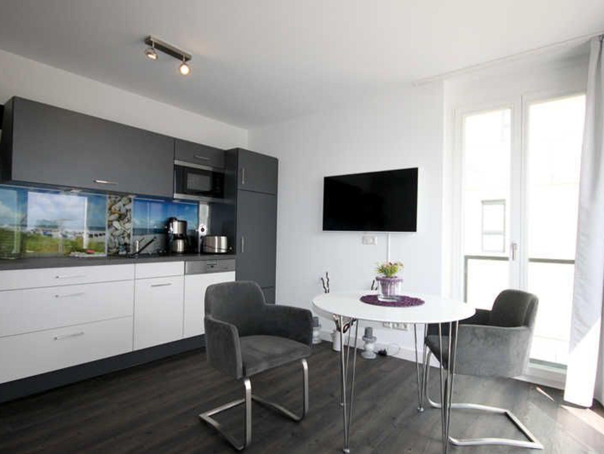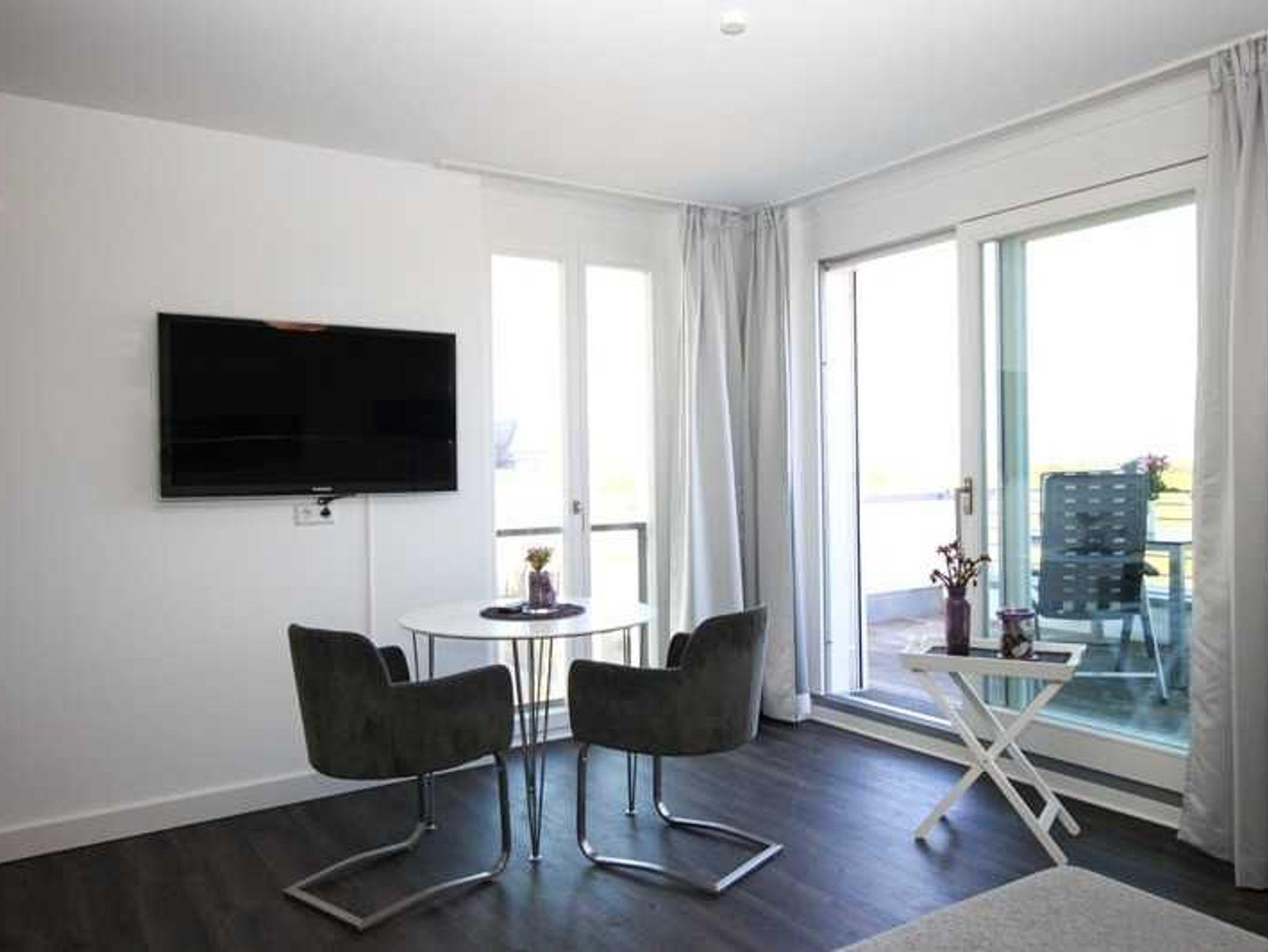 Diese hochwertige Ferienwohnung besteht aus einem Wohn- und Essbereich, einem Schlafraum sowie Balkon. Im Wohnbereich finden Sie eine bequeme Zweisitzer-Couch und einen Flatscreen-TV. Das Schlafzimmer bietet Ihnen ein großes Boxspringbett mit einer durchgehenden und angenehm weichen Matratze. Für weitere Bequemlichkeit sorgt hier ein begehbarer Kleiderschrank. Die offene Küche- mit rundem Esstisch und zwei bequemen Stühlen, lädt natürlich zum Essen oder zu einem Spieleabend ein. Die Küchenzeile überzeugt mit Geschirrspüler, Mikrowelle, Backofen, Cerankochfeld und Kühlschrank, inklusive Gefrierfach. Das großzügige Duschbad verfügt über eine bodengleiche Dusche, einen Handtuchwärmer, einen kompakten Waschtisch und einen Föhn. Im Strandkorb auf dem eigenen Balkon in Nordausrichtung können Sie wunderbar relaxen. Für Ihr Fahrzeug steht ein kostenfreier Tiefgaragenplatz mit Aufzug bis zur Wohnungsetage bereit. Bitte beachten Sie die Durchfahrtshöhe von max. 1,90 m. Bei Überschreitung der maximalen Durchfahrtshöhe, besteht die Möglichkeit auf einen kostenpflichtigen Parkplatz in unmittelbarer Nähe auszuweichen. Ihre Fahrräder können im abschließbarer Fahrradraum der Tiefgarage im Gebäude sicher aufbewahrt werden. Noch einige Hinweise: Die Wohnung selbst ist eine Nichtraucherwohnung. Haustiere sind hier generell nicht erlaubt. Das kostenfreie WLAN in der Unterkunft ist ausschließlich für die Verwendung von Social Media und den Austausch von Bildern mit Familie und Freunden gedacht. Die Nutzung zum Streamen von Filmen ist nicht vorgesehen. Wäscheset, Kinderreisebett und Kinderhochstuhl können kostenpflichtig zugebucht werden. Eine Waschmaschine und ein Trockner stehen im Waschraum im Erdgeschoss des Objekts gegen Gebühr zur Verfügung (50 Cent- Münzen). Sichern Sie sich zusätzlich den Anspruch auf einen der begehrten Strandkörbe nur ein paar Meter entfernt von den rauschenden Wellen der Ostsee (Anfang Mai - Ende August) und buchen Sie jetzt zu besonderen Konditionen (12,00 Euro pro Tag oder 75,00 Euro pro Woche.)