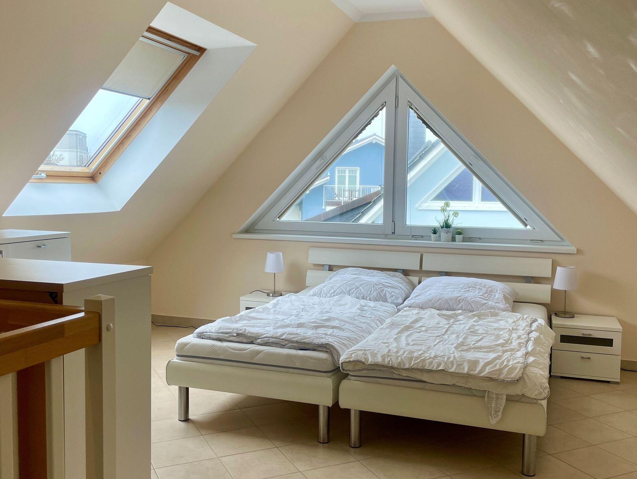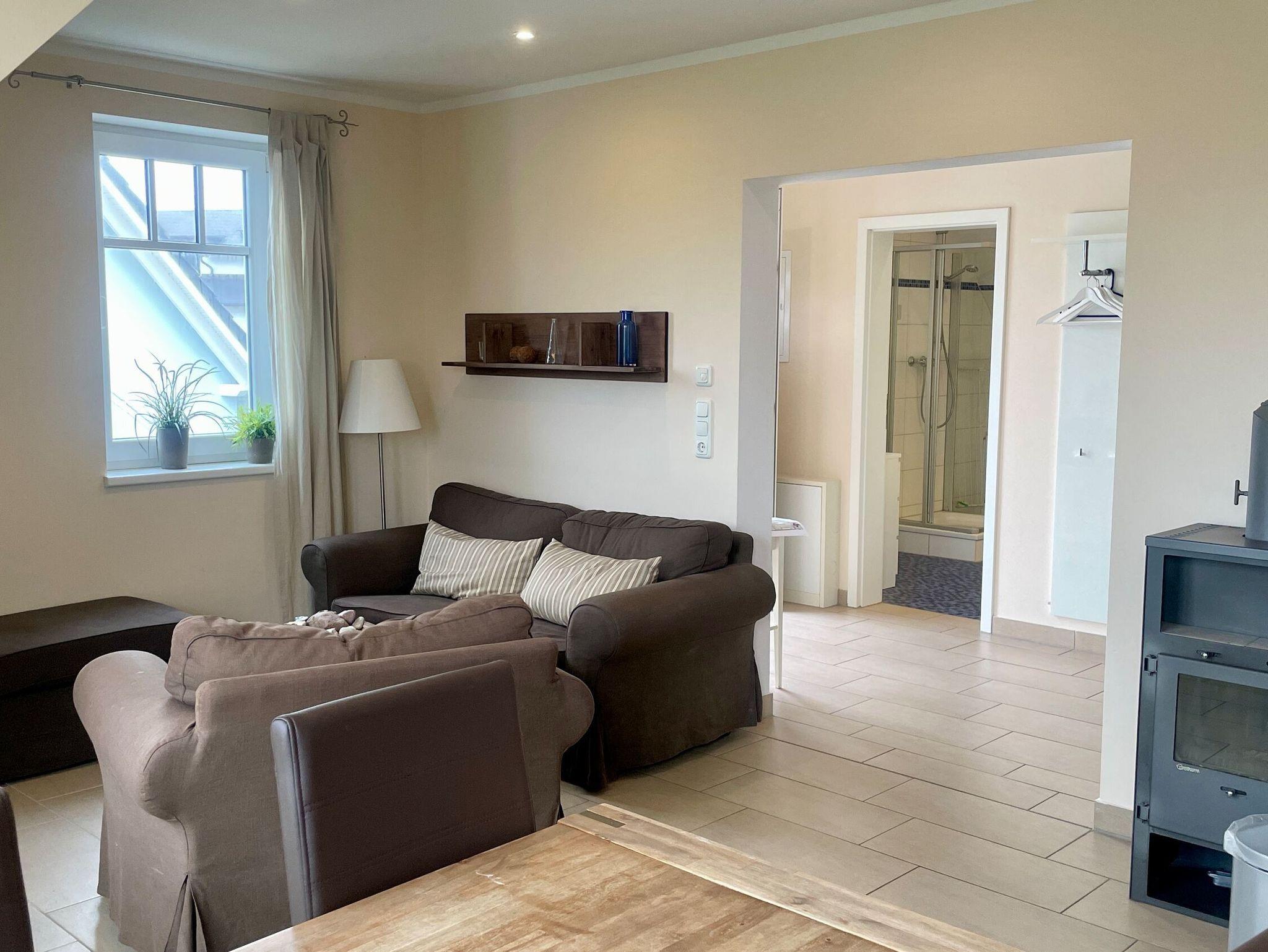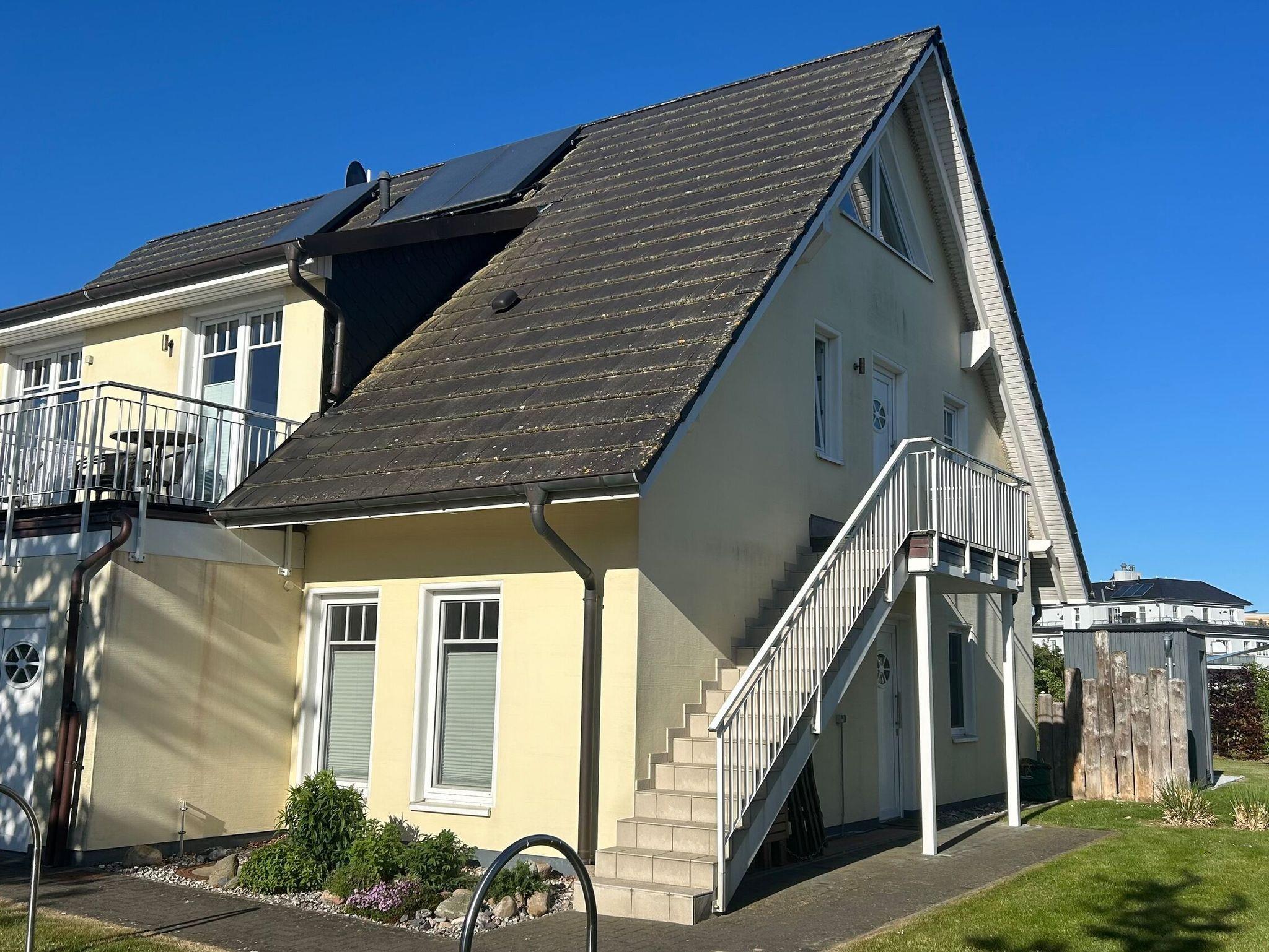 Diese charmante Ferienwohnung im Obergeschoss bietet auf 65 m² ausreichend Platz für 4 Personen. Sie verfügt über 2 Schlafzimmer mit Doppelbetten, eine gut ausgestattete Küche (inkl. Geschirrspüler und Backofen) und einen gemütlichen Wohnbereich mit Kaminofen. Der Balkon ist ideal zum Entspannen an schönen Tagen. Haustiere sind erlaubt. Der Strand ist nur 150 Meter entfernt, und ein PKW-Stellplatz ist vorhanden.