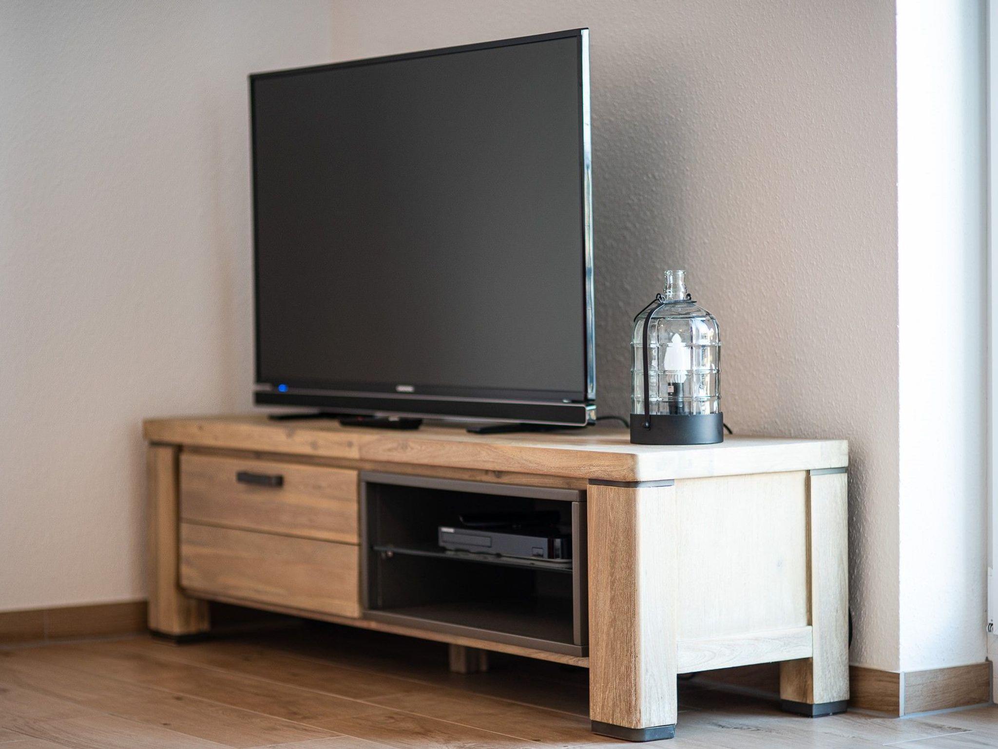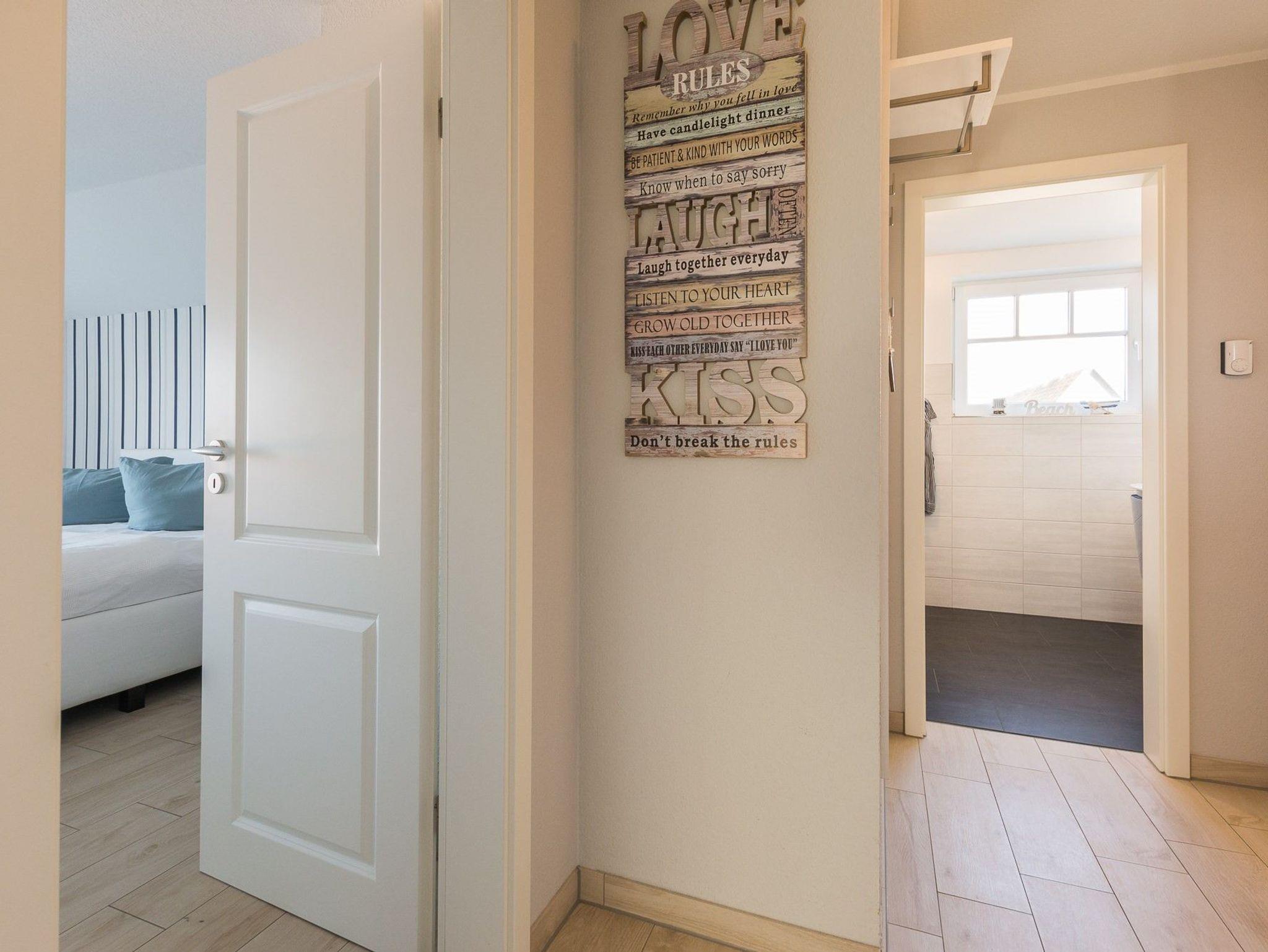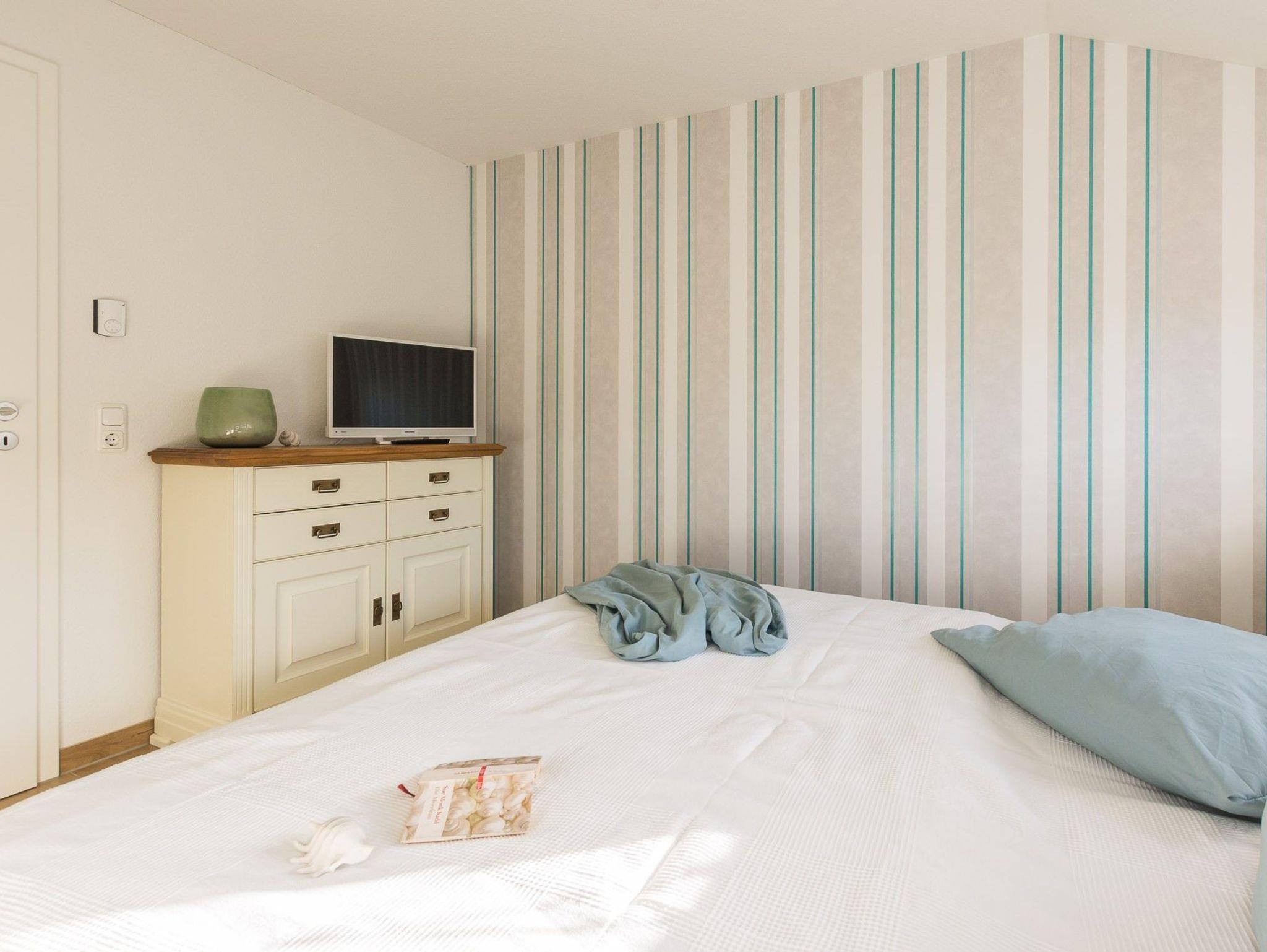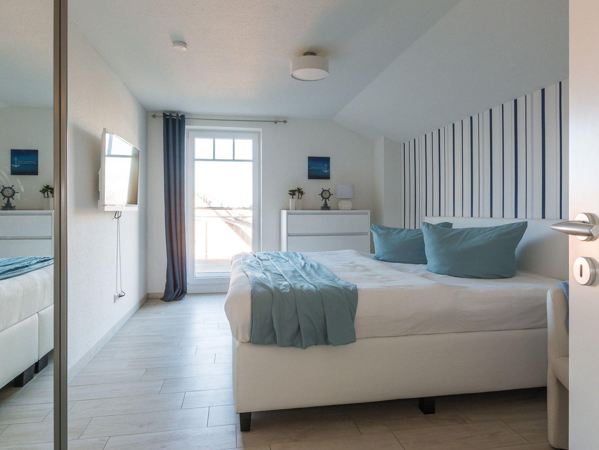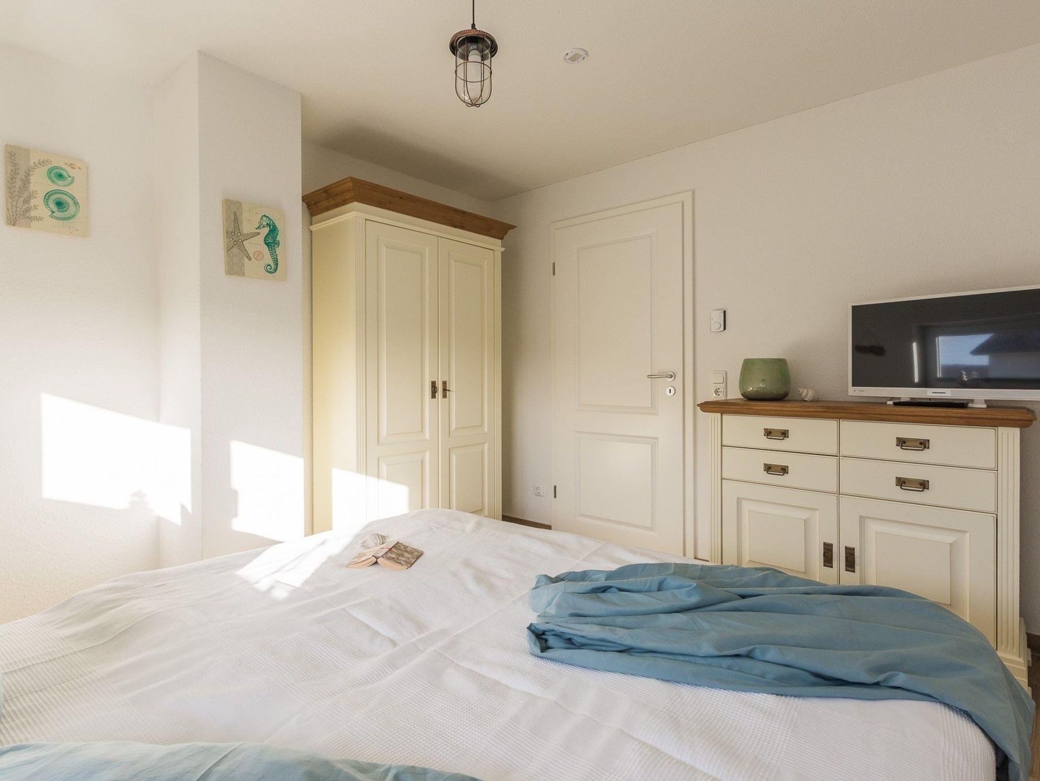 Die Unterkunft verfügt über zwei Schlafzimmer ausgestattet mit einem Boxspringbett bzw. einem Doppelbett mit jeweils einem LED-TV.