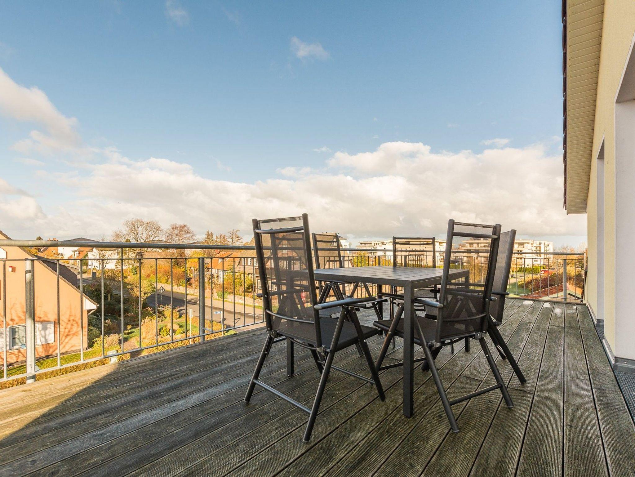 Die Ferienwohnung Meerblick ist eine liebevoll eingerichtete Ferien-Penthousewohnung mit einer Größe von etwa 85 Quadratmetern für bis zu vier Personen mit einer 28 m² Dachterrasse mit einem tollen Blick auf die Ostsee und den Converter See. Die Wohnung ist hochwertig eingerichtet, mit Insektengittern ausgestattet und entspricht modernen Anforderungen. Ein Holzkamin und kostenfreies WLAN steht den Gästen zur Verfügung.