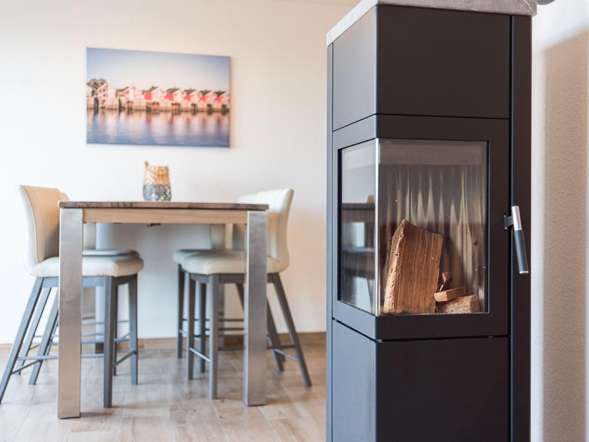Der offener Wohn- und Essbereich mit LED-TV, Bluray Player und Holzkamin lädt zum Verweilen ein (Kaminholz muss selbst organisiert werden). Der Küchenbereich ist komplett eingerichtet mit Spülmaschine, Backofen, Mikrowelle und Kühlschrank. Das Badezimmer überzeugt mit einer ebenerdigen geräumigen Dusche.