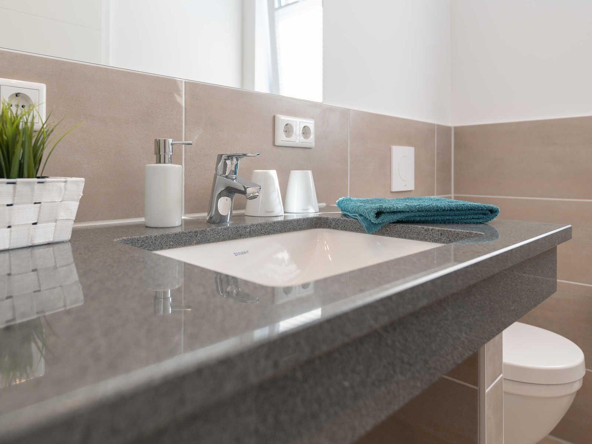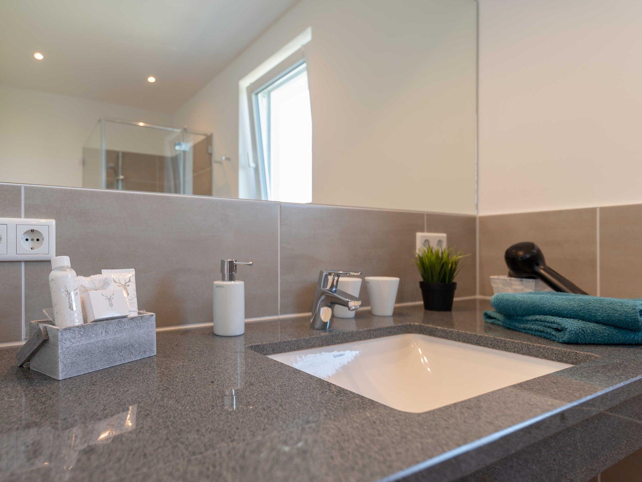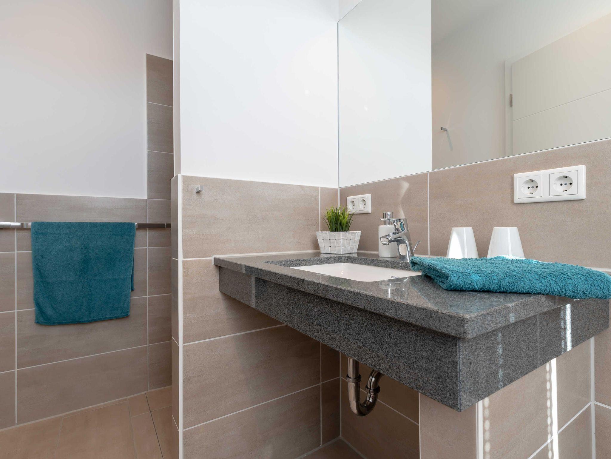 · zwei Bäder: jedeweils mit Dusche, WC und kompletter Ausstattung (z.B. große Spiegel, Fön und Waage)