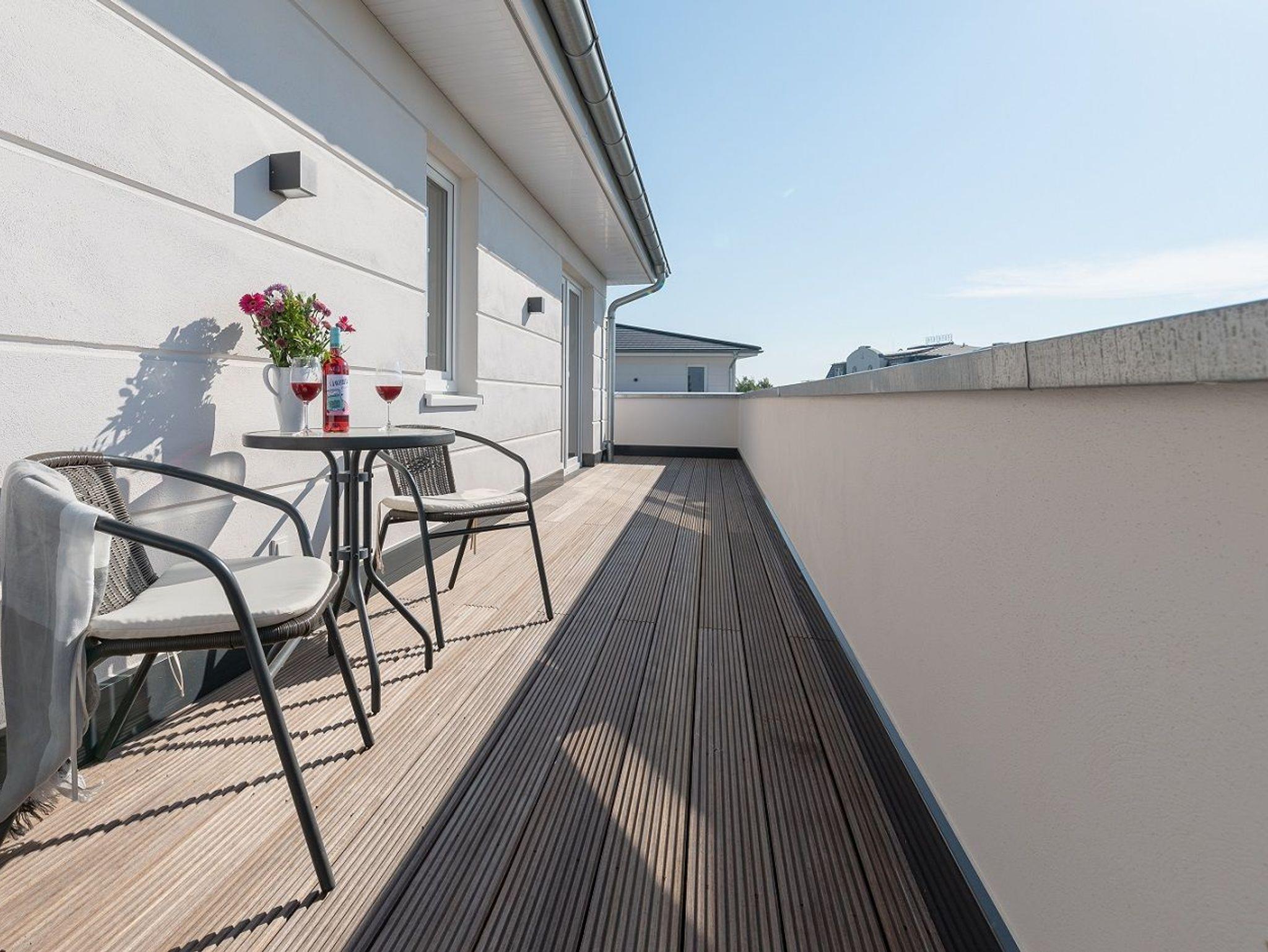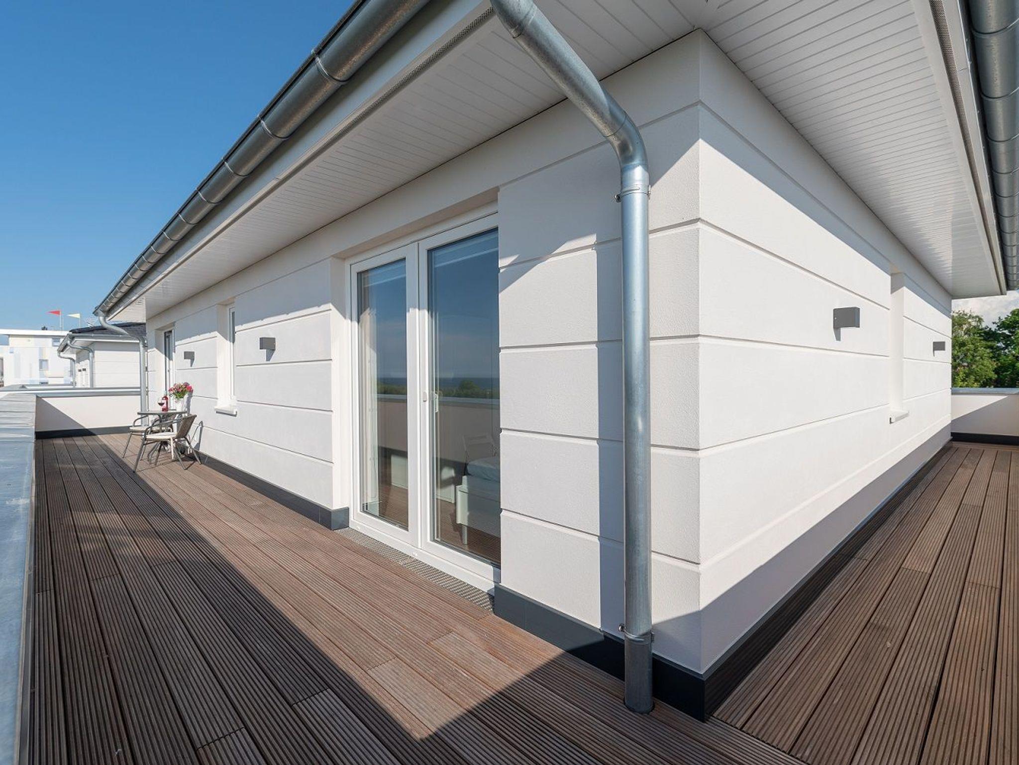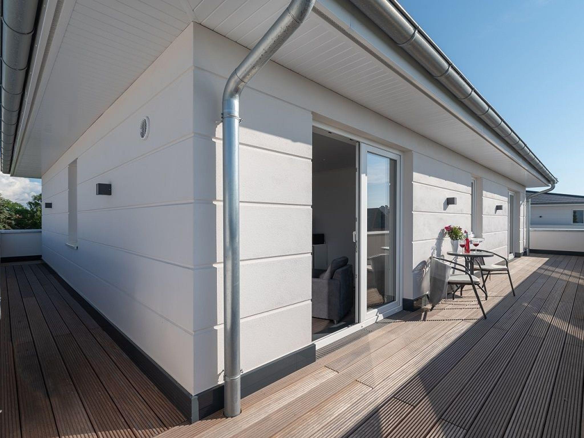 Gelegen im Ensemble Rosengarten (drei bauähnliche Häuser) befindet sich die Wohnung in der zweiten (obersten) Etage in der Villa Bonita mit 75 qm Wohnfläche und 50 qm Terrasse (umlaufend).