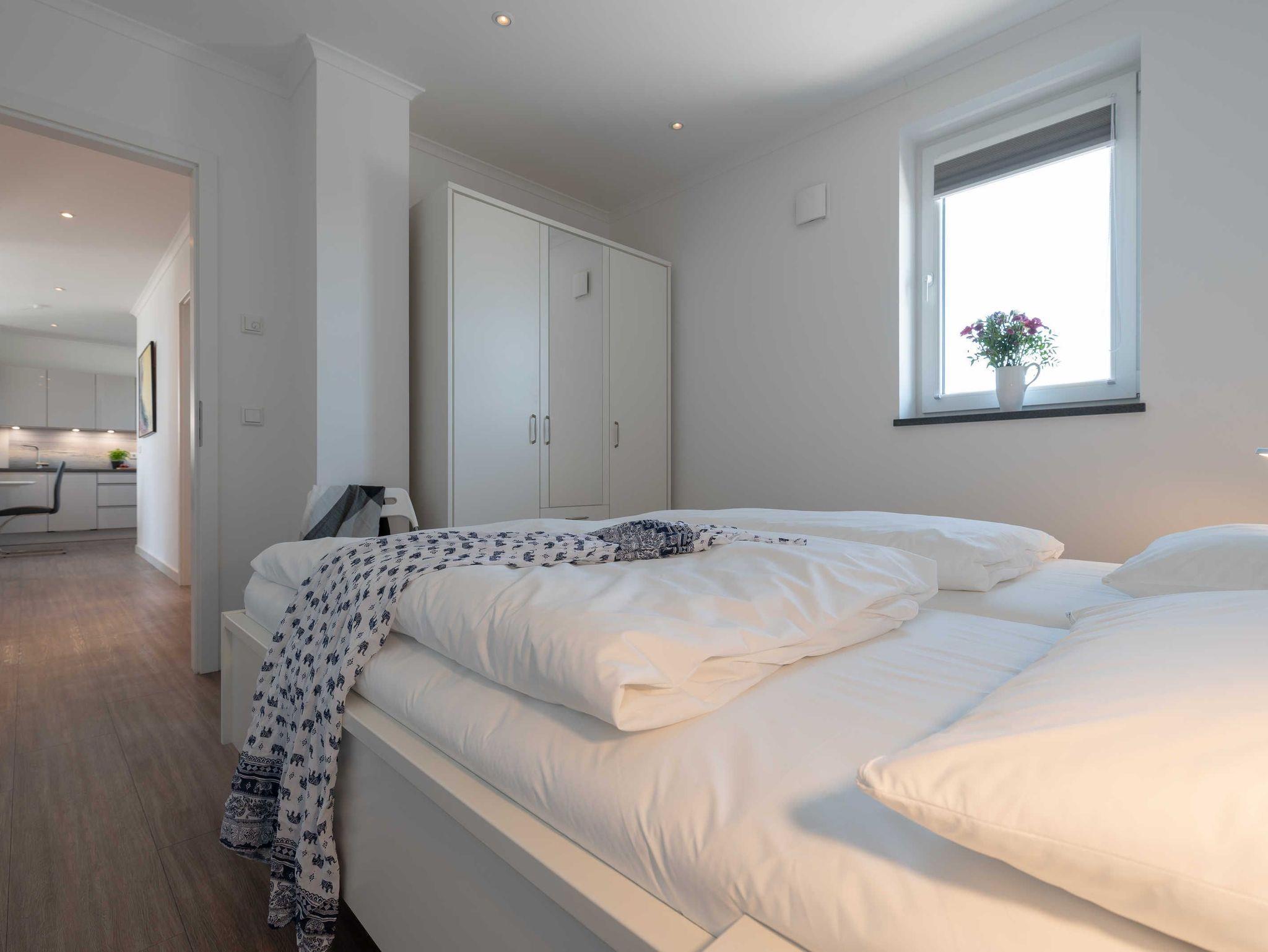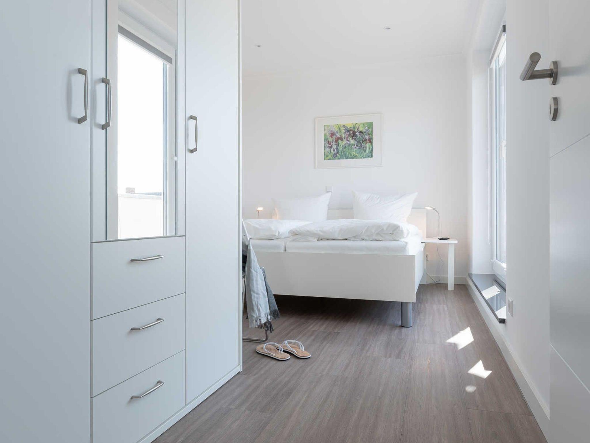 · zwei Schlafzimmern mit je einem Doppelbett (200 x180 cm) und je einem großen dreiflügeligen Schrank mit Spiegeltür
