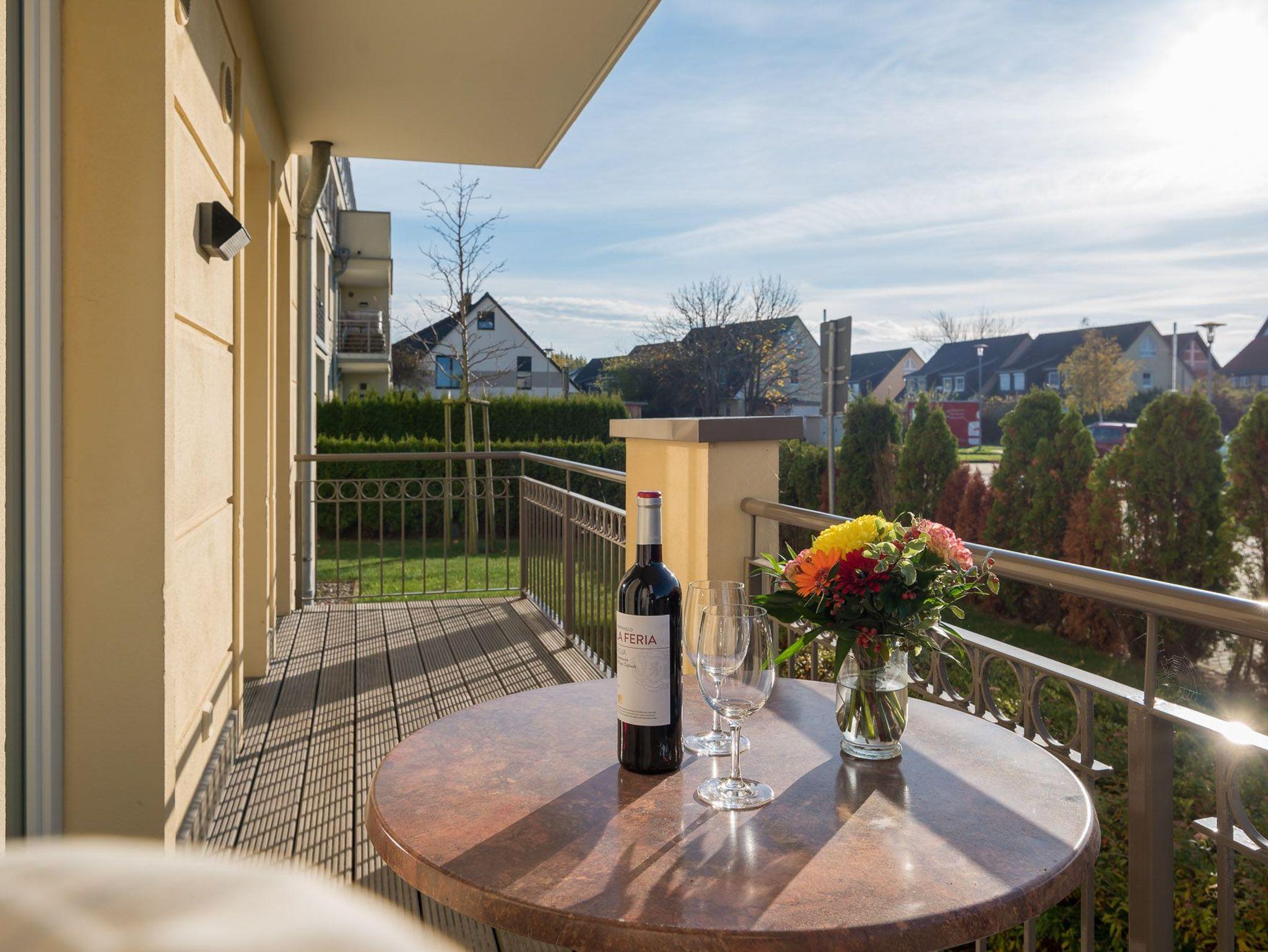 Strandnahe 3-Raumwohnung für max. 5 Erwachsene und 1 Kleinkind, 2 Bäder, 2 Schlafzimmer und Balkon im EG.