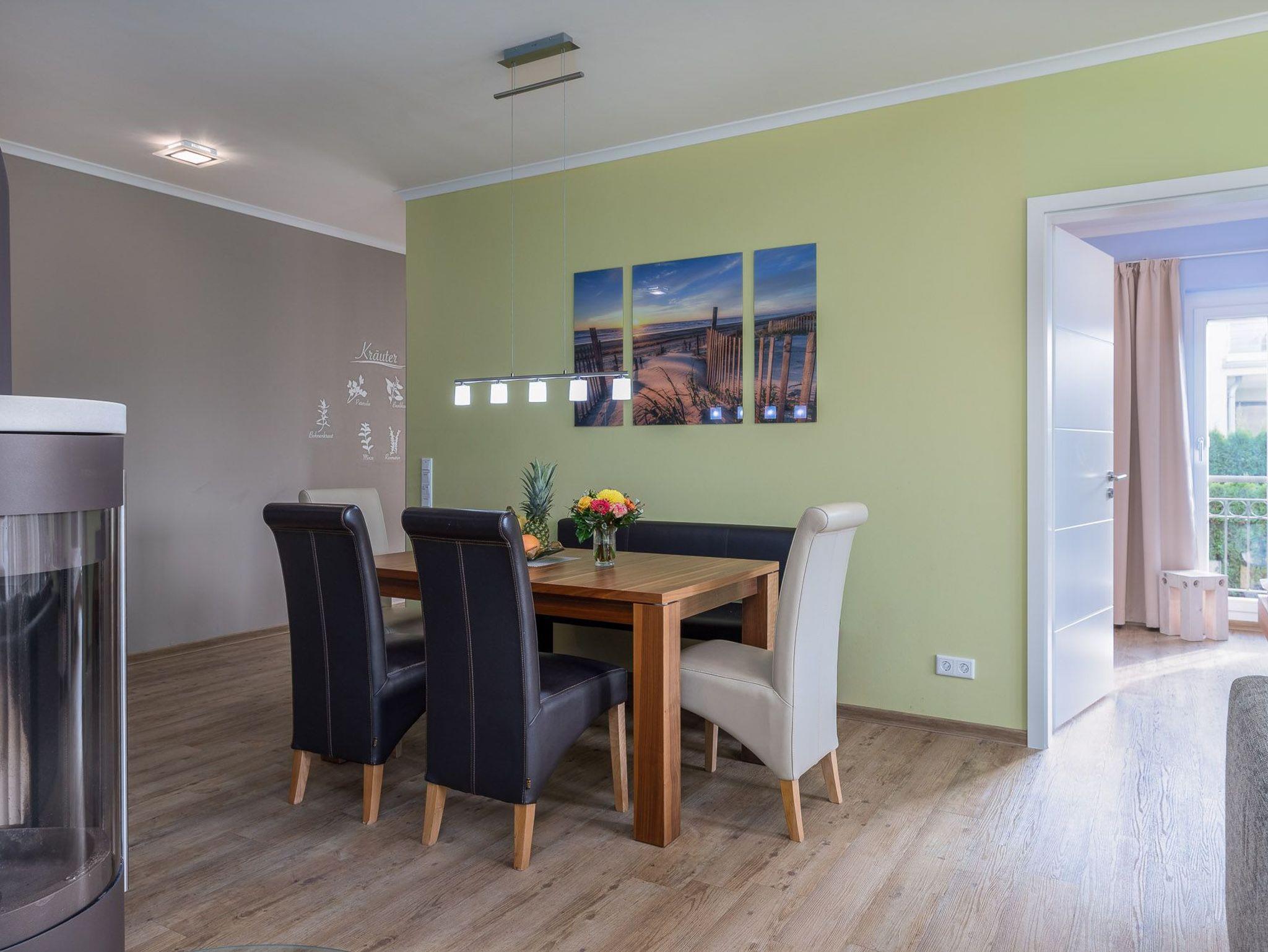 Es empfängt Sie ein heller und lichtdurchfluteter Wohn- und Essbereich. Das bequeme Ecksofa lädt zum Verweilen und Ausruhen ein. Ergänzt wird die Wohlfühlatmosphäre mit einem hyggeligen Kaminofen, einem TV-Gerät mit DVD-Player und einem CD-Radio. Holz für den Kamin kann nicht bereitgestellt werden. Bücher und Gesellschaftsspiele für ruhige Stunden sind ebenfalls vorhanden. Der großzügige Essbereich mit mehreren Stühlen und einer Sitzbank bietet ausreichend Raum zum gemeinsamen Essen und zum Spielen für bis zu sieben Personen. Den Zugang zum Balkon haben Sie über den Wohnbereich. Der Balkon hat eine ideale Süd-West-Ausrichtung. Hier können Sie den Tag bis zur Abendsonne genießen. Lauschen Sie bei einer guten Flasche Wein dem Rauschen des Meeres. Die Balkonmöbel dafür stehen bereit. Die separat gelegene und helle Küche verfügt über ein eigenes Fenster. Sie ist umfangreich ausgestattet mit Kühlschrank, inklusive Tiefkühlfach, Geschirrspüler, Backofen, Ceran-Kochfeld, Mikrowelle, Kaffeemaschine, Kaffeepad Maschine von Tassimo, Toaster sowie Wasserkocher. Es sollten in dieser Beziehung keine Wünsche offenbleiben. In einem der Schlafzimmer wurde ein raumhoher Kleiderschrank eingebaut. Beide Schlafräume verfügen über Doppelbetten (1,80 x 2,00/ 1,60 x 2,00/ beide mit getrennten Matratzen). Die eleganten Bäder präsentieren sich jeweils als Wohlfühloase mit großer, ebenerdiger Dusche und zusätzlicher Regenkopfbrause, Handtuchtrockner, Waschtisch, Föhn sowie weiteren Extras. Zusätzlich finden Sie einen kleinen Abstellraum mit Safe für Ihre Wertsachen in der Wohnung vor. Zur Unterkunft gehört ein kostenfreier Parkplatz direkt am Objekt. Ihre Fahrräder können Sie zudem in der Tiefgarage der Villa abstellen. Hier noch einige Hinweise: Es handelt sich um eine Nichtraucherwohnung. Es sind keine Haustiere erlaubt. Das kostenfreie WLAN in der Unterkunft ist ausschließlich für die Verwendung von Social Media und den Austausch von Bildern mit Familie und Freunden gedacht. Die Nutzung zum Streamen von Filmen ist nicht vorgesehen. Eine Waschmaschine und ein Trockner stehen im separaten Hauswirtschaftsraum im Untergeschoss der Villa zu Ihrer Verfügung (gegen Gebühr / 1,00 € Münzen). Wäschesets, Kinderreisebett und Kinderhochstuhl können kostenpflichtig zugebucht werden. Sichern Sie sich einen der begehrten Strandkörbe nur ein paar Meter entfernt von den rauschenden Wellen der Ostsee (Anfang Mai - Ende August) und buchen Sie jetzt zu besonderen Konditionen (12,00 € pro Tag oder 75,00 € pro Woche).
