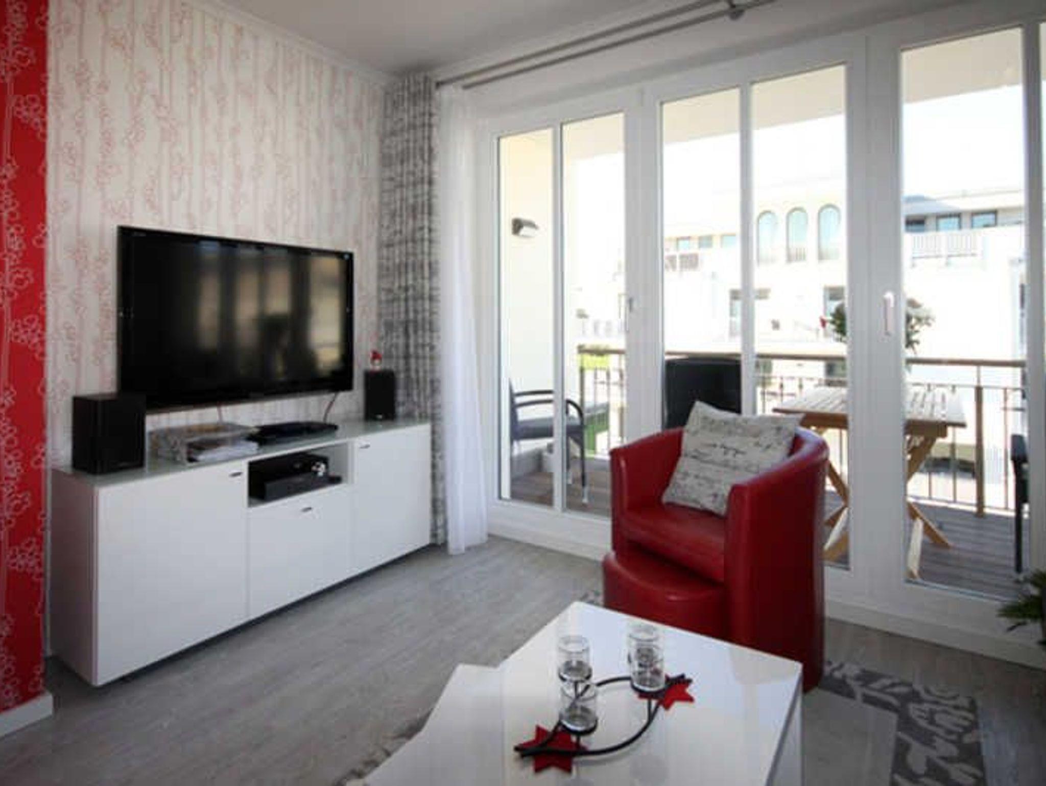 Die freundliche, helle Wohnung befindet sich im zweiten Obergeschoss der Villa Strandvogt und ist für vier Personen eingerichtet. Im Schlafzimmer erwarten Sie ein Boxspringbett (180 x 200 cm), ein Kleiderschrank und ein Flatscreen-TV. Das moderne Wohnzimmer besticht mit einem gemütlichen Fernsehsessel und einem bequemen Sofa, welches sich als weitere Schlafgelegenheit auf 160 x 200 cm ausziehen lässt. Weiterhin ist das Wohnzimmer mit einem großen HD-Flatscreen-TV, einem Blu-ray Player, einem CD-Player und einer Hifi Anlage bestens technisch ausgestattet.[nbsp] Im offenen Küchen- und Essbereich finden Sie die hochwertige, voll eingerichtete Einbauküche mit Backofen, Cerankochfeld, Kühlkombination, Mikrowelle, Kaffeemaschine, Toaster sowie Esstisch mit vier Stühlen. Das großzügige Bad verfügt über eine bodengleiche Dusche sowie einen Waschtisch mit breitem Spiegel. Vom möbelierten Balkon mit Nord-Lage können Sie ungestört den Blick auf das Meer genießen.