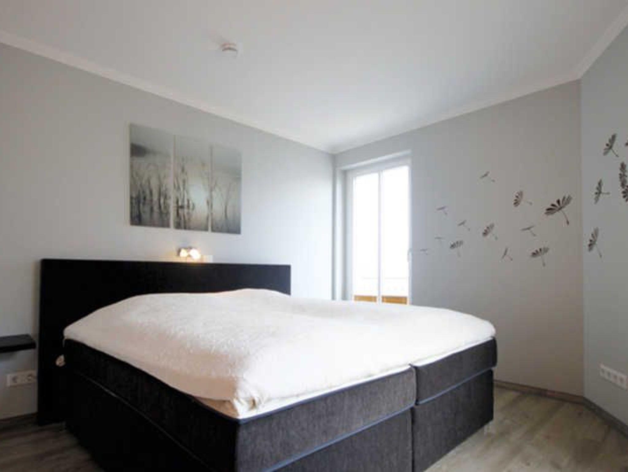 Die für zwei Personen eingerichtete charmante Eck-Wohnung liegt in der zweiten Etage der Villa Strandvogt. Im Wohnbereich sorgen eine Couch, mit Couchtisch und einer hochwertigen Home-Entertainment-Anlage mit einer Bildschirmdiagonale von 1,16 m für ein gelungenes Urlaubsgefühl. Ein Stehregal fungiert als Raumteiler zum Essbereich mit Tisch und vier Stühlen. Zum Kochen stehen Ihnen zwei Ceranfeldplatten und eine Mikrowelle mit integriertem Grill zur Verfügung. Darüber hinaus gehören ein Geschirrspüler, ein Kühlschrank mit Gefrierfach, ein Toaster, eine Kaffeemaschine und ein Wasserkocher zur Ausstattung der Küche. Auf dem nach Osten ausgerichteten Balkon können Sie Ihr Frühstück mit Blick auf das Meer genießen. Im Schlafzimmer erwarten Sie ein komfortables Boxspringbett (durchgehende Matratze) und ein geräumigen Einbauschrank. Das moderne Bad verfügt über eine bodengleiche Dusche und einen edlen Waschtisch.
