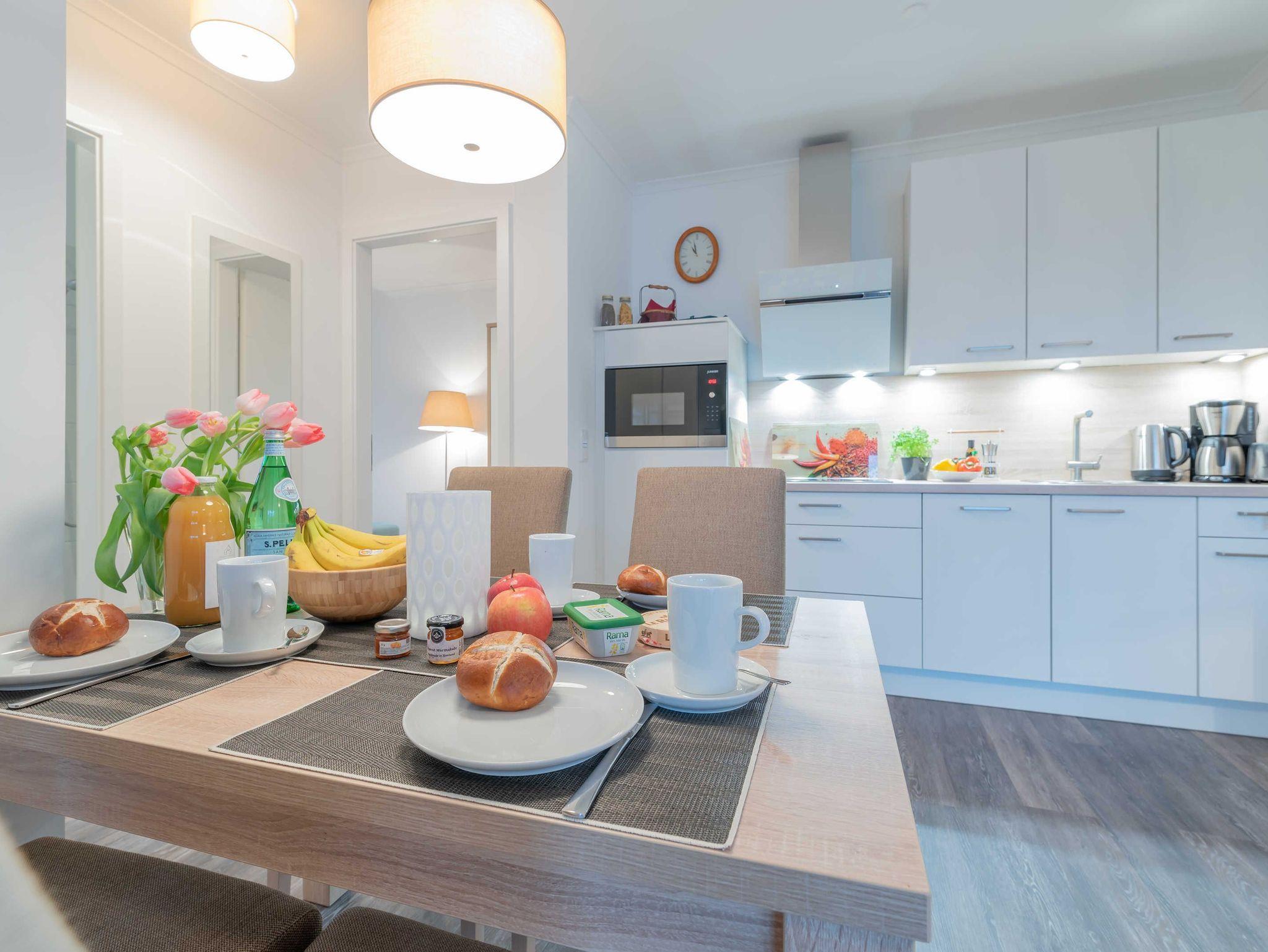 Die freundliche, helle Drei-Zimmer-Wohnung liegt in der ersten Etage des 2018 fertig gestellten Objektes und ist für maximal vier Personen geeignet.