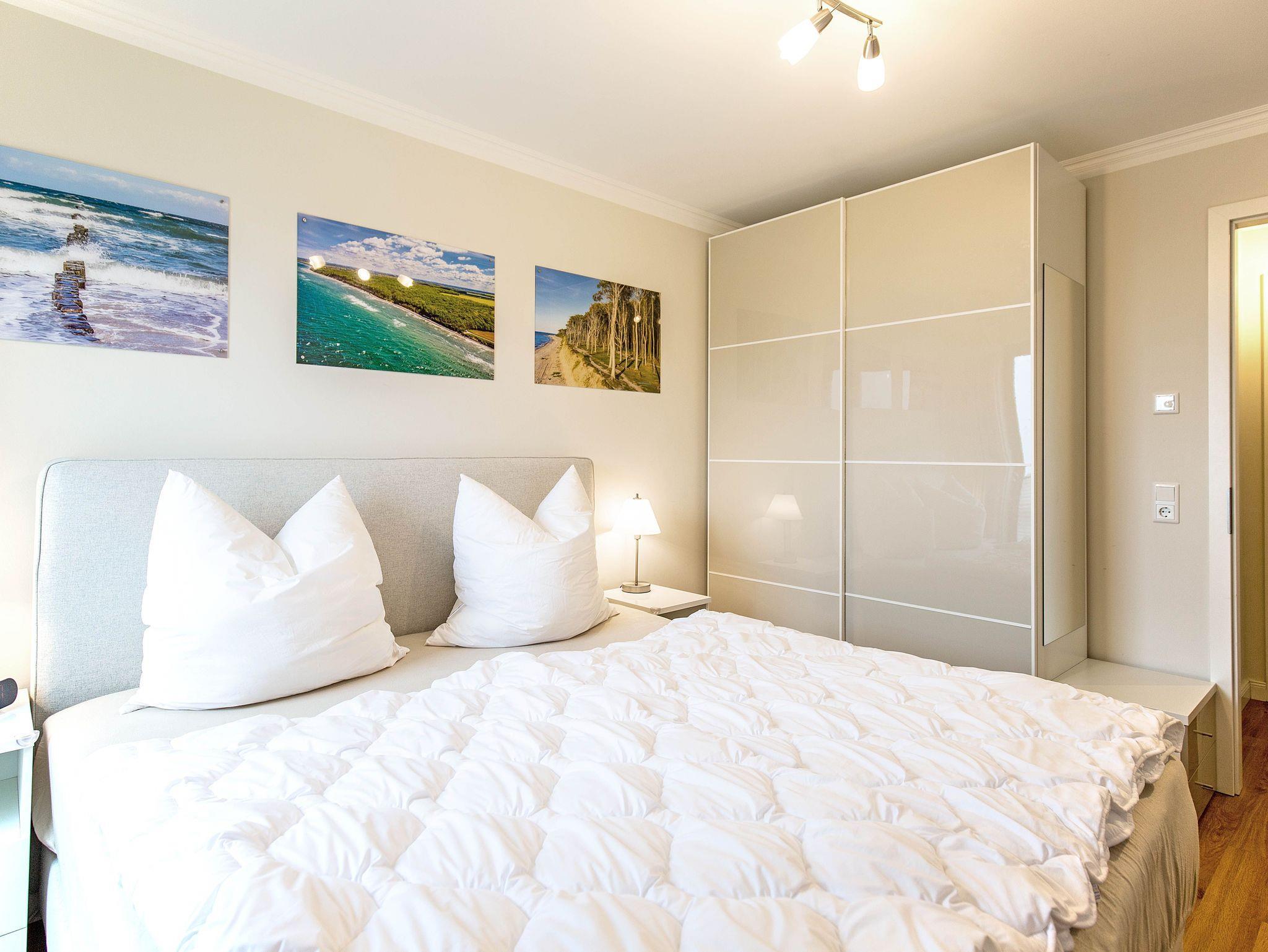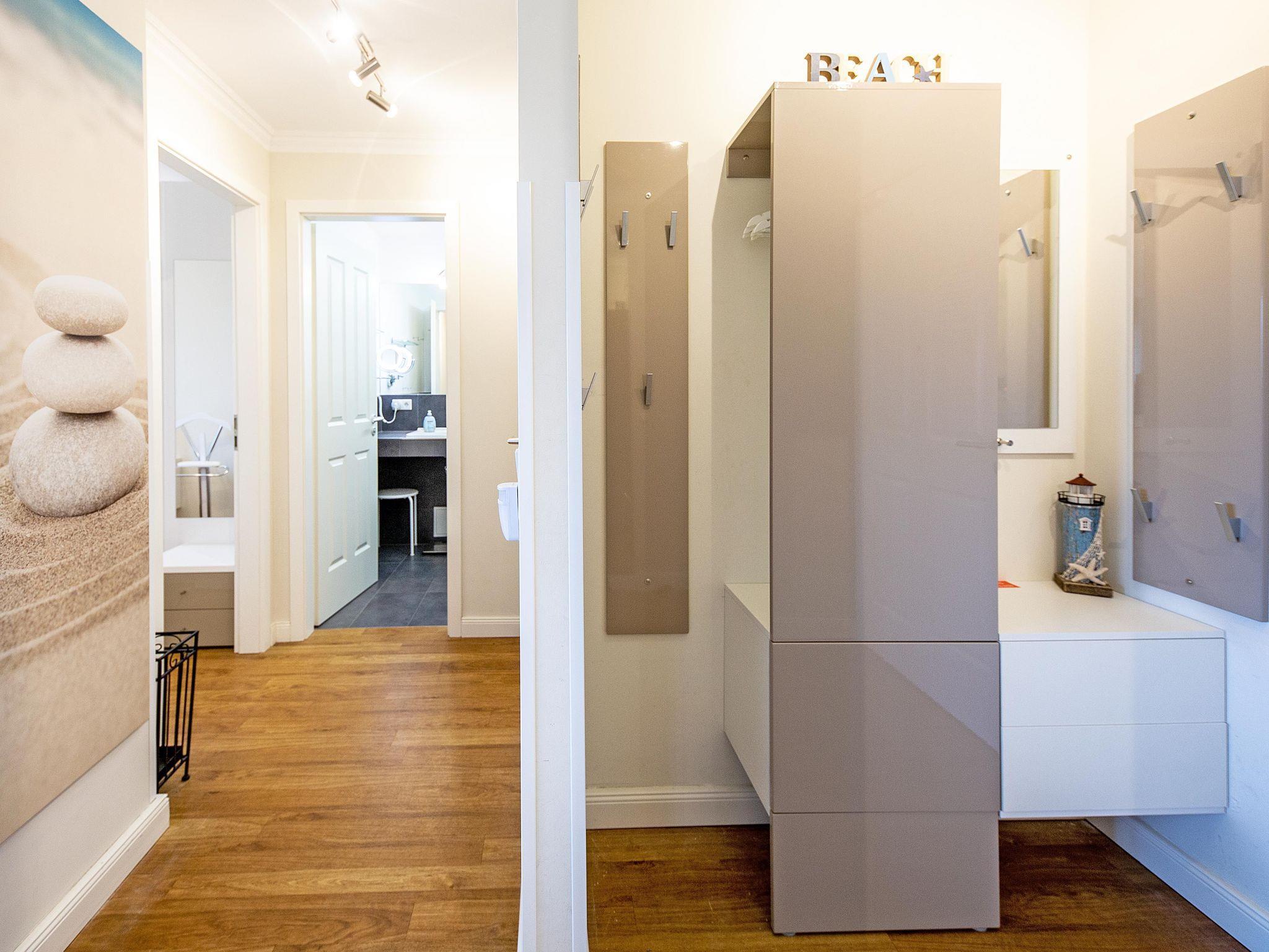 Im November 2021 neu eingerichtet, bietet diese großzügige Wohnung Platz für bis zu fünf Personen. Zwei Schlafzimmer und zwei Bäder sind perfekt für einen entspannten Aufenthalt. Eines der Schlafzimmer verfügt über ein angrenzendes Bad, ein sogenanntes „Bad en Suite“. Das zweite Bad erreicht man über einen Zwischenflur. Die Bäder sind umfassend mit einer bodentiefen Dusche, großem LED-Wandspiegel, Ablagen, Handtuchtrockner, Föhn, Personenwaage und weiteren Annehmlichkeiten ausgestattet. In den Schlafräumen erwarten Sie je ein modernes Boxspringbett mit durchgehender Matratze von 1,80 x 2,00m (linkes Schlafzimmer mittelfeste Matratze/ rechtes Schlafzimmer feste Matratze) Außerdem verfügen beide über Kleiderschrank mit Ganzkörperspiegel und eine Wandkommode. Über diesen sind moderne 43 Zoll TV- Geräte angebaut worden. Den vorhandenen Kosmetiktisch im ersten Schlafzimmer können Sie zudem als Schreibtisch nutzen. Installierte Fliegengitter sorgen in allen drei Zimmern für unbeschwerten Schlafkomfort. Bitte beachten Sie, dass in den Schlafzimmern kein Platz für den Aufbau eines zusätzlichen Kinderreisebetts ist. Im Wohnbereich empfängt Sie eine bequeme Sitzgarnitur mit ausziehbarer Schlafcouch, ein TV-Board mit einem supergroßen OLED-Fernseher, Blu-ray-Player und einem ganzen Schwung an DVDs. Ein weiteres stimmungsvolles Highlight ist der gut nutzbare Gas-Kamin. Der Bereich erstreckt sich über eine komplett eingerichtete Küchenzeile und einen Esstisch mit fünf Stühlen für gemeinsame Mahlzeiten und gesellige Spieleabende. Die integrierte Induktionsherdplatte (4-Kochstellen) sorgt für eine schnellere Zubereitung Ihrer Gerichte. Weiterhin stehen ein Backofen, Geschirrspüler, Kühlschrank mit Gefrierfach, Mikrowelle, Kaffeemaschine, „Nespressomaschine“, Wasserkocher und Toaster zur Verfügung. Es ist für ausreichende Abstell- und Unterbringungsmöglichkeiten gesorgt. Über den Wohnbereich gelangen Sie auf den herrlichen Balkon in Nord-Ausrichtung mit traumhaftem Ostseeblick. Im vorhandenen Strandkorb können Sie fantastische Sonnenuntergänge genießen. Die verbaute Fußbodenheizung sorgt in allen Räumen stets für wohlige Wärme. Zur Wohnung gehören zudem ein kostenfreier Tiefgaragenstellplatz und eine Abstellmöglichkeit für Fahrräder. Bitte beachten Sie die Durchfahrtshöhe von max. 1,90 m der Tiefgarage. Mit einem Personenaufzug gelangen Sie von der Tiefgarage aus direkt zu Ihrer Wohnung. Im Erdgeschoss der Wohnung befindet sich ein gekennzeichneter Abstellbereich für Kinderwagen. Eine Waschmaschine und ein Trockner stehen im separaten Hauswirtschaftsraum im Untergeschoss der Villa zu Ihrer Verfügung (gegen Gebühr / 1,00 € Münzen). Hier noch einige Hinweise: Es handelt sich um eine Nichtraucherwohnung. Haustiere sind nicht gestattet. Das WLAN steht kostenfrei in allen Zimmern zur Verfügung. Das Datenvolumen ist unbegrenzt, so dass Sie ohne Limit nach Herzenslust streamen können. Das Netz schwankt aber leider noch, wenn sich viele Nutzer in Börgerende im Internet befinden. Weiterhin befinden sich in der Wohnung ein Garderobenbereich, ein fest verbauter Safe für Ihre Wertsachen und zwei Abstellräume, in denen Sie bequem zusätzliche Dinge unterbringen können - auch die leeren Koffer. Hier finden Sie auch ein Bügelbrett und Dampfbügeleisen. Wäschesets, Kinderreisebett und Kinderhochstuhl können kostenpflichtig zugebucht werden. Ab der dritten Person wird ein Aufschlag in Höhe von 15,00 €/ÜN berechnet. Die Unterkunft befindet sich wenige Meter vom Badestrand entfernt in ruhiger Lage zur Promenade. Kein Autoverkehr! Sichern Sie sich einen der begehrten Strandkörbe nur ein paar Meter entfernt von den rauschenden Wellen der Ostsee (Anfang Mai - Ende August) und buchen Sie jetzt zu besonderen Konditionen (12,00 € pro Tag oder 75,00 € pro Woche.)