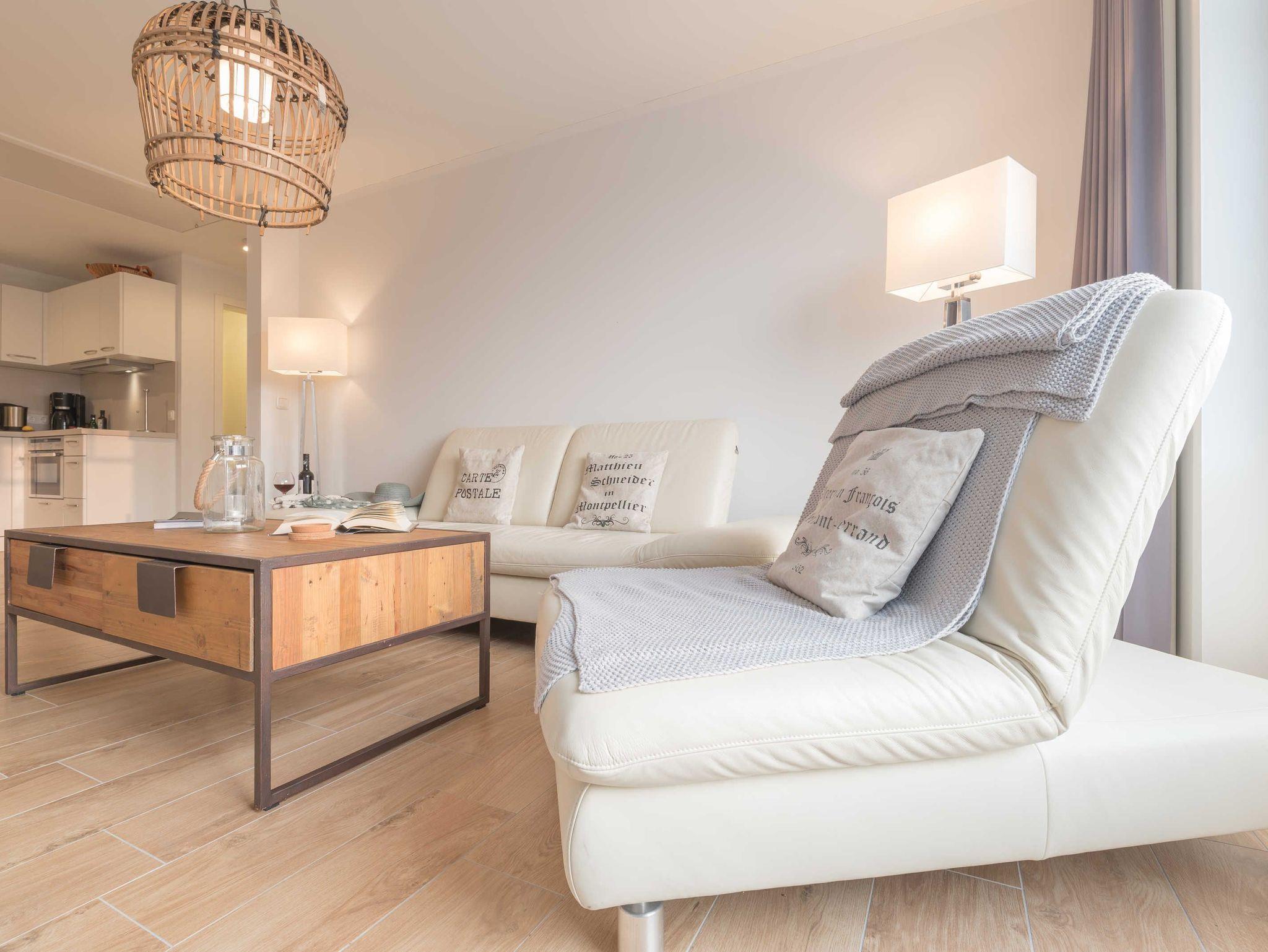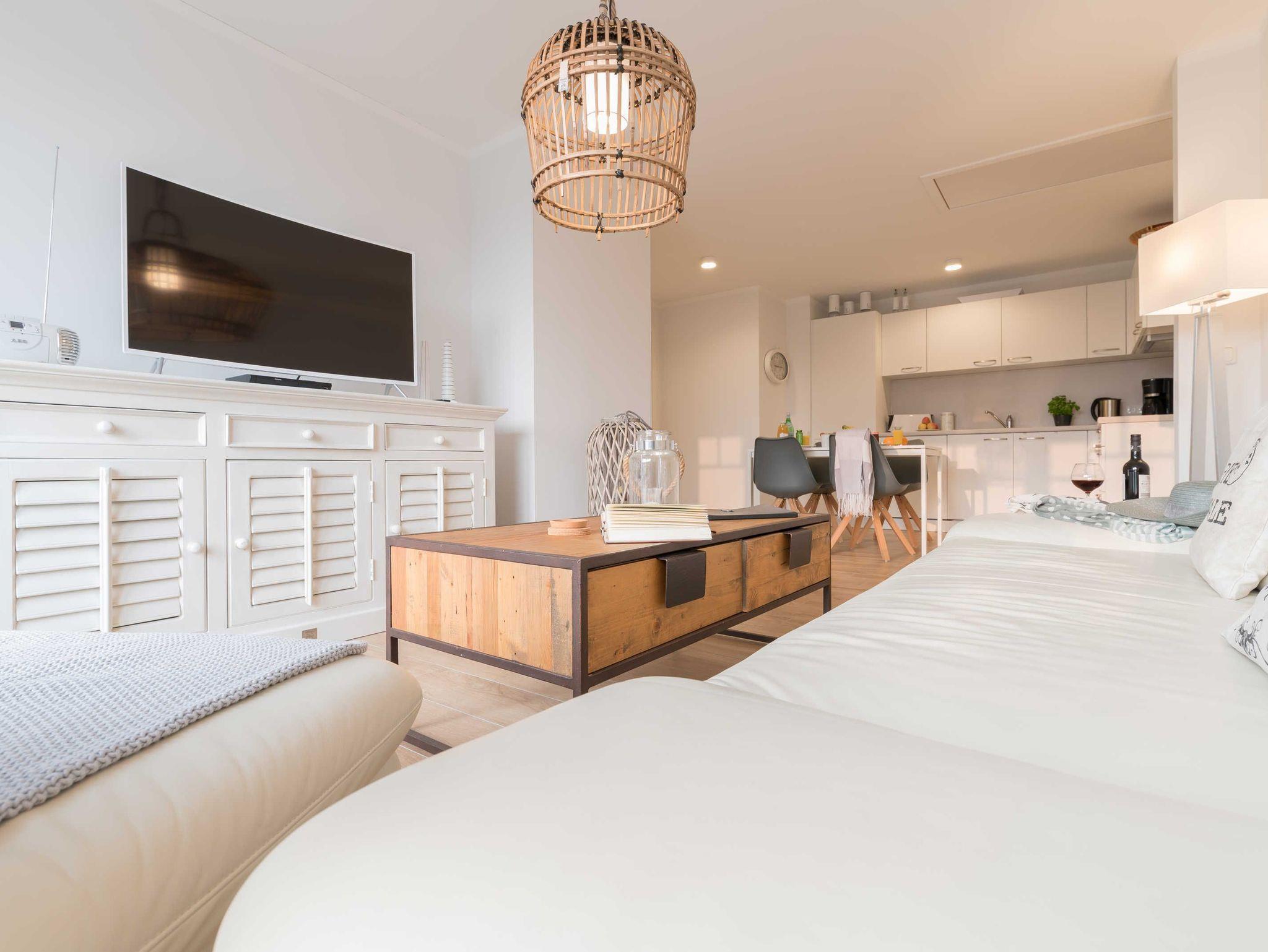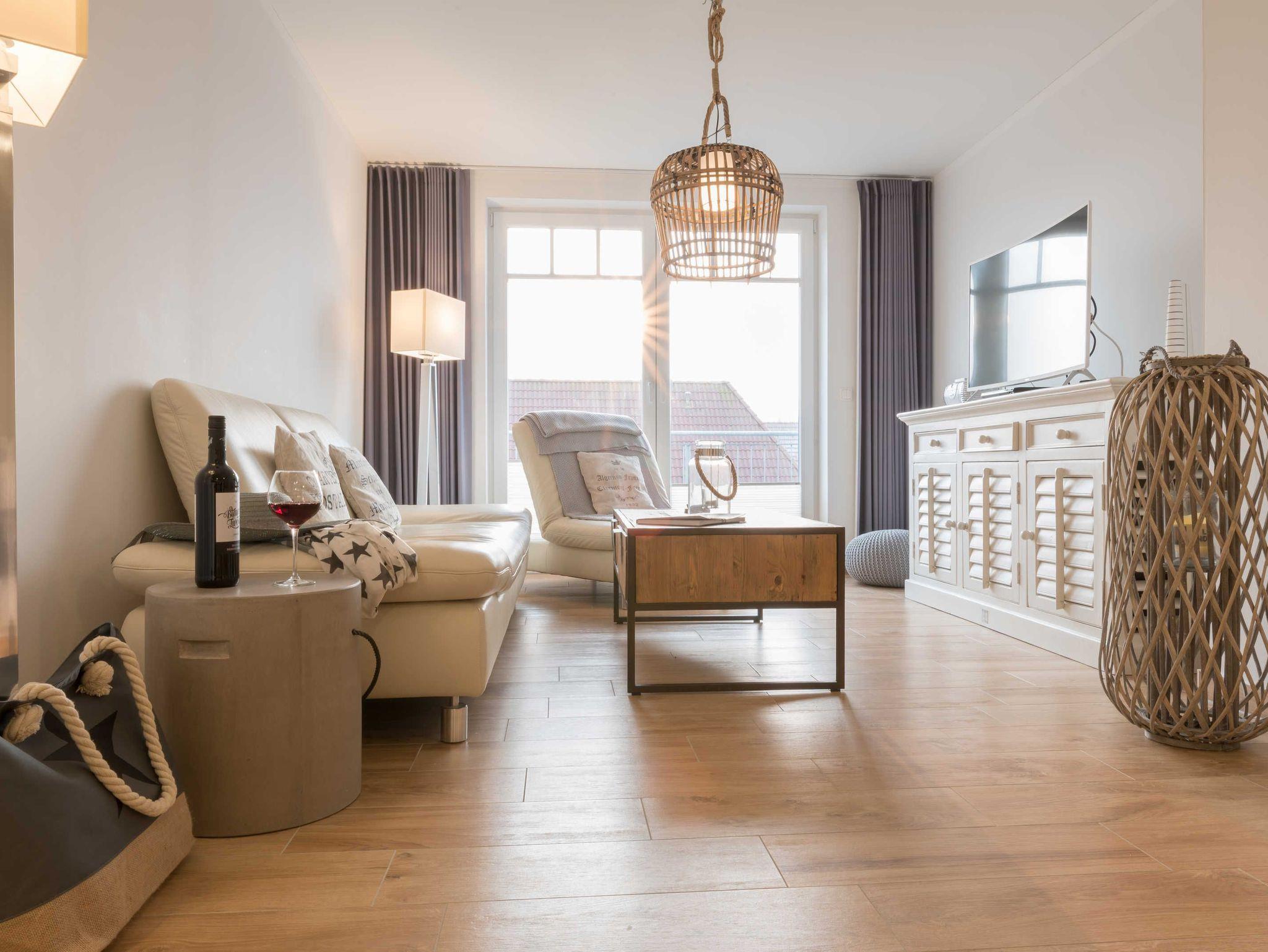 Die lichtdurchflutete Terrassenwohnung im zweiten Obergeschoss ist liebevoll eingerichtet und bietet allen Komfort auf ca. 80 qm für vier Personen.
