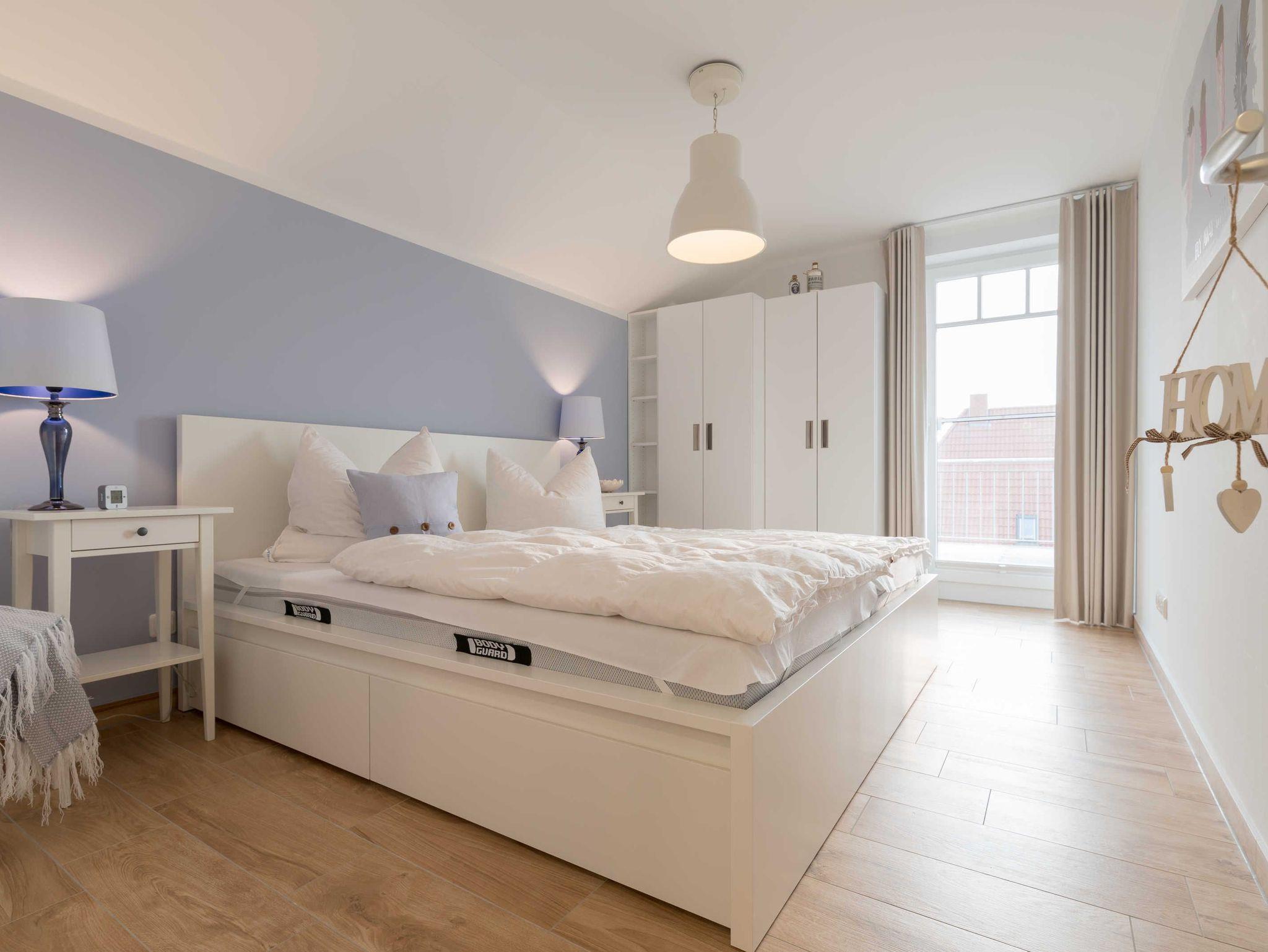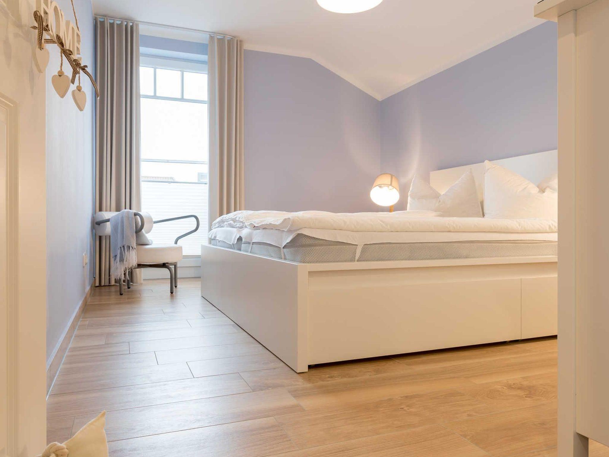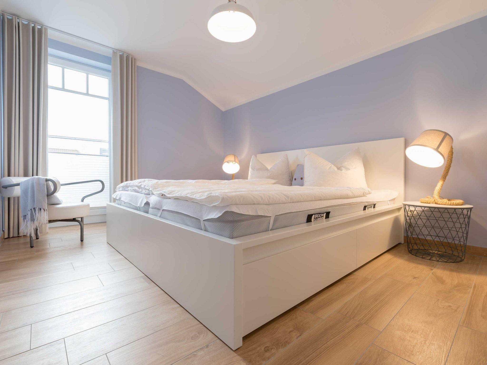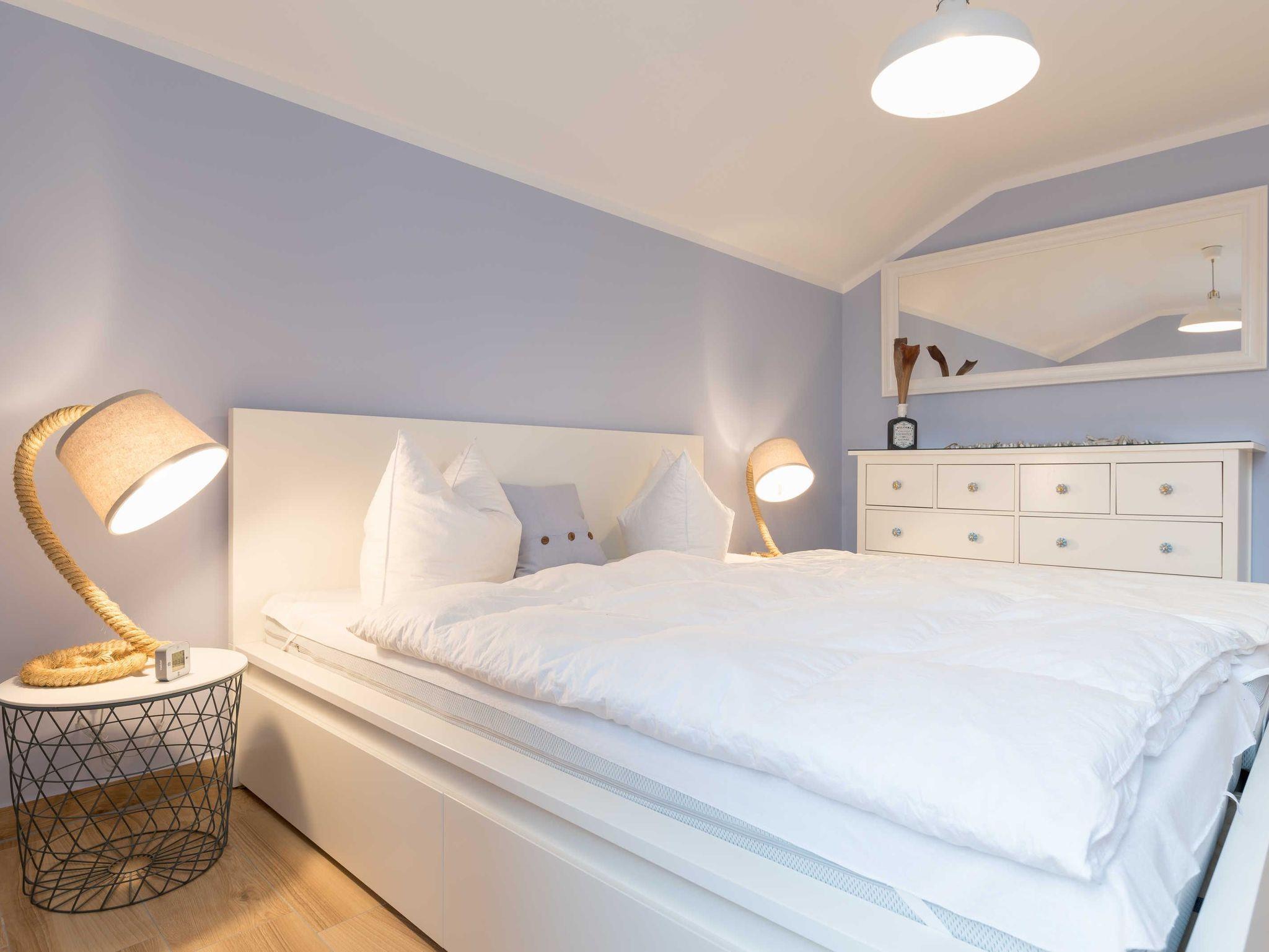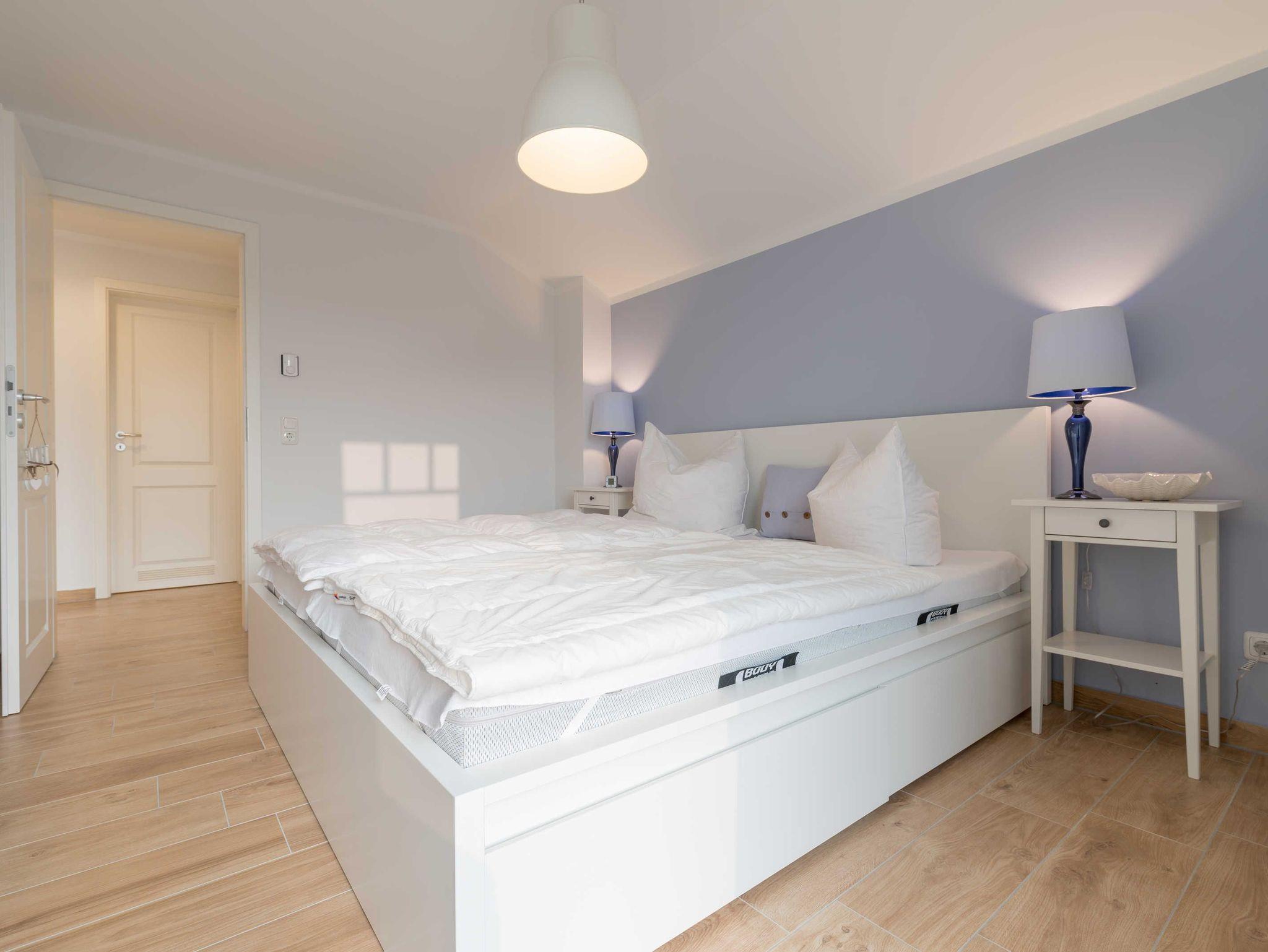 Die beiden Schlafzimmer emfangen Sie mit je einem bequemen 1,80 m Doppelbett (zwei Einzelmatratzen), einer Kommode bzw. einem Kleiderschrank und eigenem Zugang zur großen Dachterrasse. Alle Wohnräume sind mit Fußbodenheizung ausgerüstet und können bei Bedarf abgedunkelt werden.