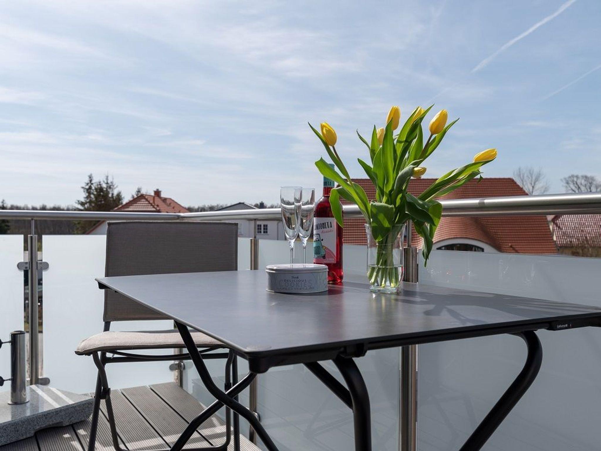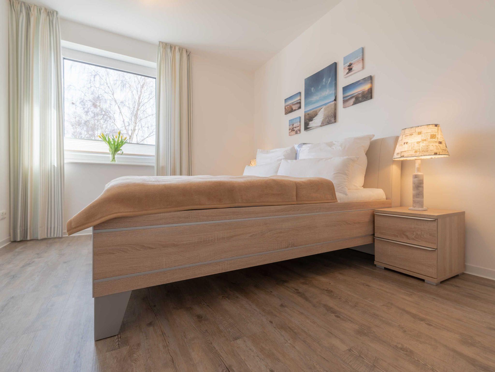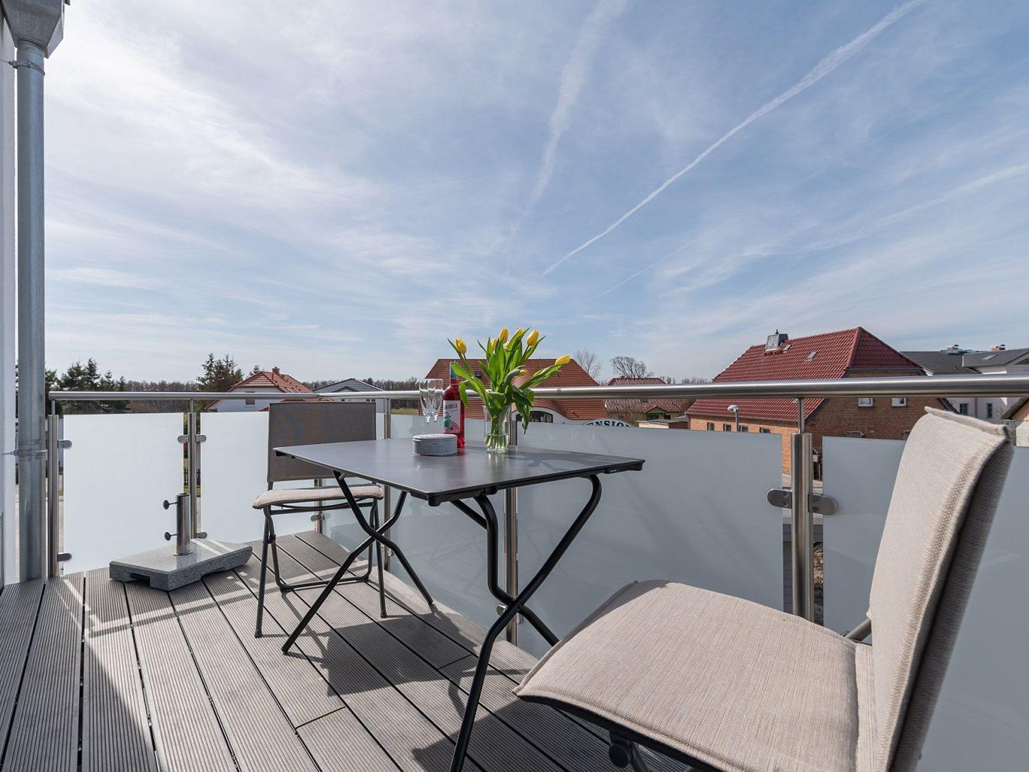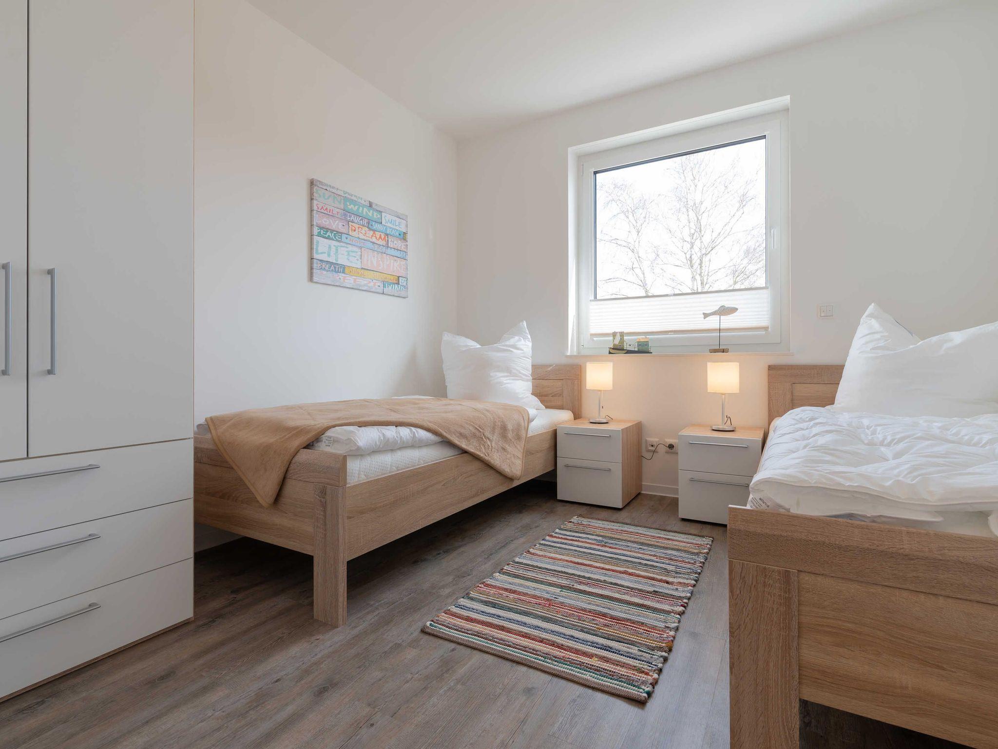 Das Apartment ist im maritimen Stil eingerichtet und verfügt über einen Wohn-/Essbereich mit integrierter Küchenzeile inkl. Kühlschrank, Ceranfeld, Backofen, Mikrowelle, Geschirrspüler und Dunstabzugshaube. Das helle Bad besticht mit ebenerdiger Dusche und eigenem Fenster. In den Schlafräumen sorgen ein Doppelbett (180 x 200 cm) und zwei Einzelbetten (je 100 x 200 cm) für süße Träume. Im Wohnbereich und im Schlafraum mit den getrennten Betten sind Flachbildfernseher installiert. Vom Wohnzimmer gelangen Sie auf den herrlichen Balkon mit Süd-West-Ausrichtung und gemütlicher Sitzaustattung. Ein kostenfreier KFZ-Stellplatz und ein eigener Fahrradabstellraum befinden sich auf dem Grundstück. Eine Fahrradvermietung und ein kleiner Kaufmannsladen sind vor Ort fußläufig zu erreichen. Der Strand von Börgerende ist nur 5 Gehminuten entfernt.