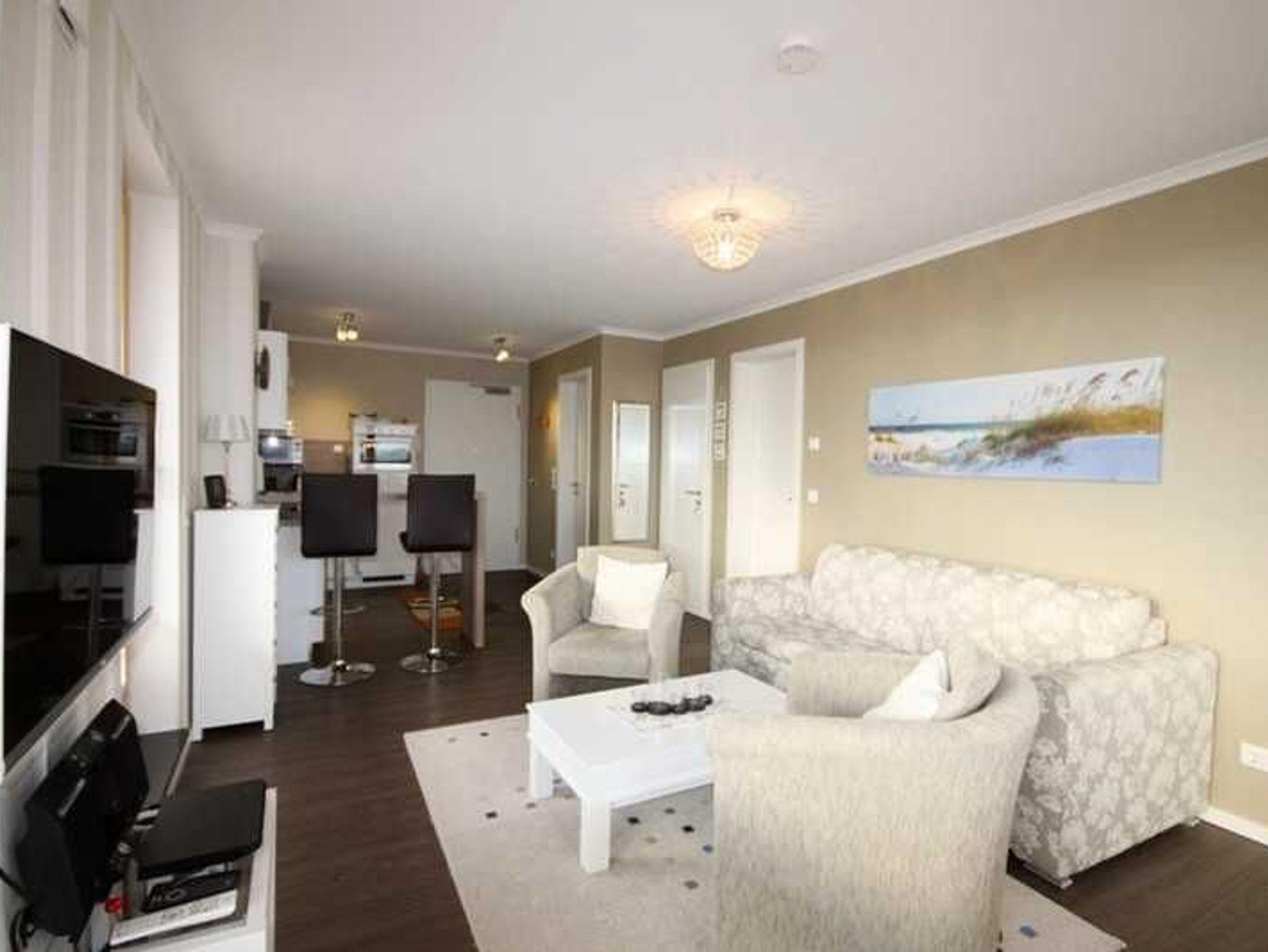 Ein besonderes Highlight sind die zwei Dachterrassen (50 qm Westausrichtung und 20 qm Ostausrichtung), die mit hochwertigen Terrassenmöbeln ausgestattet sind und beim Sonnenaufgang mit herrlichem Blick aufs Meer zum ausgiebigen Frühstück einladen. Bequem im Liegestuhl, im Schaukelstuhl oder im XXL Strandkorb können Sie beim traumhaften Sonnenuntergang die Seele baumeln lassen. Der lichtdurchflutete Wohnraum mit Flatscreen-TV (117 cm Bildschirmdiagonale) gemütlichem Funktionssofa (ausziehbar 180 x 200 cm) zwei bequeme Fernsehsessel und einem Esstisch mit bis zu sechs Stühlen bieten Platz für gemütliche Spielabende.