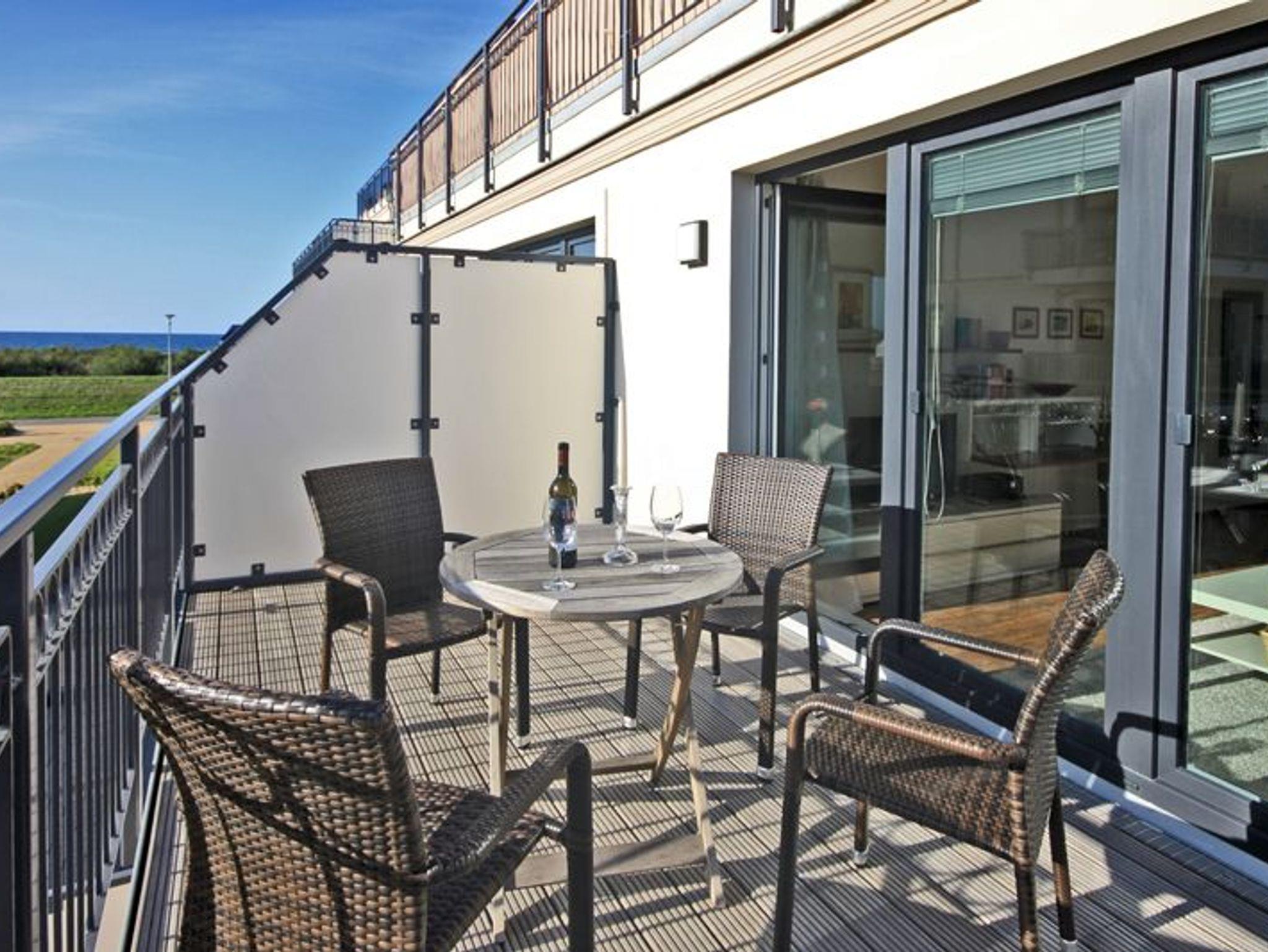 Strandnahe 2-Rauwohnung für max. 3 Personen und einem Kleinkind, Balkon mit Strandkorb und seitlichem Meerblick im 1.OG.