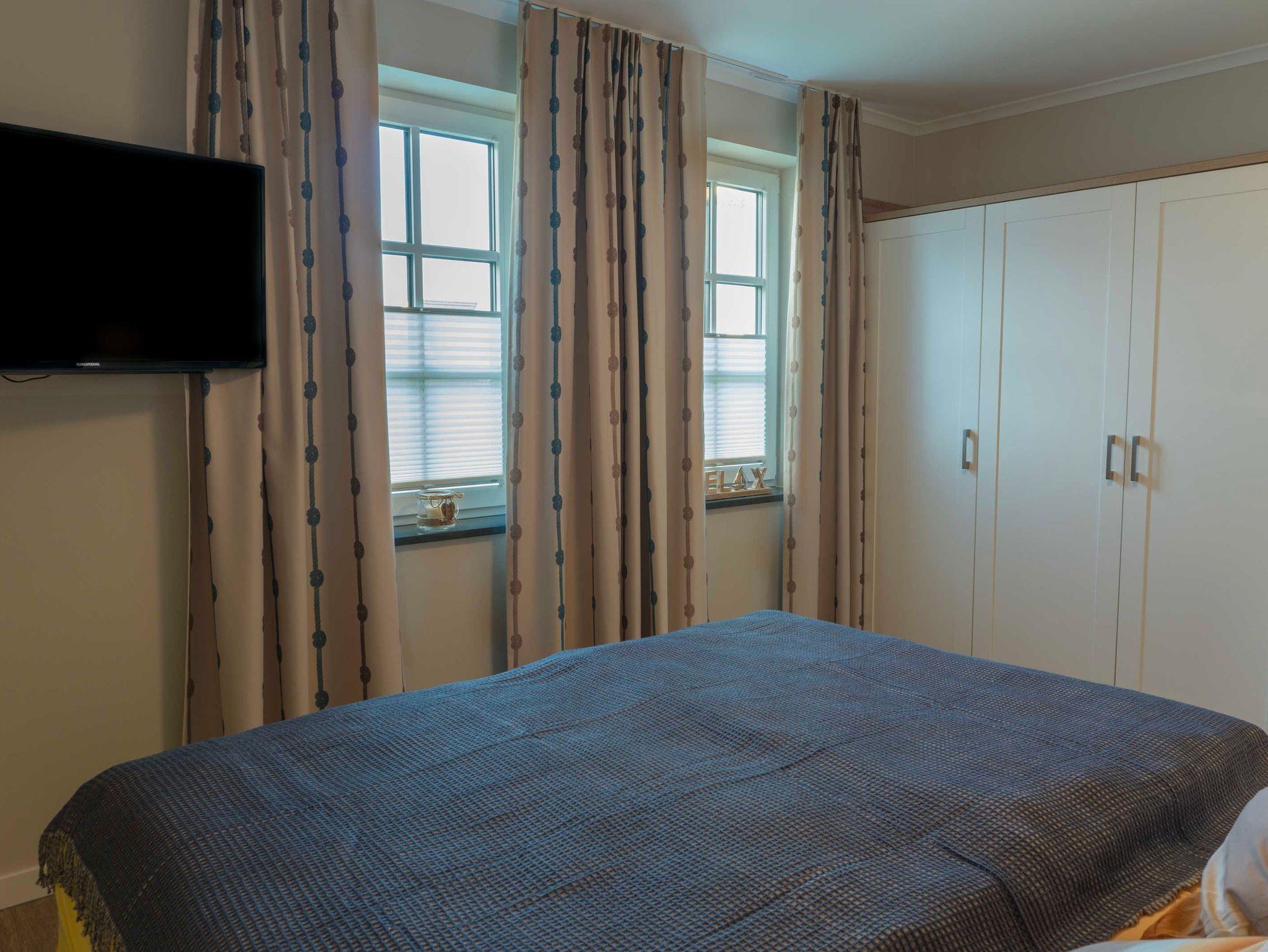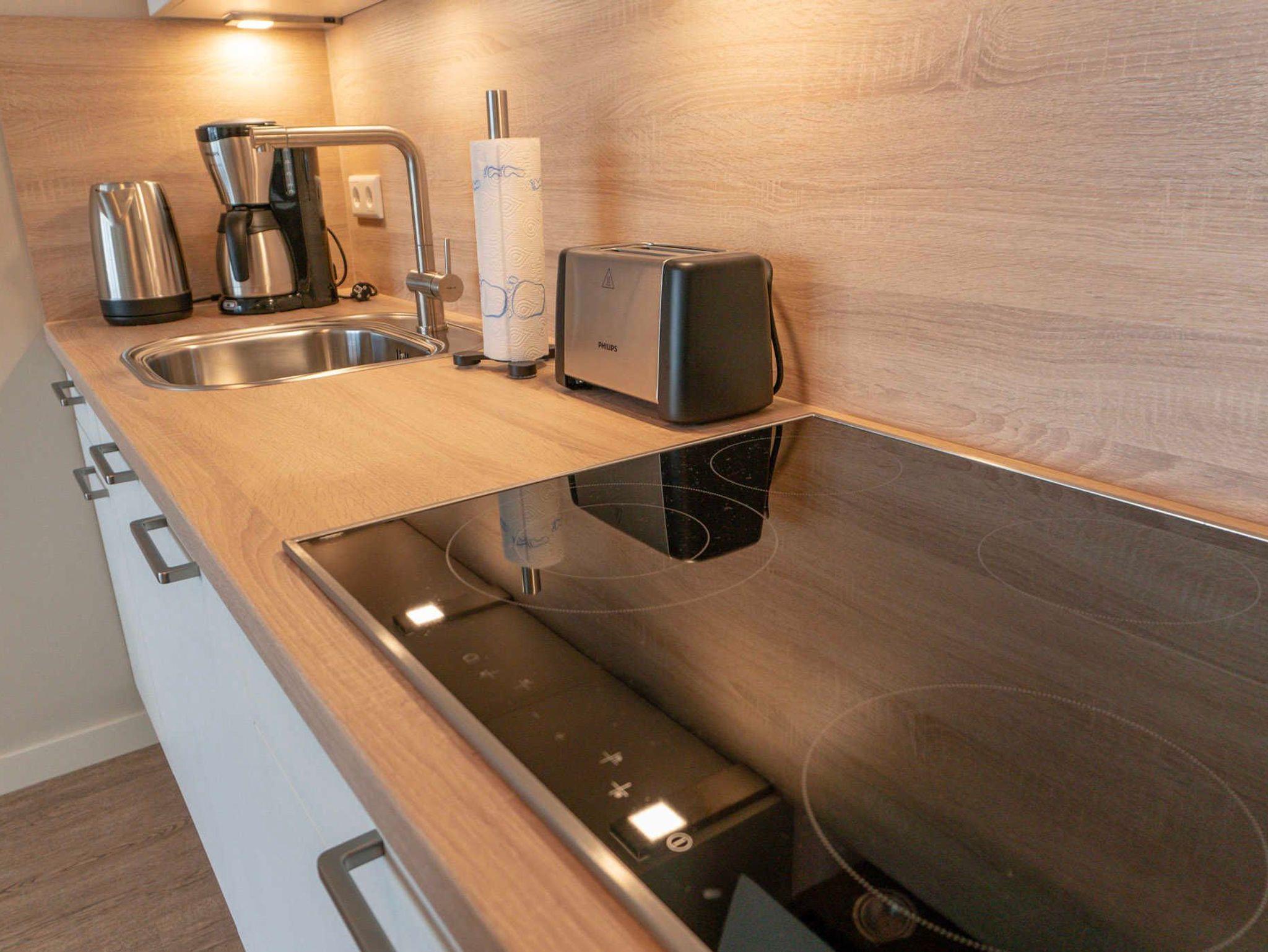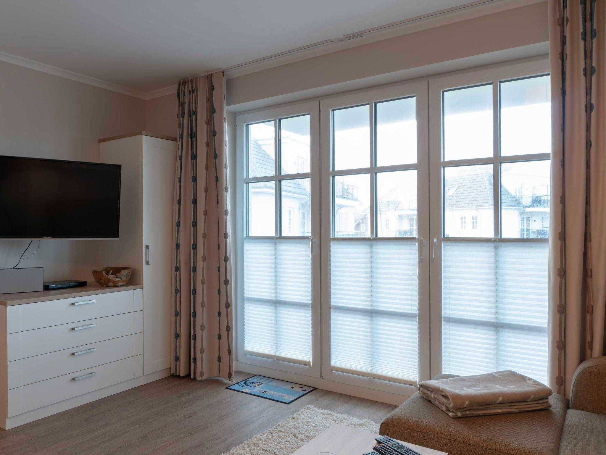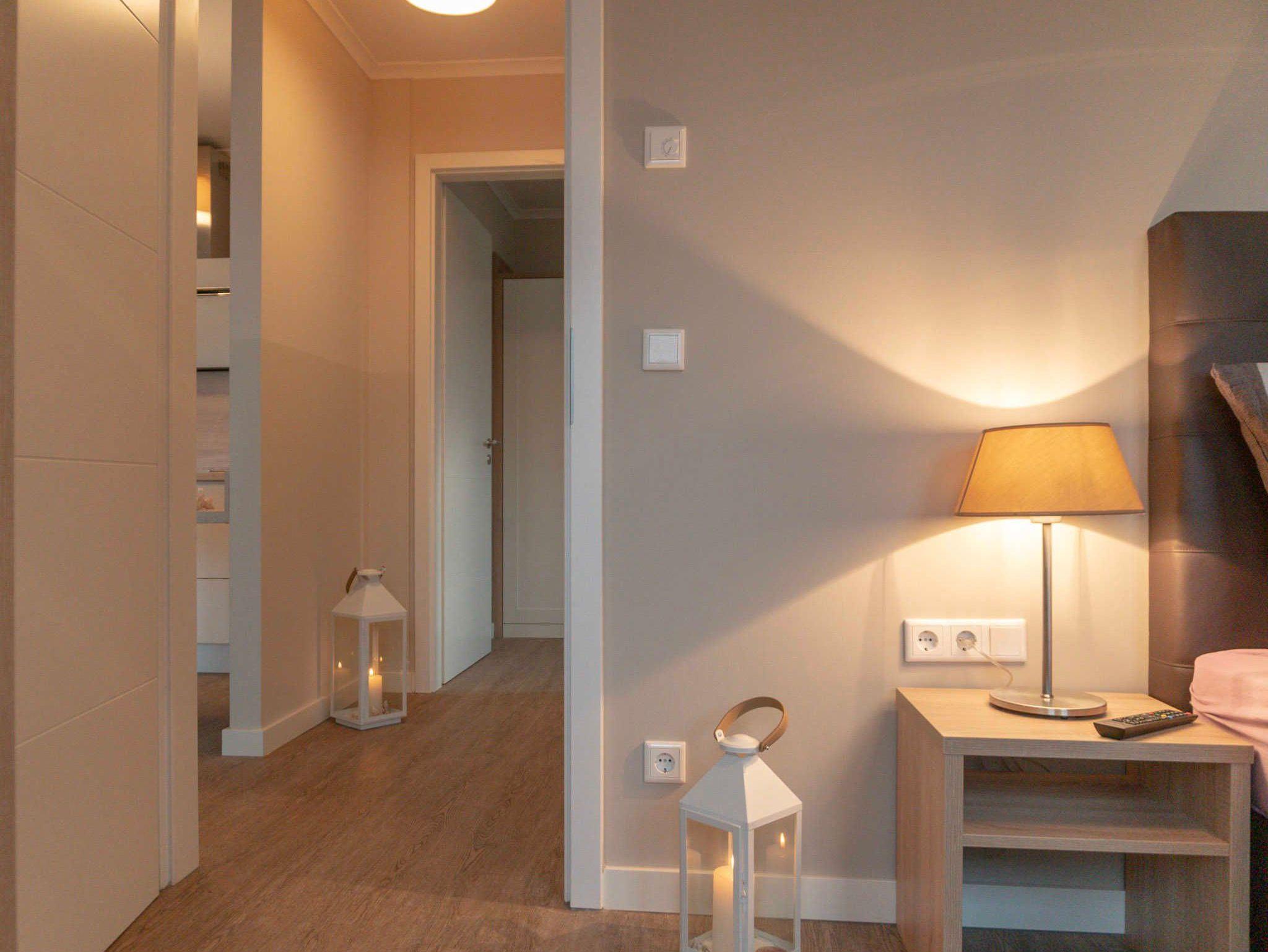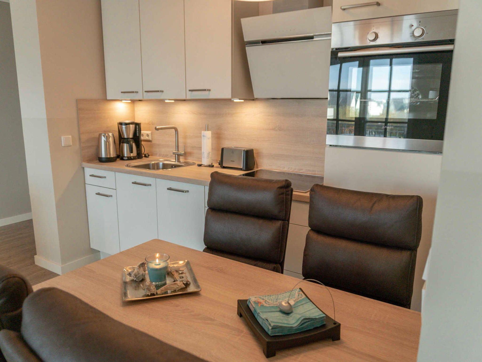 Der Wohnbereich ist modern gestaltet und verfügt über eine gemütliche Couch, einen Esstisch mit hochwertigen Stühlen, einen LED-TV, eine Musikanlage, ein DVD-Player etc. Neben dem Wohnbereich empfängt Sie die Ferienwohnung mit zwei Schlafräumen. Im größeren Schlafzimmer erwarten Sie ein komfortables Box Springbett (1,80 m x 2,00 m / Einzelmatratzen), ein weiterer LED-TV und ein geräumiger Kleiderschrank. Das kleine Schlafzimmer ist ebenfalls mit einem hochwertigen Box Springbett (1,40 m x 2,00 m), einem TV-Gerät und einem Kleiderschrank ausgestattet. Beide Schlafzimmer sind mit Verdunklungsplissees ausgerüstet. Die hochwertige Küche verfügt über einen Backofen, einen Geschirrspüler, eine Senseo-Kaffeepadmaschine, ein 4-Platten-Glaskeramik-Kochfeld und einen Kühlschrank inklusive Gefrierfach. Das Badezimmer ist wunderschön gestaltet mit einer bodengleichen Dusche, einem großen Waschtisch und hochwertigen Fliesen. Der Balkon mit Süd-West-Lage mit entsprechenden Möbeln wartet auf Ihren Besuch!