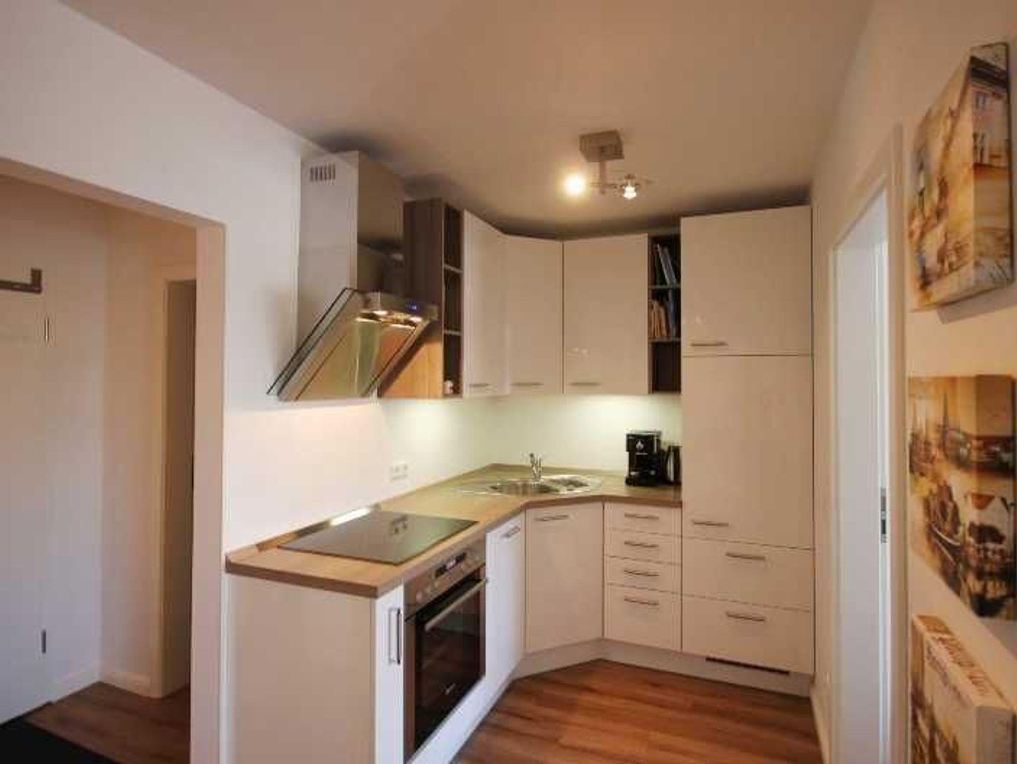 Der Wohnbereich empfängt Sie mit einer großzügigen Eckcouch mit perfektem Blick auf den hyggeligen Kamin. Die Fußbodenheizung in der Wohnung sorgt zudem für wohlige Wärme in allen Räumen. Ein Flatscreen-TV und Internetradio mit Bluetooth-Funktion und AUX-Anschluss runden die technische Ausstattung der Wohnung ab. Ein Esstisch mit 4 Stühlen lädt zu gemeinsamen Mahlzeiten ein. Die offene Einbauküche ist voll ausgestattet mit Geschirrspüler, Kühlschrank mit Gefrierfach, Herd mit Induktionskochfeld und Backofen, Kaffeemaschine, Espressomaschine, Wasserkocher und Toaster. Das Schlafzimmer verfügt über ein Doppelbett, einen Kleiderschrank und einen weiteren Flatscreen-TV. Das Duschbad besticht mit bodengleicher Eckdusche, Hand- und Regenduschkopf sowie Handtuchtrockner. Eine Waschmaschine und ein Trockner im Duschbad stehen frei zur Verfügung. Über den Wohnbereich gelangen Sie auf die windgeschützte Süd-West-Terrasse mit entsprechenenden Terrassenmöbeln.