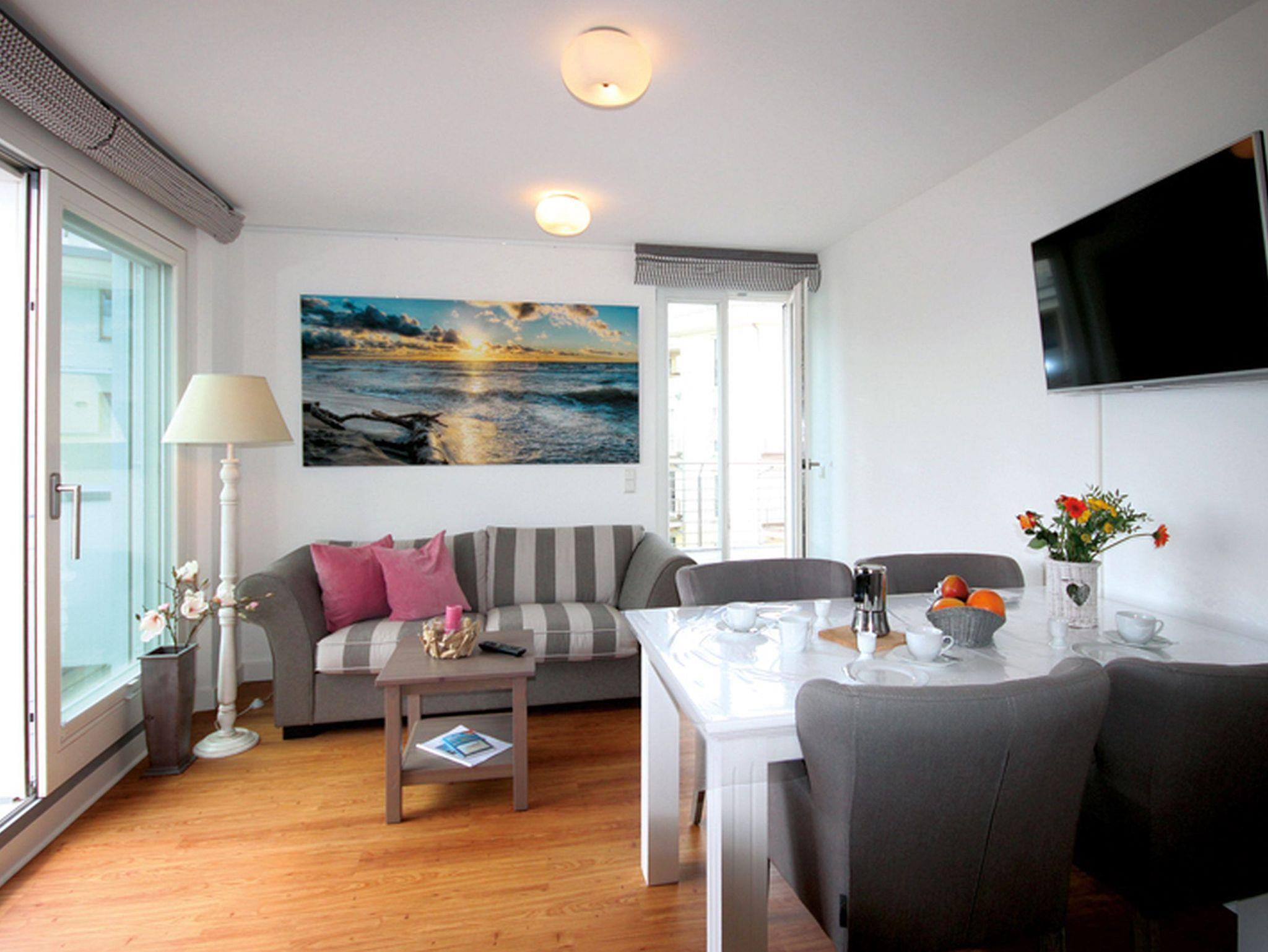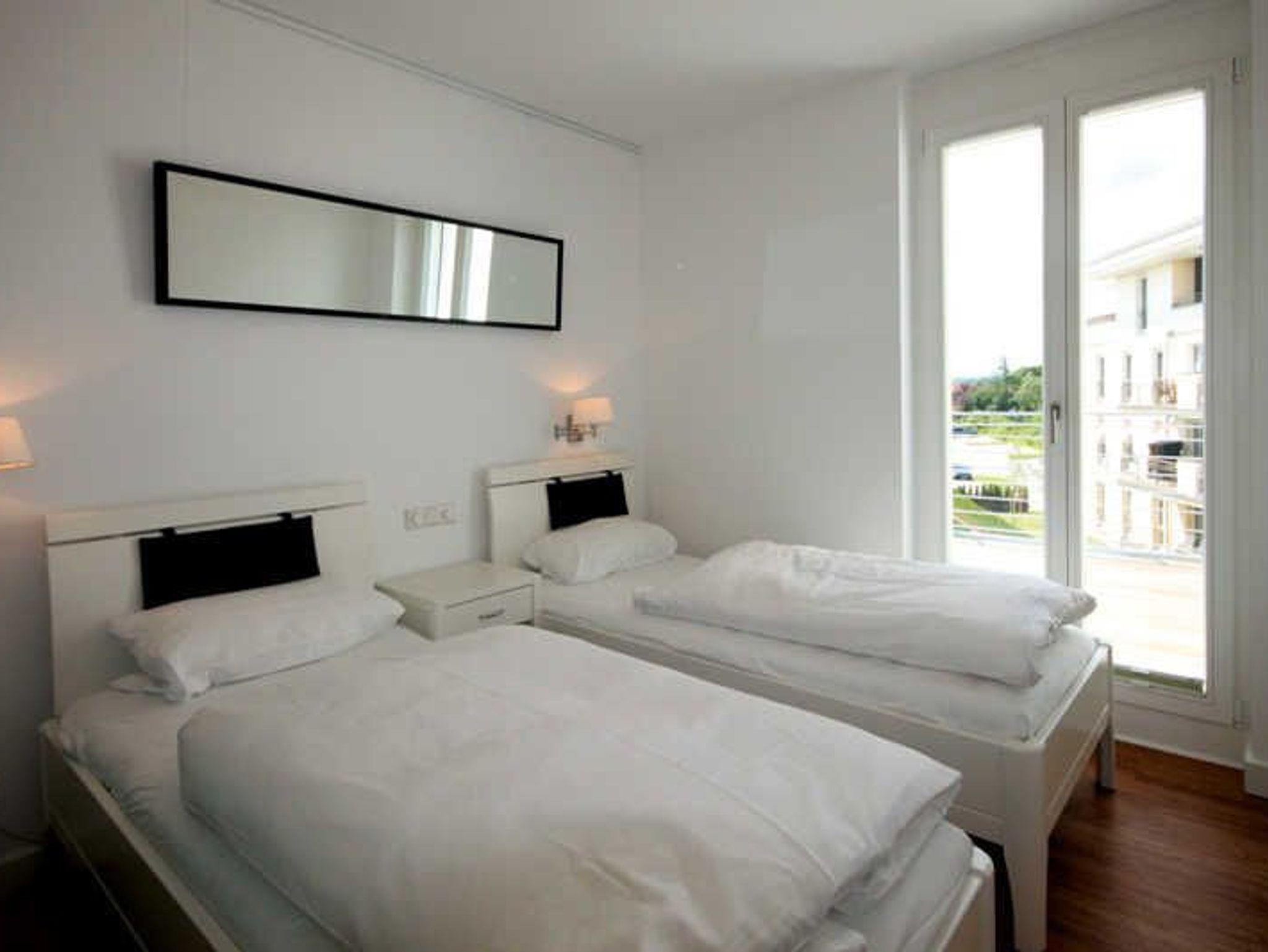 Strandnahe und großzügige Drei-Raumwohnung für max. vier Personen, Sauna und Balkon im 2. OG.