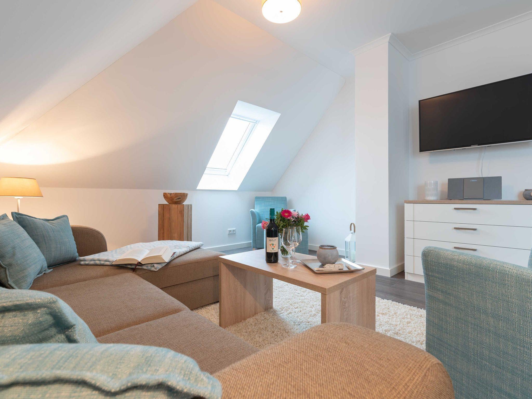 Die große Dachgeschosswohnung mit Meerblick und zwei Balkonen ist das perfekte Urlaubsdomizil für Gruppen mit bis zu vier Erwachsenen und zwei Kindern (bis 12 Jahre). Ob mit Freunden oder der Familie ? in diesem exklusiv und modern eingerichteten Drei-Zimmer-Apartment ist Entspannung und Erholung vorprogrammiert.