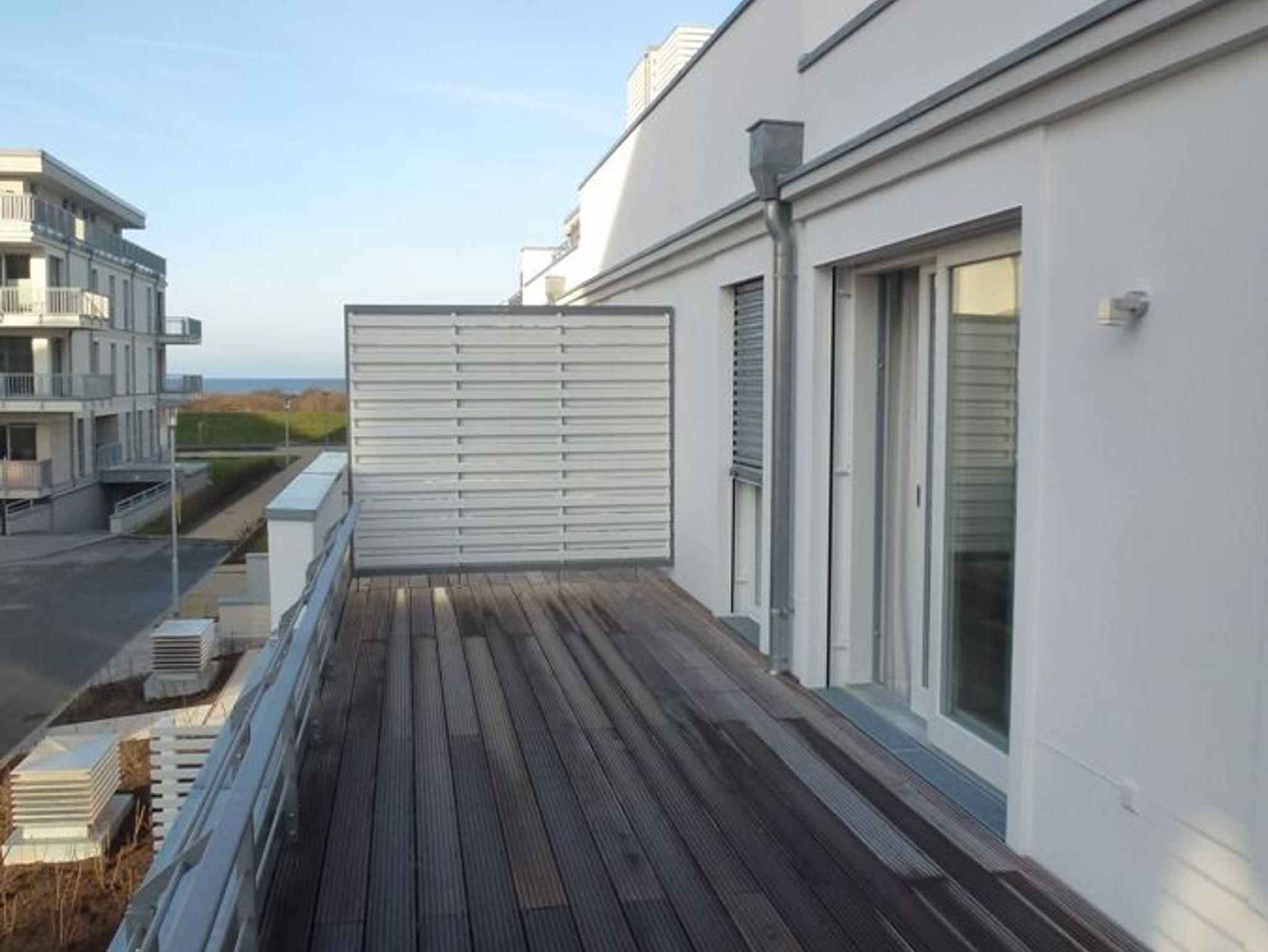 Auf der großen, L-förmigen Couch im Wohnbereich lässt es sich wunderbar relaxen. Oder ausgezogen, als Bett verwendet werden. Ein TV-Gerät, ein Blu-ray-Player sowie eine kleine Stereoanlage stehen für Unterhaltung zur Verfügung. Im offenen Koch- und Essbereich befinden sich eine komplett eingerichtete Küche mit schönem Holztisch und sechs Stühlen. Sie finden dort Mikrowelle, Backofen, Cerankochfeld, Geschirrspüler und Kühlschrank, inklusive Gefrierfach. Beide Schlafzimmer sind mit einem Doppelbett und einem zweitürigen Kleiderschrank ausgestattet. In einem Schlafraum finden Sie noch ein TV-Gerät. Den Balkon, in Westausrichtung erreichen Sie sowohl aus dem Wohn- als auch Schlafbereich. Hier können Sie von der Balkonbrüstung aus, den weiten Blick in Richtung Ostsee genießen. Beide Duschbäder bieten bodengleiche Duschen und Waschtisch mit Spiegel. Die Sauna für eine Schwitzkur, ist vom Wohnbereich aus begehbar. Ein kostenfreier PKW- Stellplatz für Ihre Wohnung befindet sich in der Tiefgarage. Bitte beachten Sie die Durchfahrtshöhe von max. 1,90 m. Bei Überschreitung der maximalen Durchfahrtshöhe, besteht die Möglichkeit auf einen kostenpflichtigen Parkplatz in unmittelbarer Nähe auszuweichen. Der im Gebäude installierte Aufzug erleichtert den Transport der mitgebrachten Koffer. Und in der Tiefgarage befindet sich auch der abschließbare Fahrradraum. Hier noch einige Hinweise: Das kostenfreie WLAN in der Unterkunft ist ausschließlich für die Verwendung von Social Media und den Austausch von Bildern mit Familie und Freunden gedacht. Die Nutzung zum Streamen von Filmen ist nicht vorgesehen. Diese Wohnung ist eine Nichtraucherwohnung. Ein Hund kann nur auf Anfrage und kostenpflichtig zusätzlich gebucht werden. (10,00 Euro/ÜN und einmalig 20,00 Euro Haustierendreinigung). Wäscheset, Kinderreisebett und Kinderhochstuhl können kostenpflichtig zugebucht werden. Eine Waschmaschine und ein Trockner stehen im Waschraum im Erdgeschoss des Objekts zur Verfügung (gegen Gebühr / 0,50 Euro Münzen). Sichern Sie sich zusätzlich den Anspruch auf einen der begehrten Strandkörbe nur ein paar Meter entfernt von den rauschenden Wellen der Ostsee (Anfang Mai - Ende August) und buchen Sie jetzt zu besonderen Konditionen (12,00 Euro pro Tag oder 75,00 Euro pro Woche.)