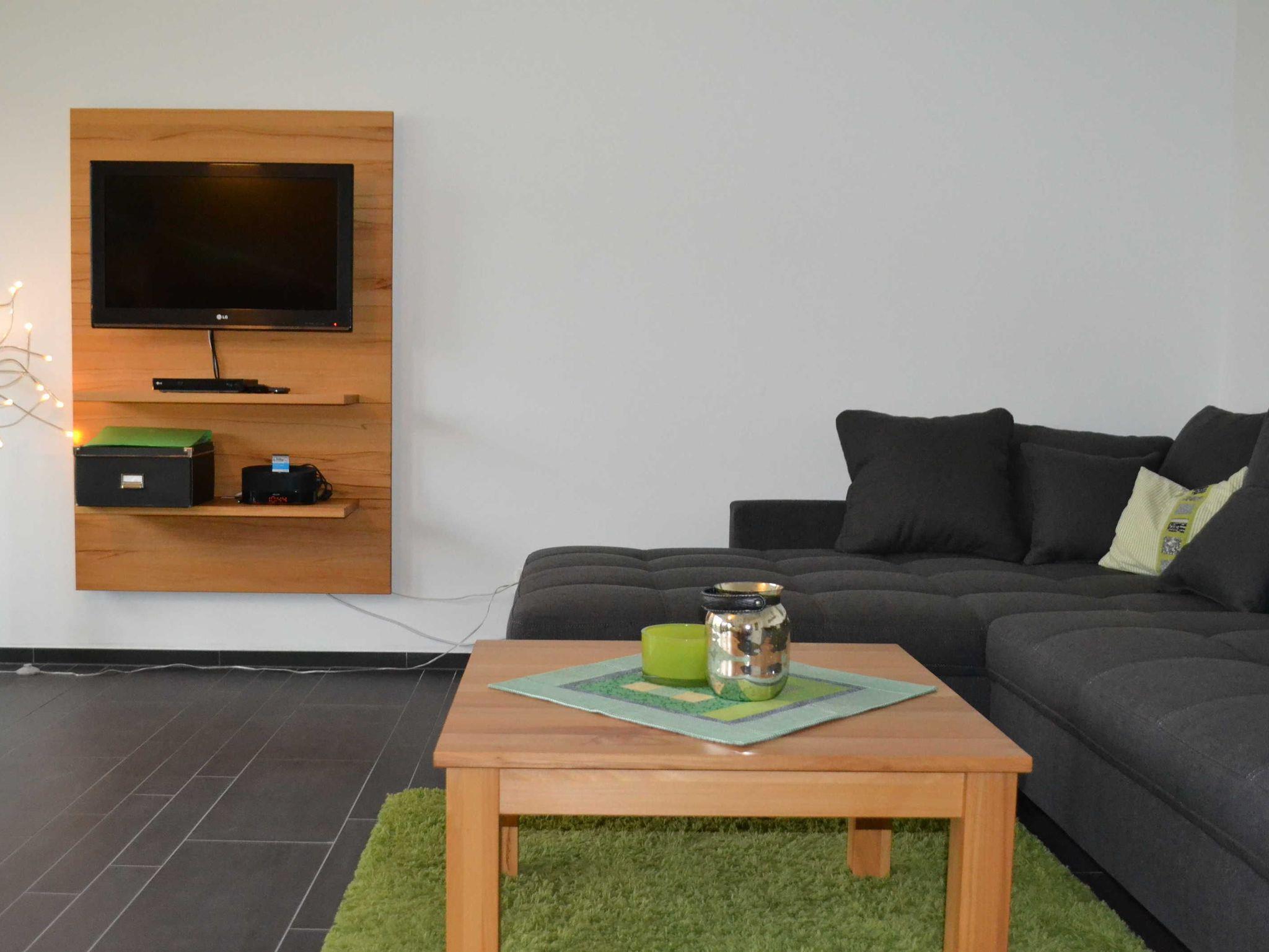 Die Ferienwohnung empfängt Sie mit einem großen Wohnzimmer mit Koch- und Essbereich. Für beste Unterhaltung sorgen ein LCD-Satelliten-TV mit Radio, ein DVD-Player und ein Lautsprecher für Mobilgeräte (Smartphones, MP3 Player) mit Dock für iPhone und iPad. Zusätzlich lädt der große, hölzerne Esstisch neben gemeinsamen Mahlzeiten zu geselligen Spieleabenden.[nbsp] Das große Schlafzimmer ist mit einem Kleiderschrank und einem komfortablen Doppelbett eingerichtet. Es bietet zusätzlich Platz für ein Kinderreisebett. (Aufbettung auf Wunsch durch die Hausbetreuung). Die bequeme Schlafcouch im Wohnbereich birgt genügend Platz für zwei weitere Personen. Bodentiefe Fenster schaffen einen Ambiente zum Wohlfühlen. In der kompletten Wohnung ist Fußbodenheizung installiert und von jedem Zimmer aus gelangen Sie auf die Terrasse. Die warme, hölzerne Einbauküche ist voll ausgestattet mit Cerankochfeld, Kühlschrank inklusive Gefrierfach, Geschirrspüler, Kombi-Mikrowelle mit Grill und Heißluft, Wasserkocher, Kaffeemaschine, Eierkocher, Orangenpresse und Toaster. Das Bad besticht mit einer ebenerdigen Dusche, einem Föhn, einer Personenwaage und diversen Abstellmöglichkeiten.
