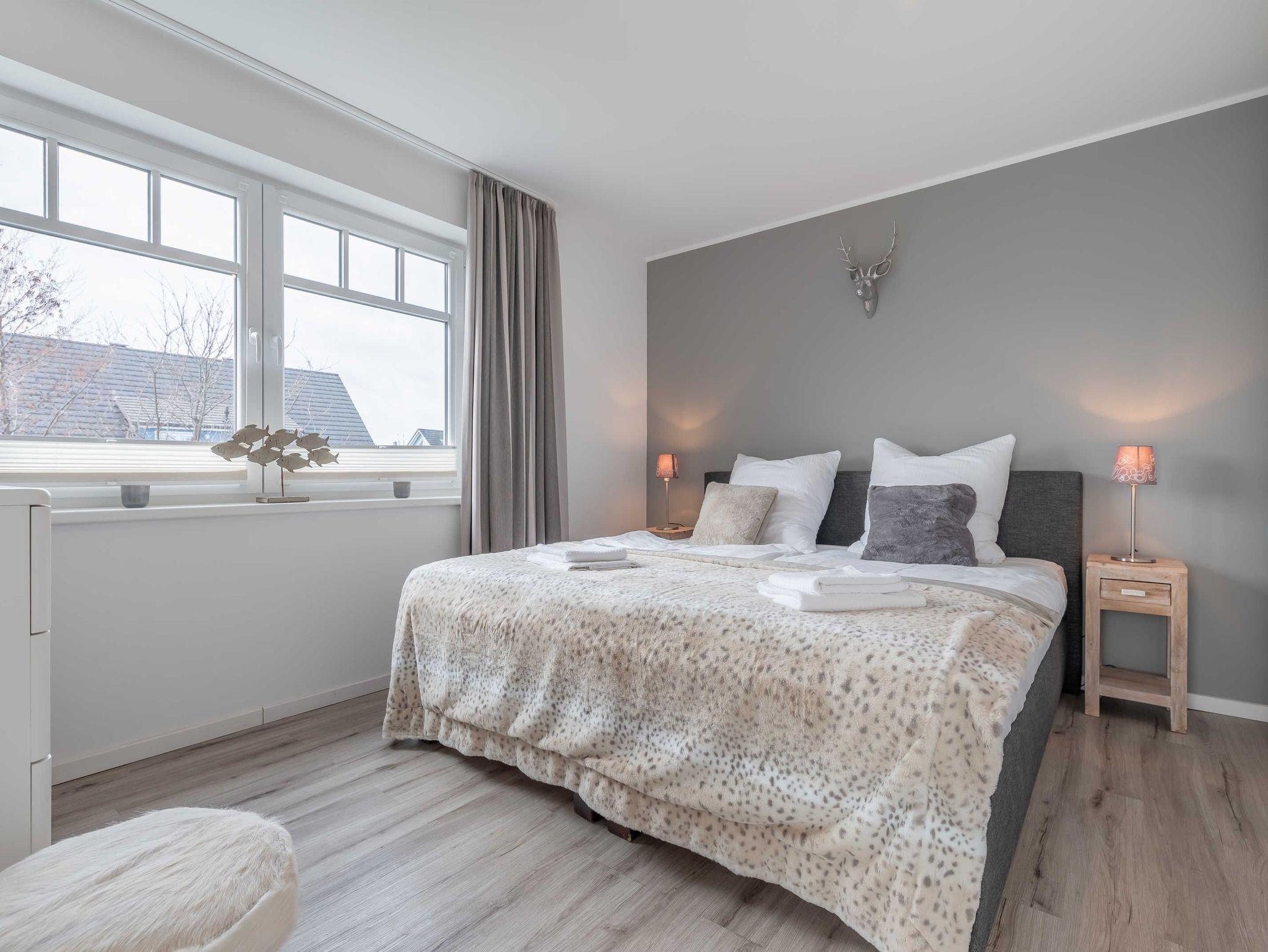 Die moderne und großzügig eingerichtete sonnige Ferienwohnung befindet sich in der ersten Etage der Villa Strandnah, nur 120 m vom Strand entfernt. Im Wohnraum befinden sich eine hochwertige Couchgarnitur mit Schlaffunktion zum Relaxen. Zur Unterhaltung stehen Ihnen ein großer Flachbild TV, eine Hifi-Anlage bluetoothfähig und eine Spielesammlung zur Verfügung. Ein gemütlicher Relaxsessel mit Aussicht wird Ihr Lieblingsplatz. Der offene Essbereich verfügt über einen großen Tisch mit vier Stühlen. Die separate großzügige Küche ist mit einer modernen Einbauküche mit Geschirrspüler, Kühlschrank mit Gefrierfach, Backofen mit Cerankochfeld und Mikrowelle ausgestattet. Neben Kaffemaschine, Wasserkocher und Toaster ist auch eine Tchibo-Cafissimo Kapselmaschine vorhanden. Das modern eingerichtete Schlafzimmer mit dem großzügigen Boxspringbett (2,00 m x 1,80 m) verfügt ebenso über einen großen Flachbild TV und einen geräumigen Schrank mit Kommode. Das helle Duschbad mit Fußbodenheizung und zwei Fenstern hat eine bodengleiche Dusche, einen großen Waschtisch mit Spiegel und Handtuchwärmer. Es gibt eine Abstellkammer für Koffer und Taschen. Der große Süd-West Balkon lädt zum Verweilen ein.