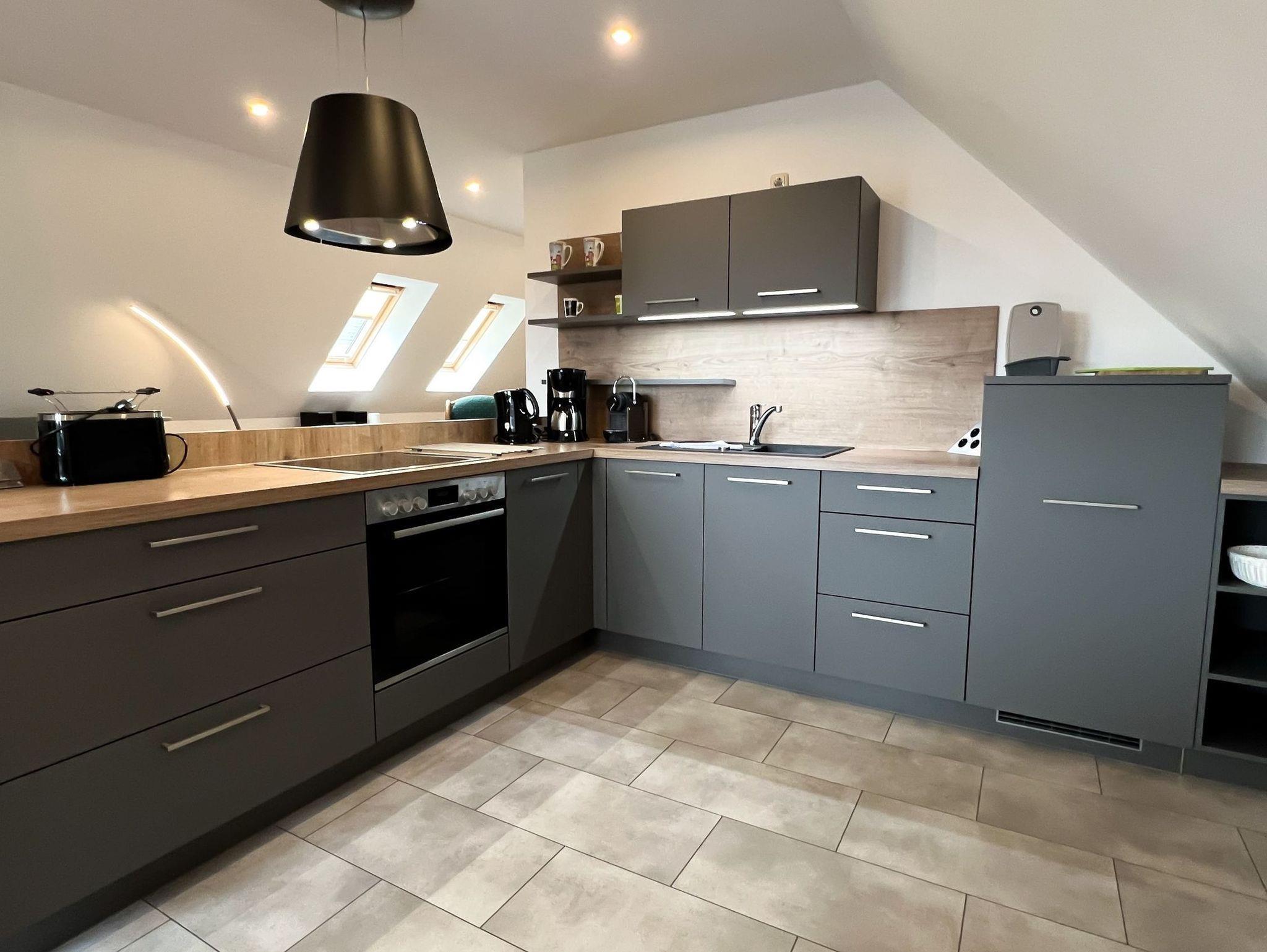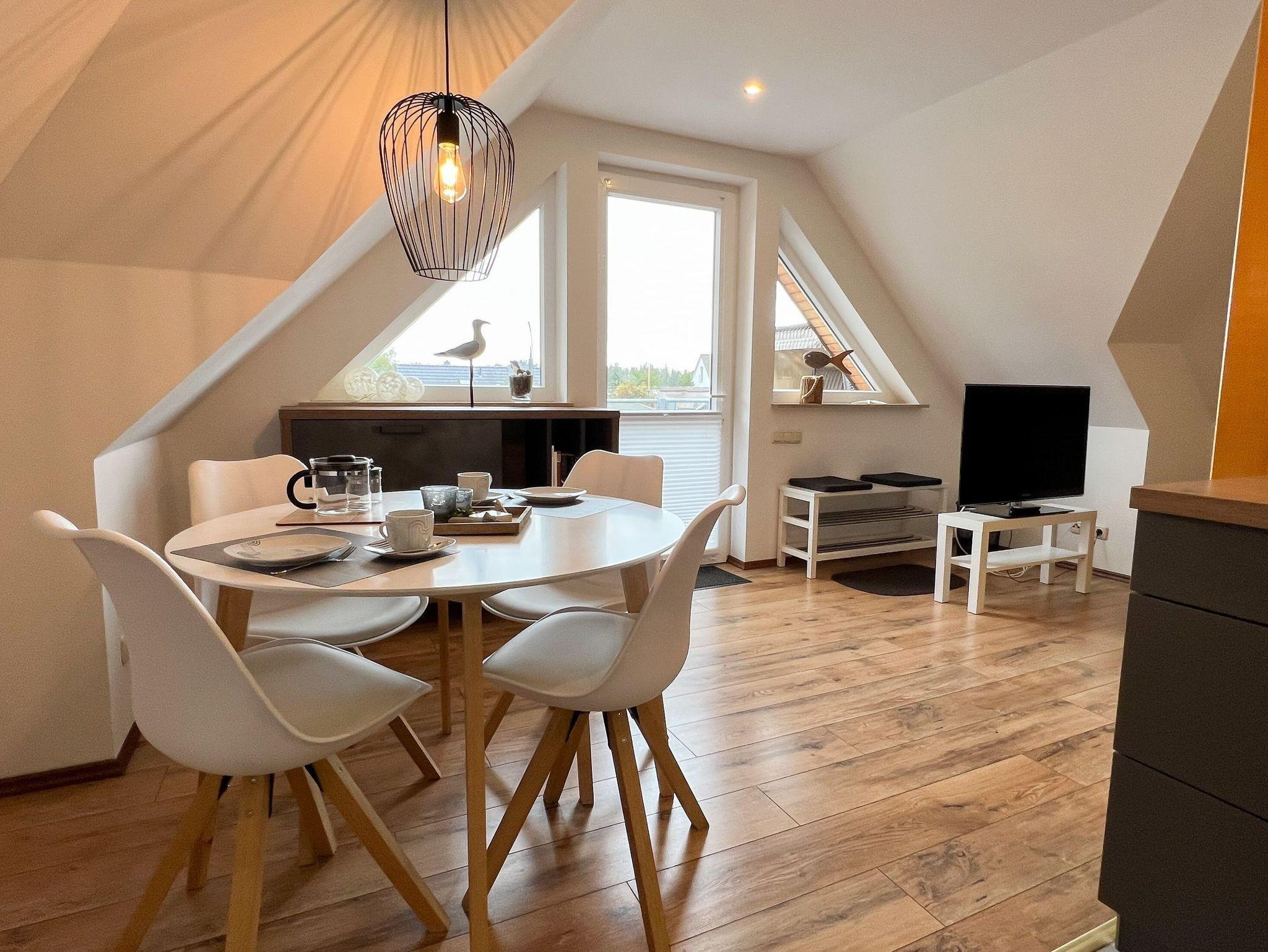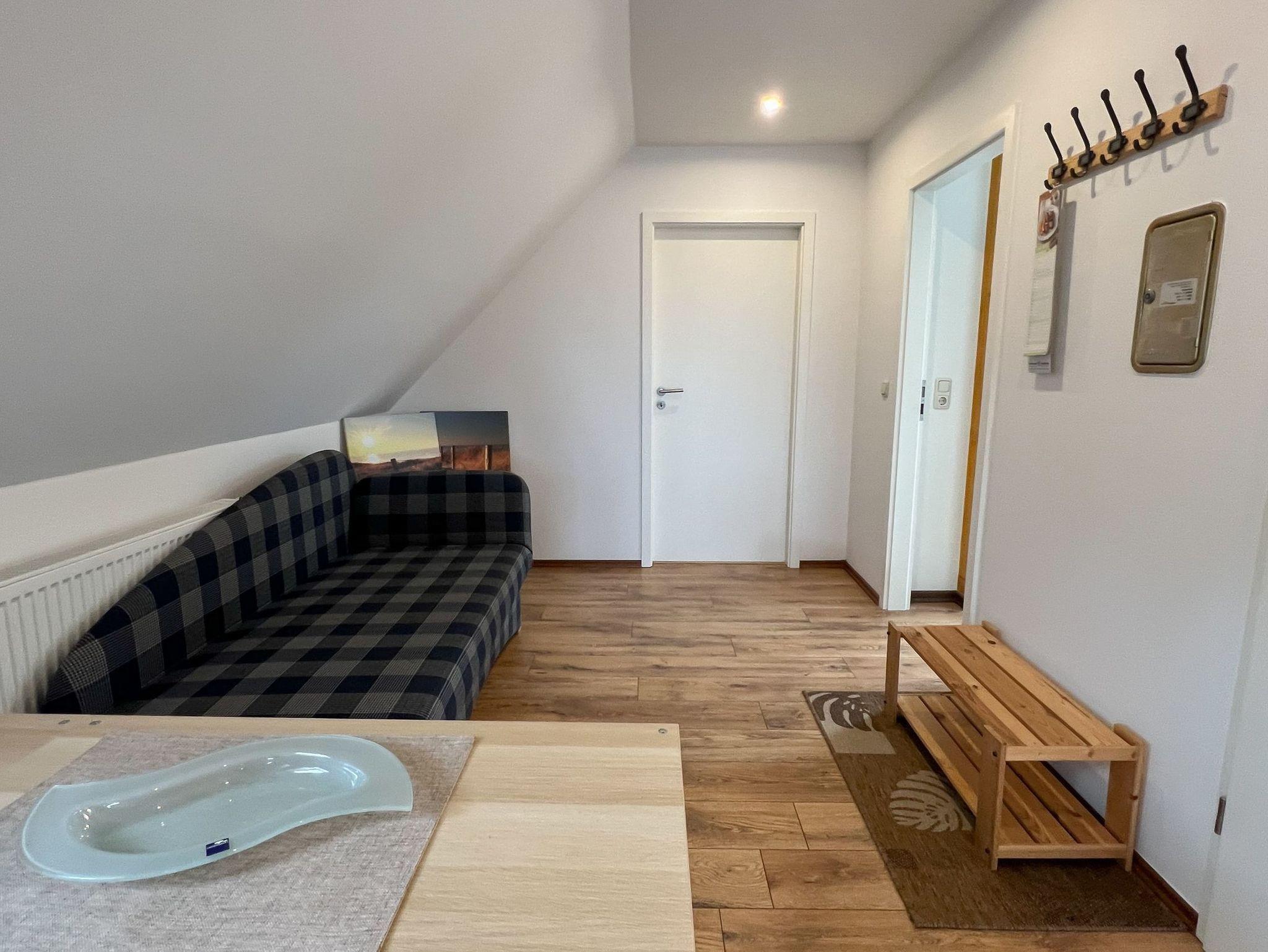 Die Ferienwohnung Sandkorn wurde 2020 komplett renoviert und bietet in Bezug auf Ausstattung und Komfort eine vergleichbare Qualität wie ihr großer Bruder Findling im Erdgeschoss. Sandkorn befindet sich im Dachgeschoss und ist über eine moderne Außentreppe erreichbar. Bei Ankunft gelangen Sie zunächst auf eine großzügige Dachterrasse, die mit einem gemütlichen Strandkorb zum Sonnenbaden und Verweilen einlädt. Von hier aus haben Sie sogar eine Aussicht auf den Conventer See in der Ferne.