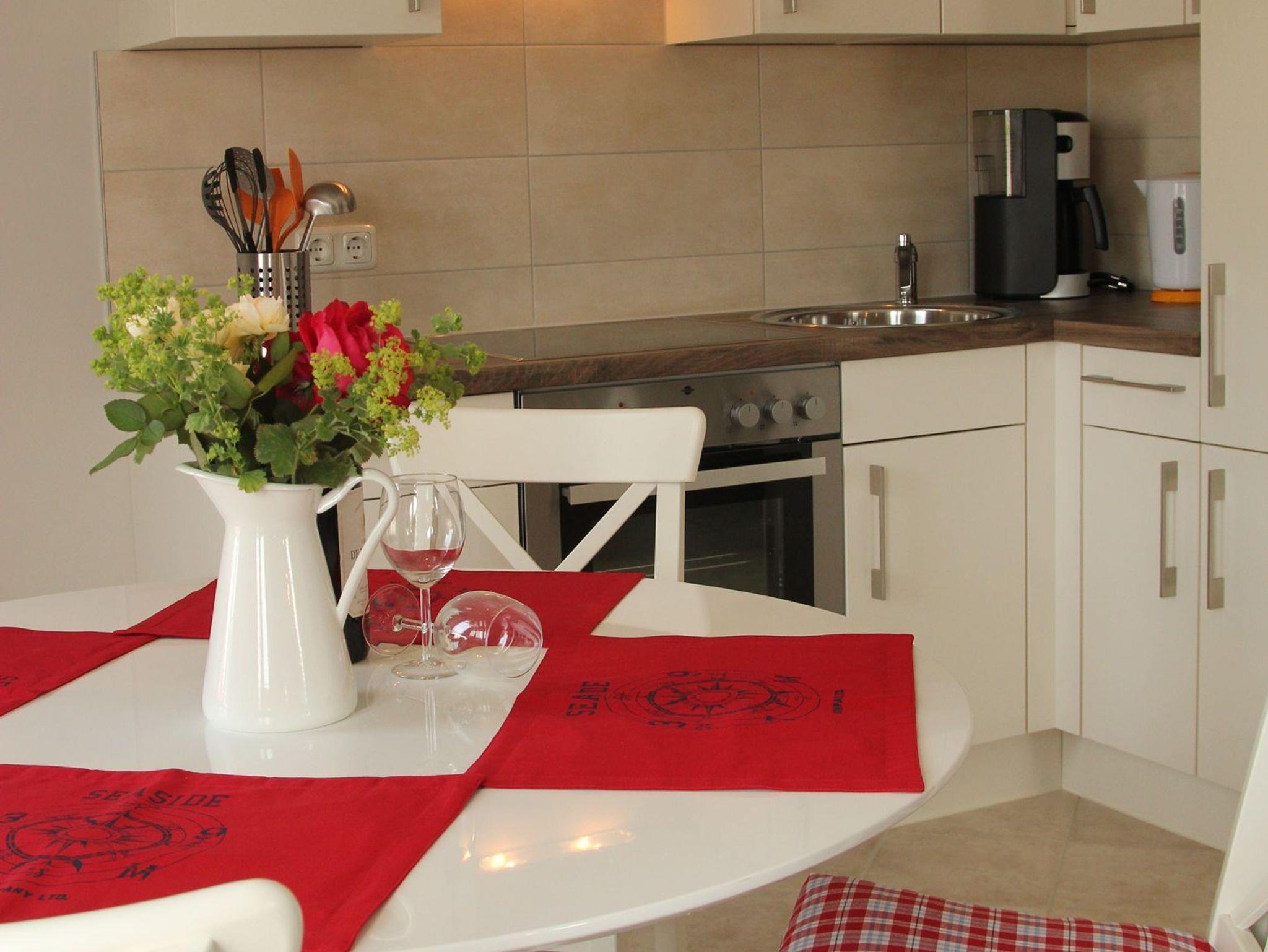 Bei der Einrichtung wurde viel Wert darauf gelegt, Komfort, Gemütlichkeit und nordischen Charme miteinander zu verbinden. Die Fewo bietet alles, was man für einen angenehmen Aufenthalt braucht. Drei liebevoll eingerichtete Zimmer warten auf Ihren Besuch. Davon zwei Schlafzimmer (je mit Doppelbett), ein Wohnzimmer mit offener Küche und ein Bad mit Dusche. Machen Sie es sich in der gemütlichen Kuschelecke mit einem guten Buch bequem oder lassen Sie einfach die Seele baumeln. In der kalten Jahreszeit sorgt ein gemütlicher Kaminofen für zusätzliche Behaglichkeit. Auf der Terrasse können Sie den Tag bei einem Glas Wein in der Abendsonne ausklingen lassen und dabei die herrliche Seeluft genießen. Lassen Sie sich ein leckeres Fischbrötchen schmecken oder bereiten Sie sich fangfrischen Fisch selbst zu.