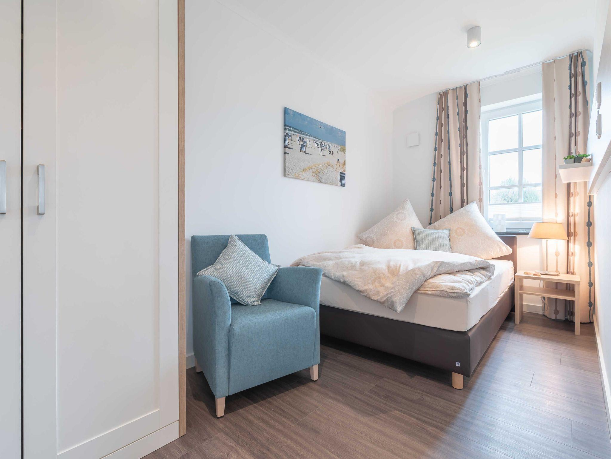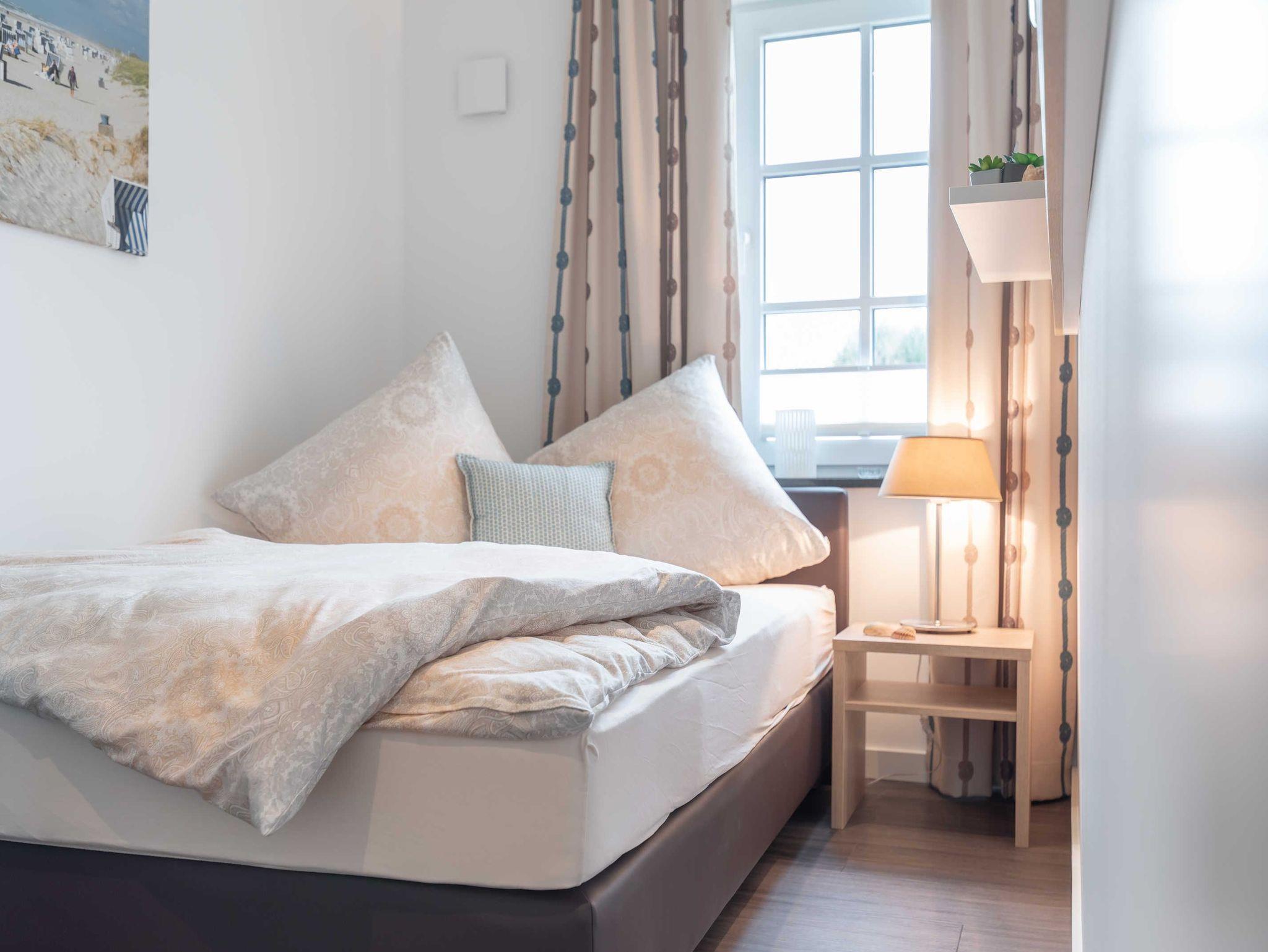 Im großen Schlafzimmer erwarten Sie ein Boxspringbett 1,80 x 2,00 m (zwei einzelne Matratzen), ein großer Kleiderschrank mit Safe, zwei Nachttische und ein Flachbild-TV. Das kleinere Schlafzimmer verfügt über ein Boxspringbett 1,40 x 2,00 m, einen Kleiderschrank, einen Nachttisch sowie Wohlfühldeko.