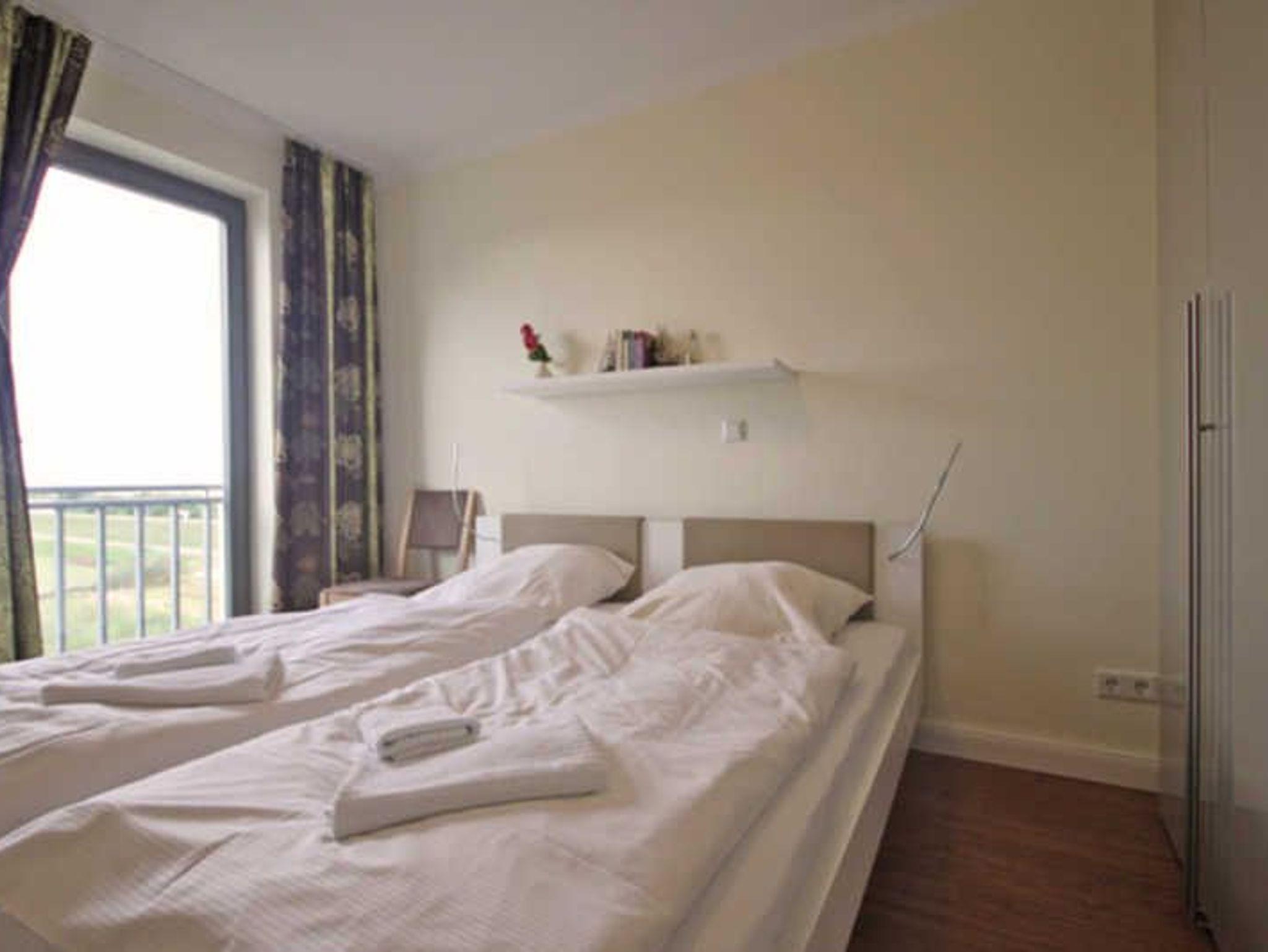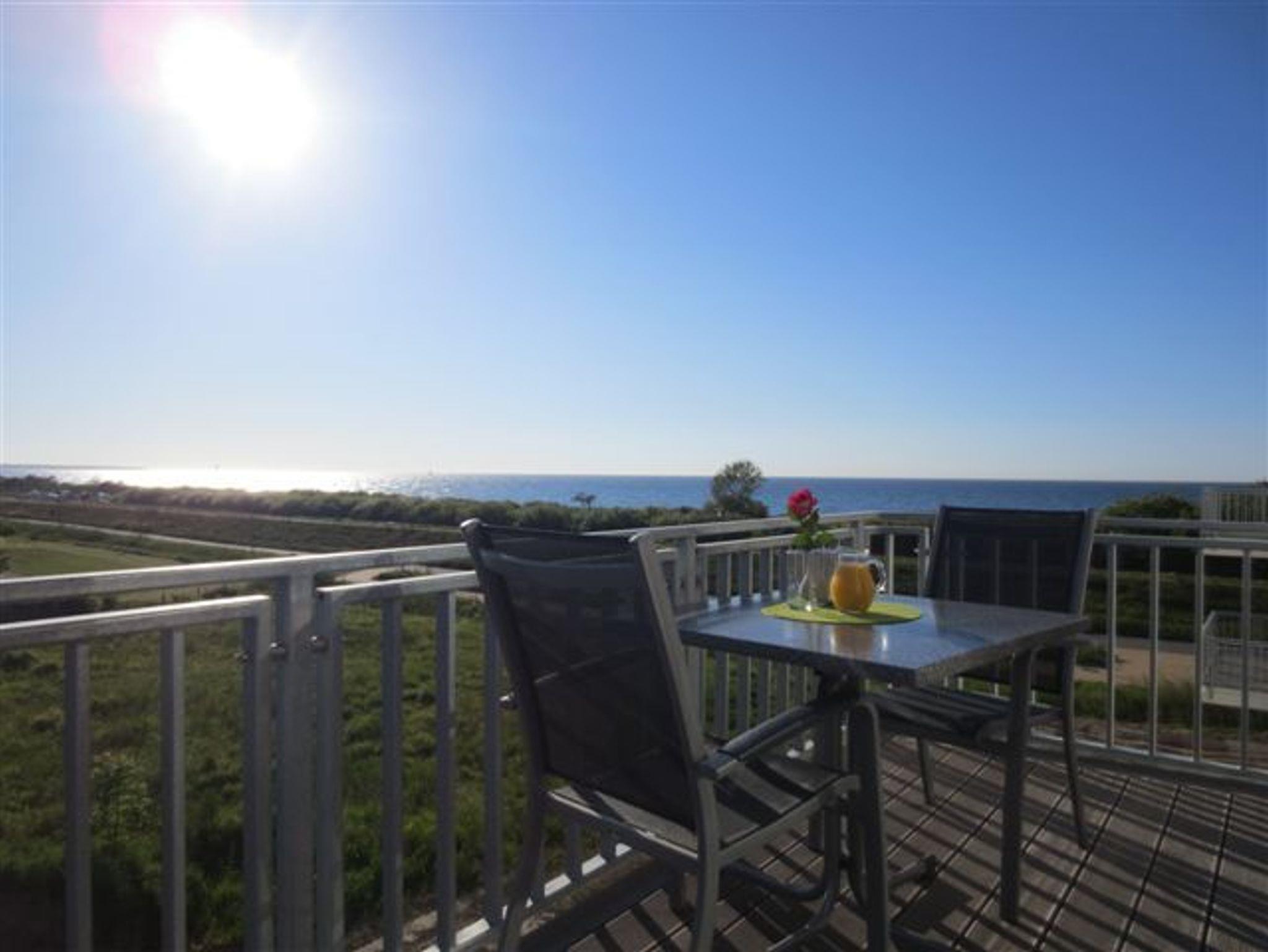 Strandnahe, charmante 3-Raumwohnung für max. 4 Erwachsene und 1 Kleinkind, 2 Schlafzimmer, Gäste- WC und Balkon mit Meerblick im 2. OG.