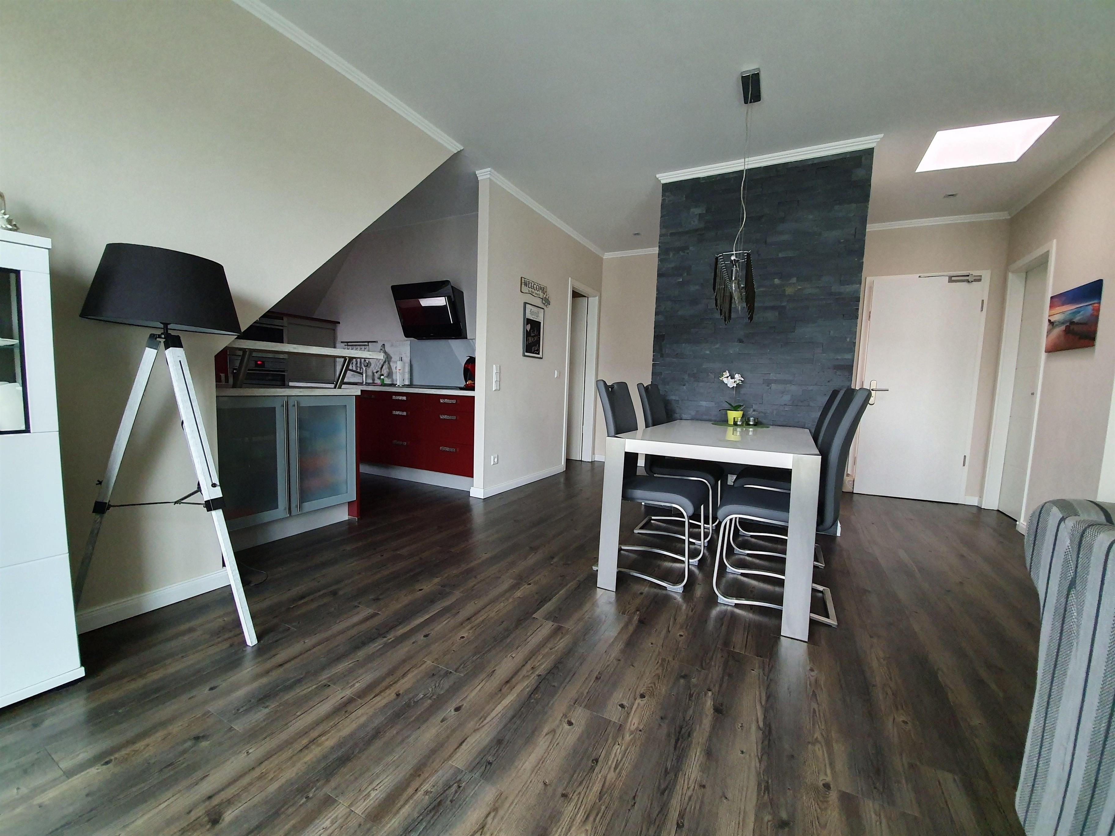 Auf etwa 80 qm finden 4 Erwachsene und ein Kleinkind bis 4 Jahre reichlich Platz. Alle Räume sind geschmackvoll und großzügig gestaltet, so dass Sie auch in der Ferienwohnung selbst eine schöne Zeit verbringen können.