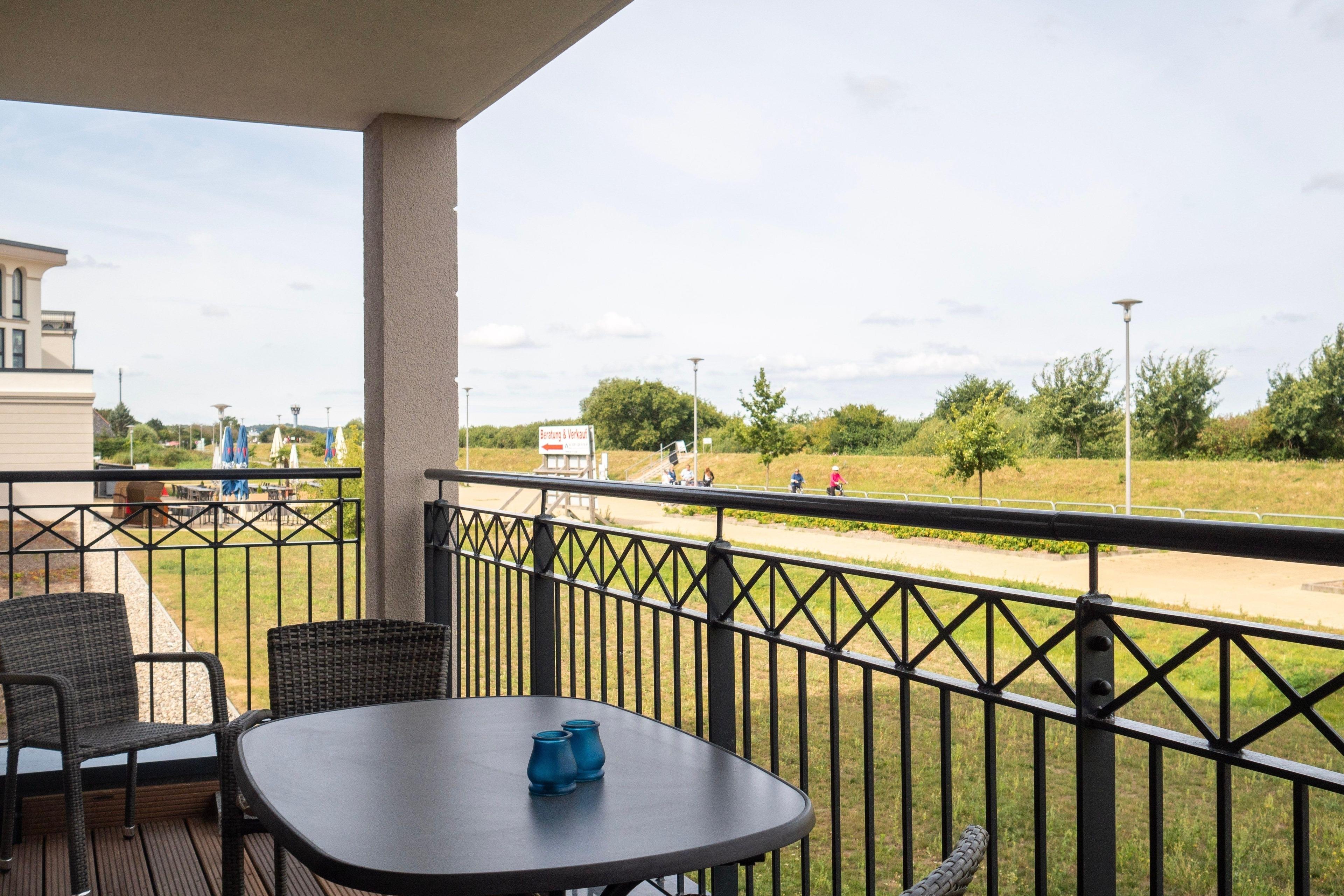 Der überdachte Balkon ist sowohl vom Wohnzimmer als auch vom Schlafzimmer aus begehbar. Natürlich stehen Ihnen hier auch Terrassenmöbel zur Verfügung, sodass Sie beispielsweise Ihr Frühstück oder Ihr Abendessen ganz privat im Sonnenschein zu sich nehmen können. Die Waterkant Suites liegen an der schönen Promenade in Börgerende und somit direkt am Meer.