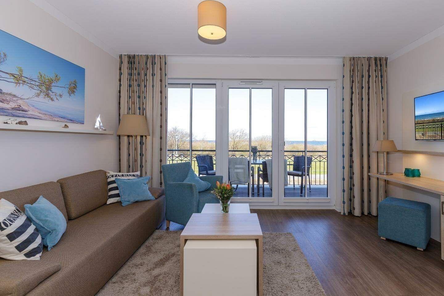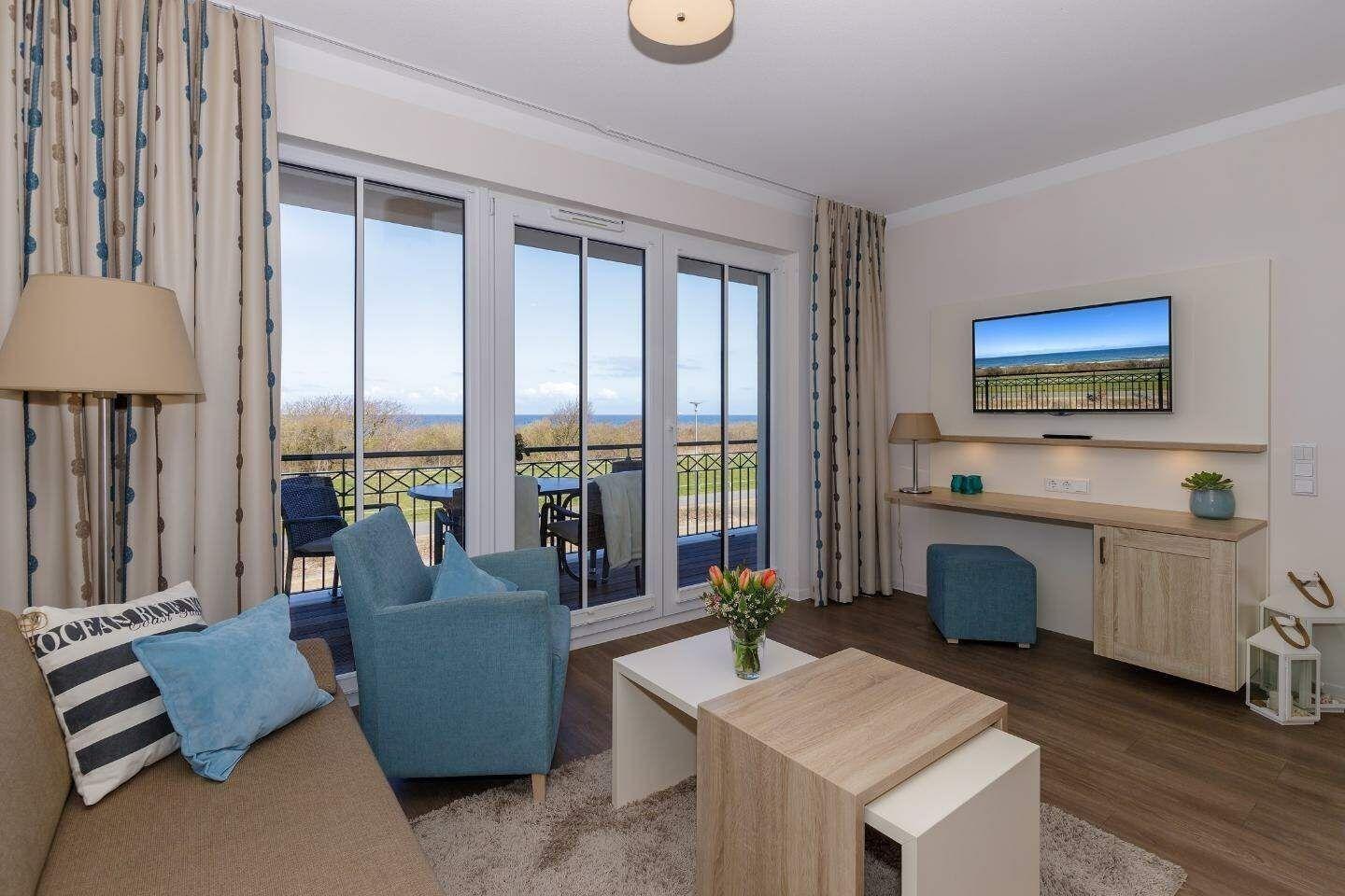 Die 49 m² große 2-Zimmer Suite ist für max. 4 Personen geeignet und befindet sich in nördlicher Lage mit Blick auf Ostsee.