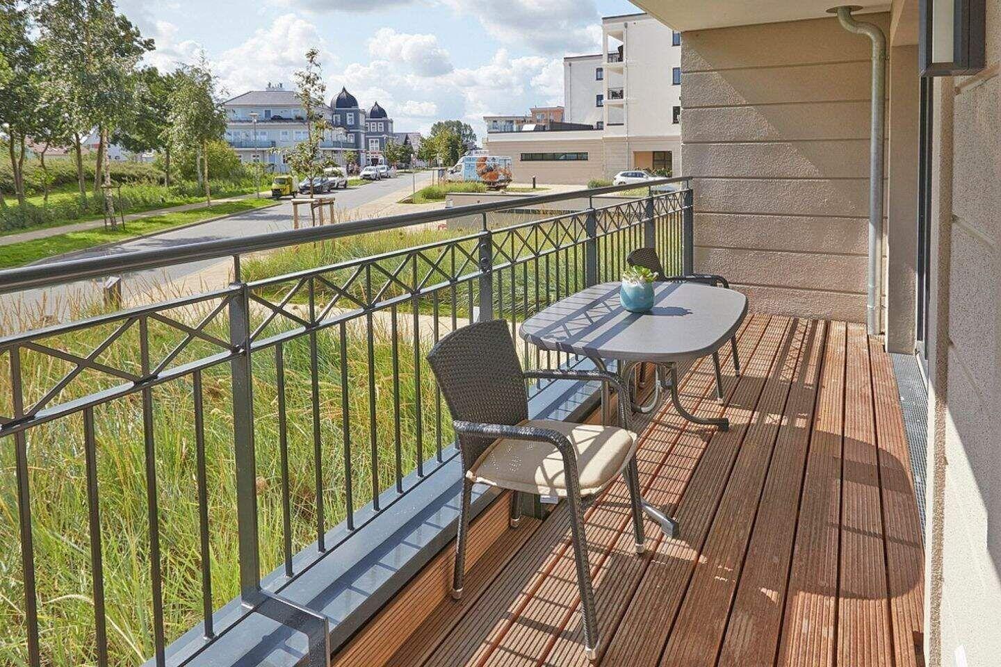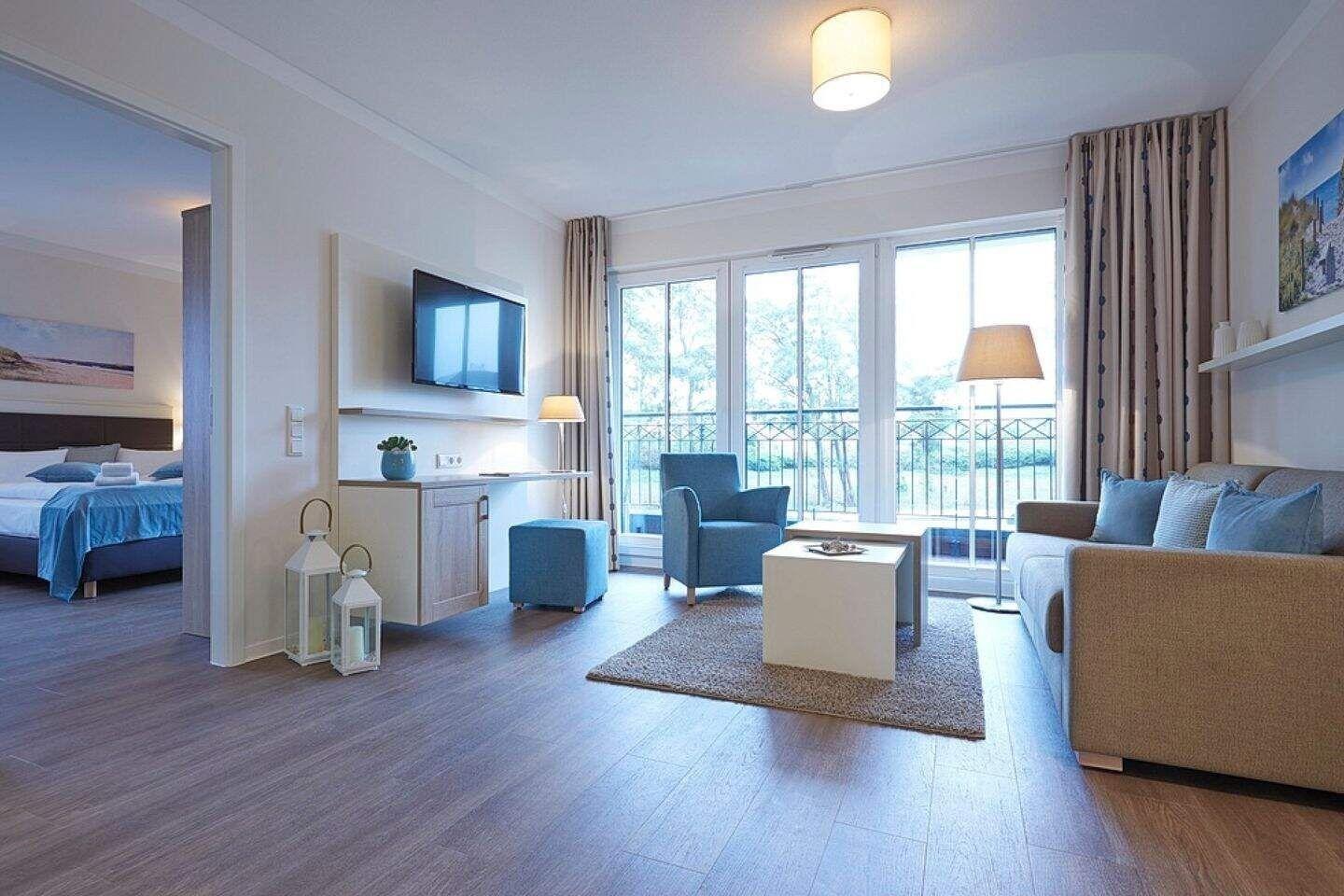 Die 50 m² große 2-Zimmer Suite ist für max. 4 Personen geeignet und befindet sich in östlicher Lage mit Blick auf Börgerende.