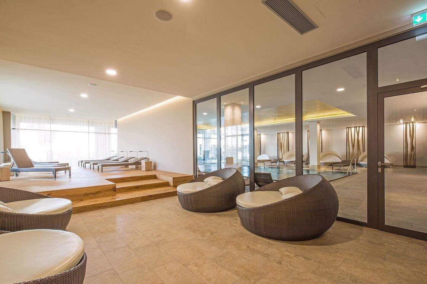 Im 600 m² großen Wellnessbereich können Sie die Seele baumeln lassen. Hier bleiben keine Wünsche offen. Der großzügige Pool verfügt über Whirlpools und Wasserfall, auf den Relaxliegen und Relaxinseln können Sie sich entspannen und einfach mal wieder in Ruhe ein Buch lesen. Sollte es Ihnen direkt am Pool dafür zu actionlastig sein, können Sie dies natürlich auch im separaten gemütlichen Pool-Ruheraum tun. Erlebnisduschen mit Farbtherapie sorgen für maximale Erholung und auch unsere Saunalandschaft mit Dampfbad, Biosauna und Finnischer Sauna sorgt für Entspannung und innerliche Ruhe. Hier können Sie ein richtiges Urlaubsfeeling entwicklen und sich im separaten Sauna-Ruheraum erholen.