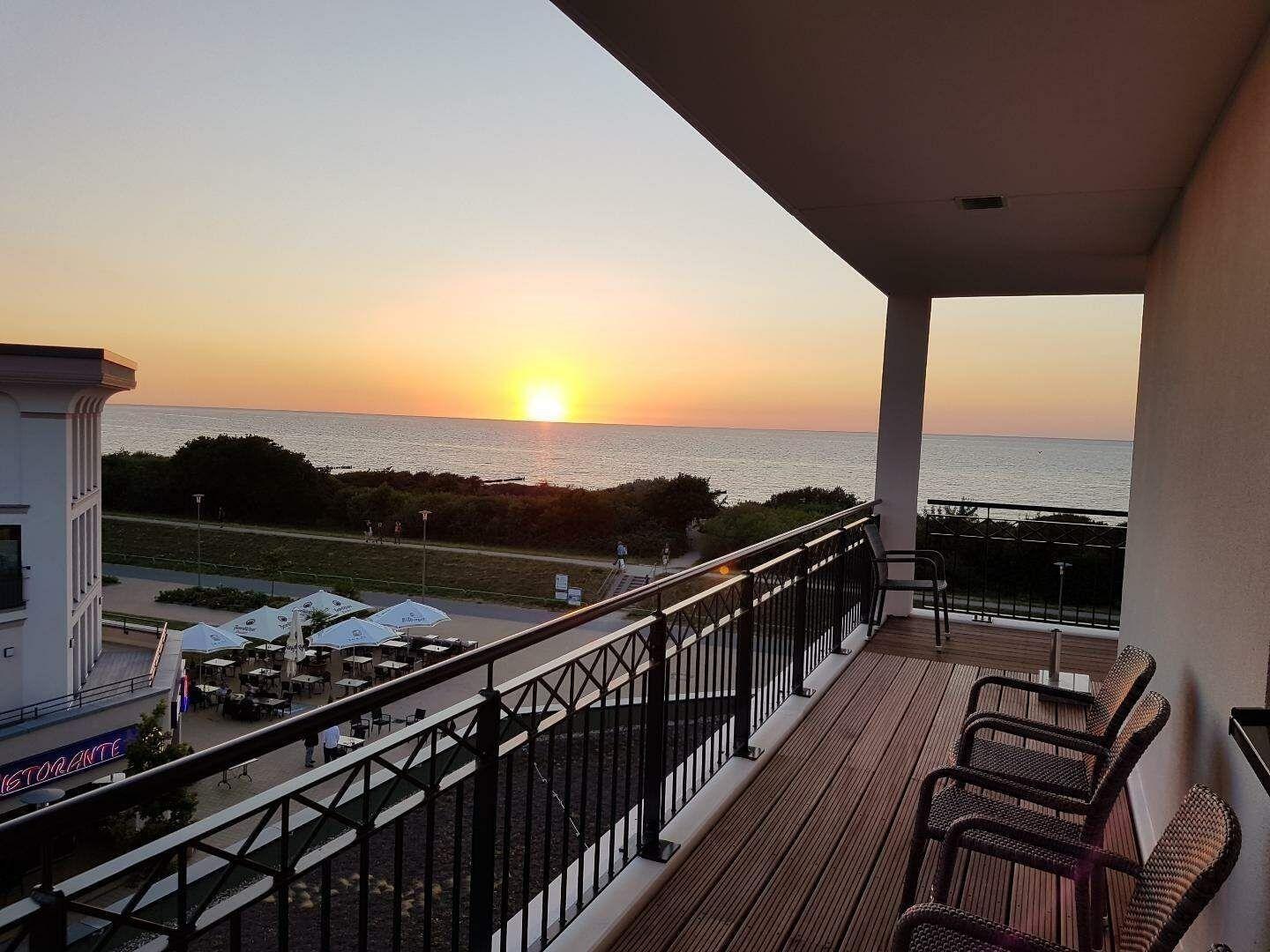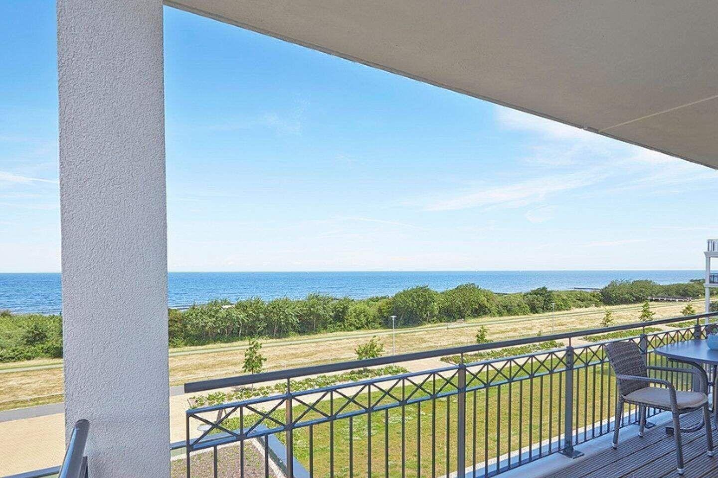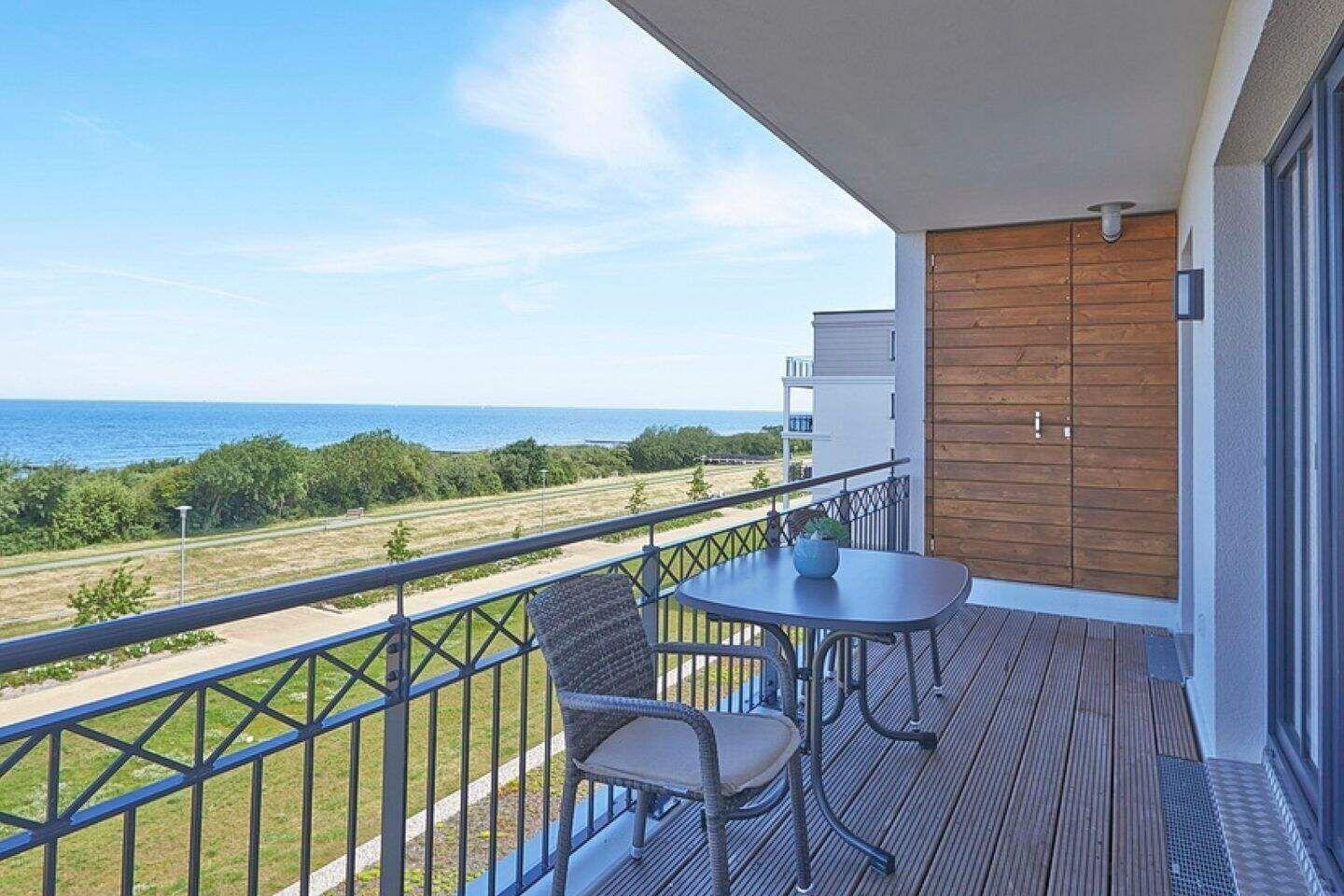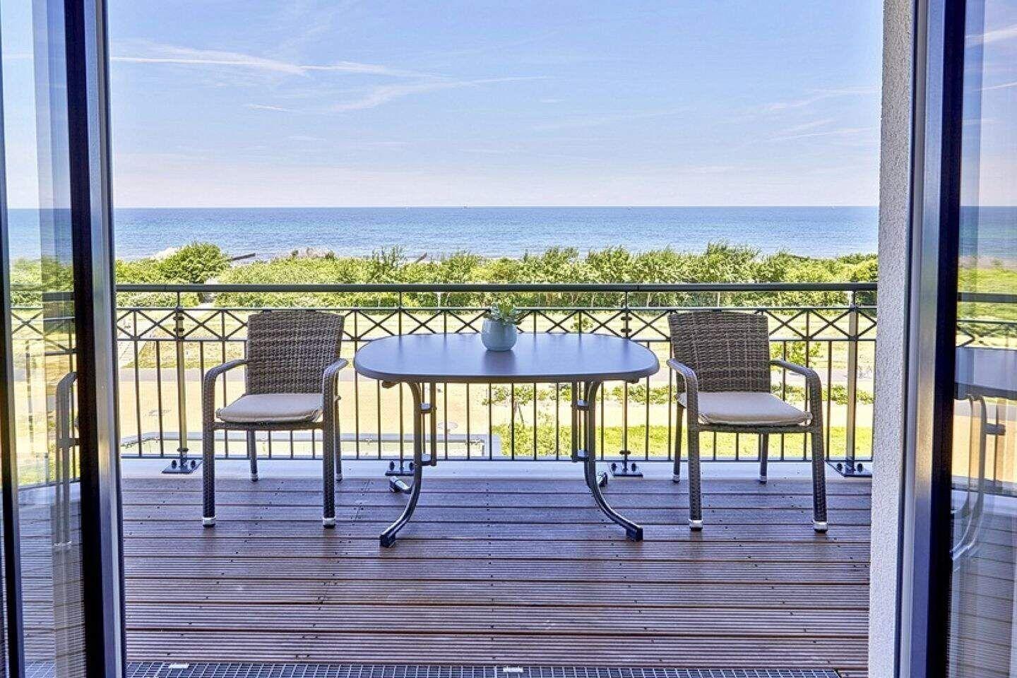 Auf dem überdachten Eckbalkon, der zur Meerseite gelegen ist, stehen Ihnen Terrassenmöbel zur Verfügung. Hier können Sie mit Blick auf die Ostsee entspannen.