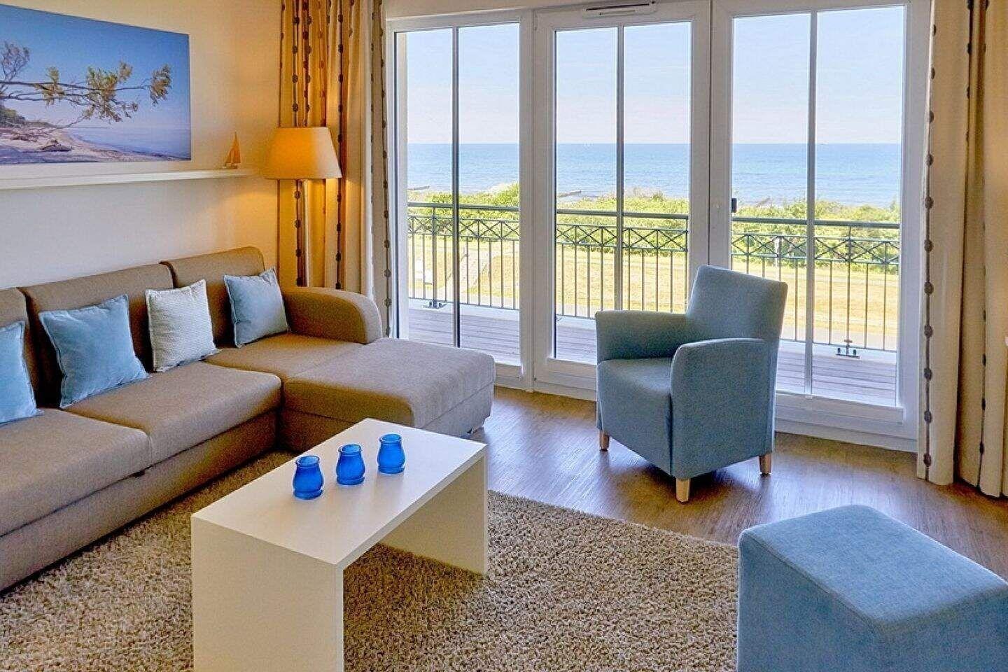 Die 77 m² große 3-Zimmer Suite ist für max. 6 Personen geeignet und befindet sich in nördlicher Lage mit Blick auf die Ostsee.