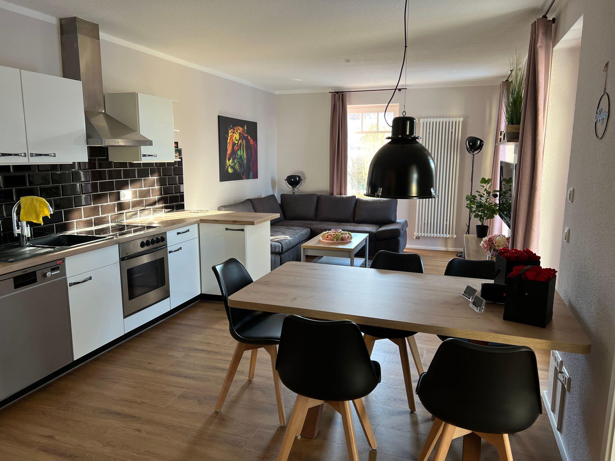 The holiday flat is located directly on the Baltic Sea cycle path along the Baltic Sea coast to the seaside resorts of Kühlungsborn, Heiligendamm or Warnemünde. The steep coast of the Baltic Sea is 200 metres away as the crow flies, with a staircase leading down to it. The sandy beach of the Baltic seaside resort of Nienhagen can be reached in 5 minutes by bike. In 15 minutes by bike you can reach the popular fishing village Warnemünde incl. dream beach. The holiday flat is equipped with a spacious kitchen. An extra bed for up to 5 persons is available on request. For older guests, the car park directly next to the holiday flat and the barrier-free access are also ideal.