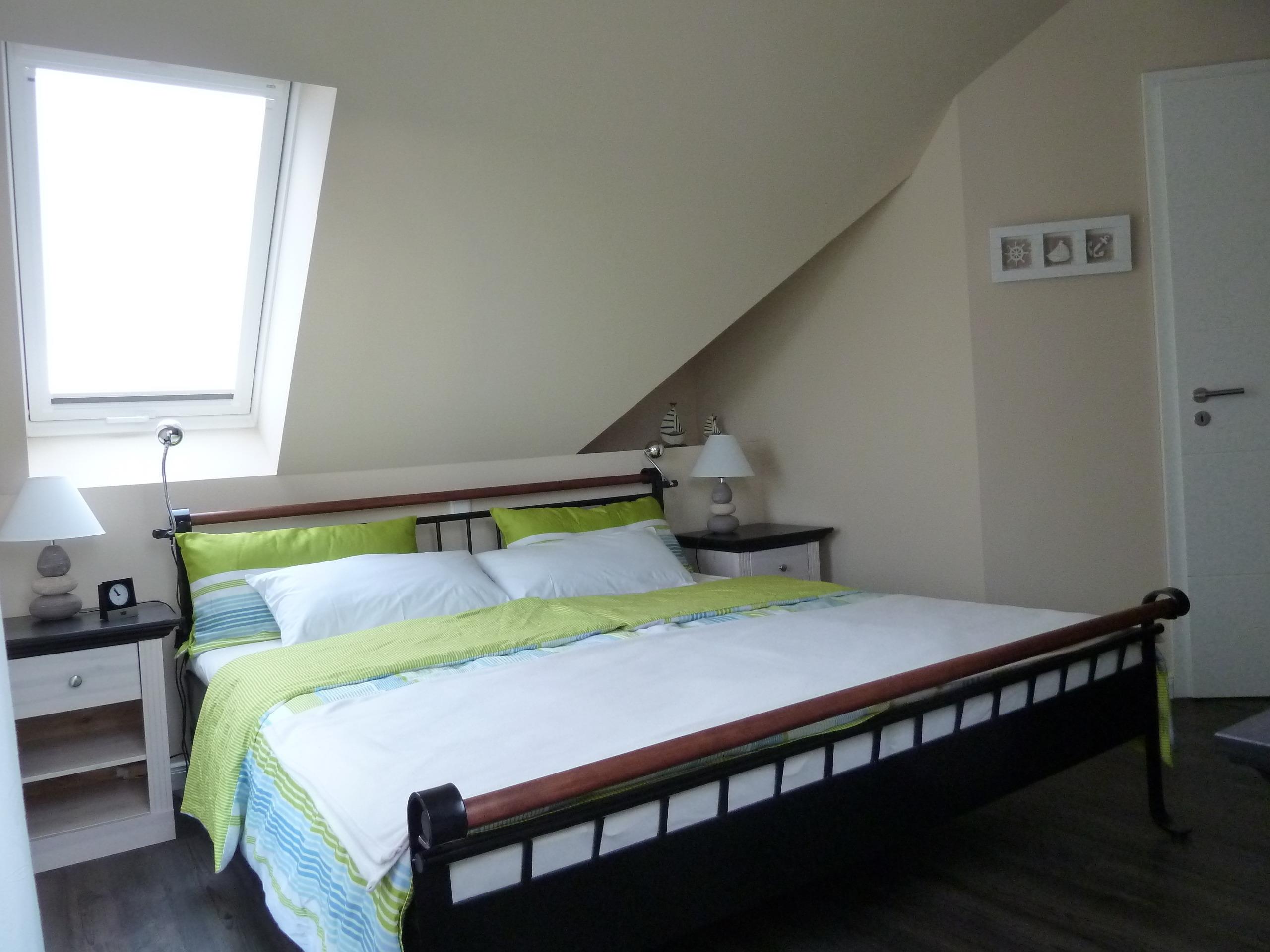 In der 80 m² großen Wohnung können Sie sich mit ihrer Familie oder Freunden einen erholsamen Urlaub gönnen. Die zwei Schlafzimmer bieten Platz für 4 Erwachsene und ein Kleinkind. Das große Schlafzimmer ist mit einem 180x200cm großem Doppelbett sowie einem 32" Flachbild-TV ausgestattet und ist gemütlich eingerichtet. Hier tauchen Sie ein in die kuschelige Wohlfühlwelt.